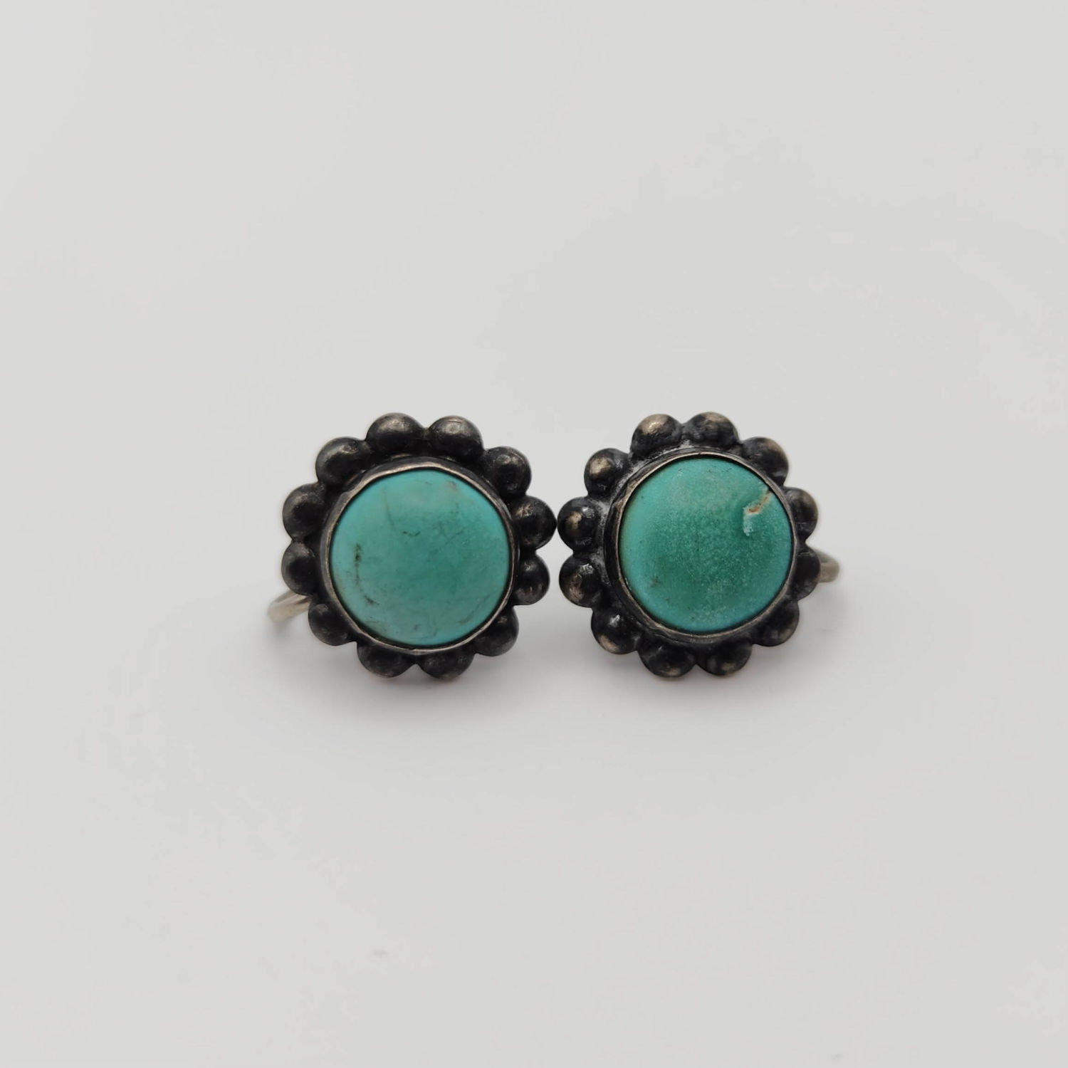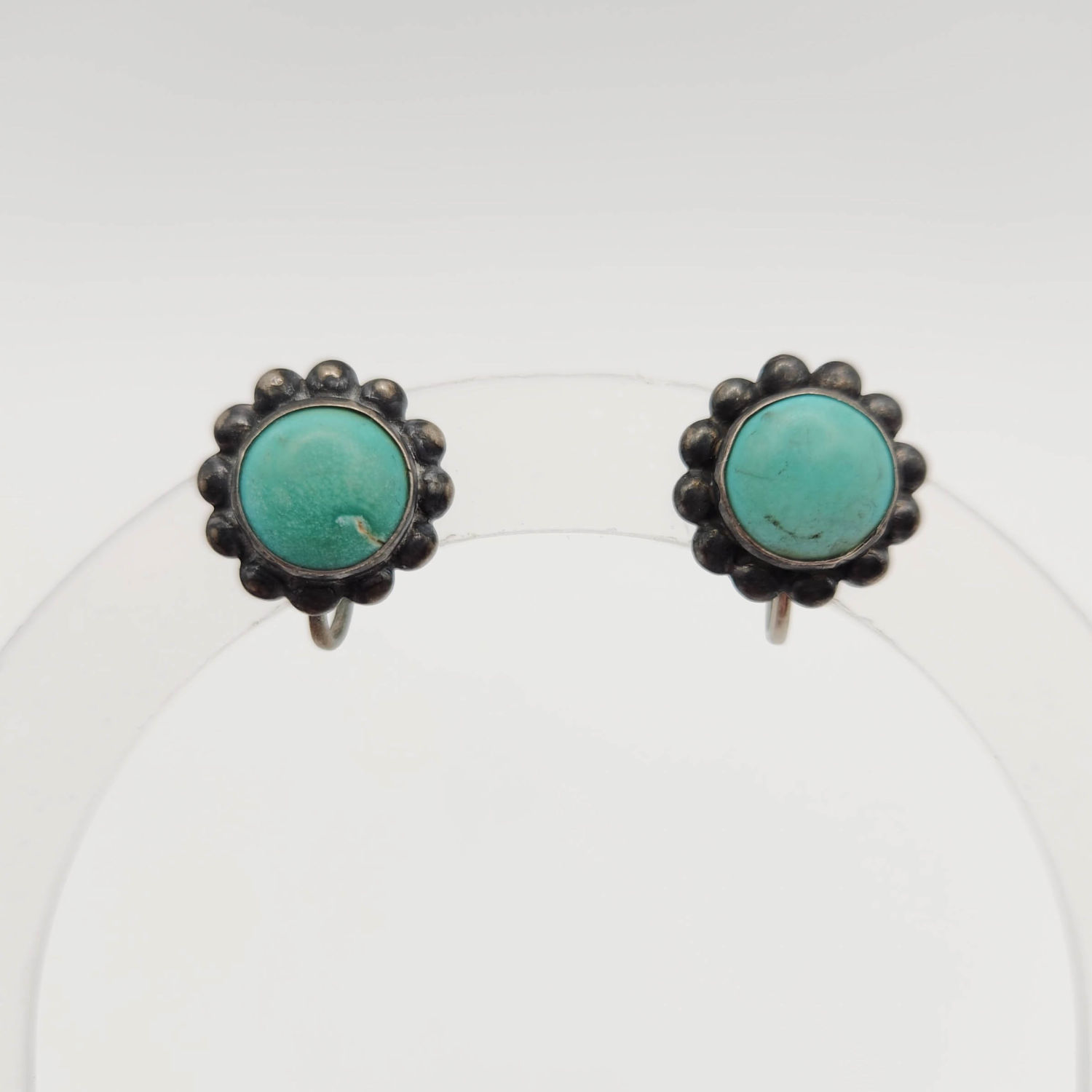 Sterling Turquoise cabachon screw back earrings, 4.6g