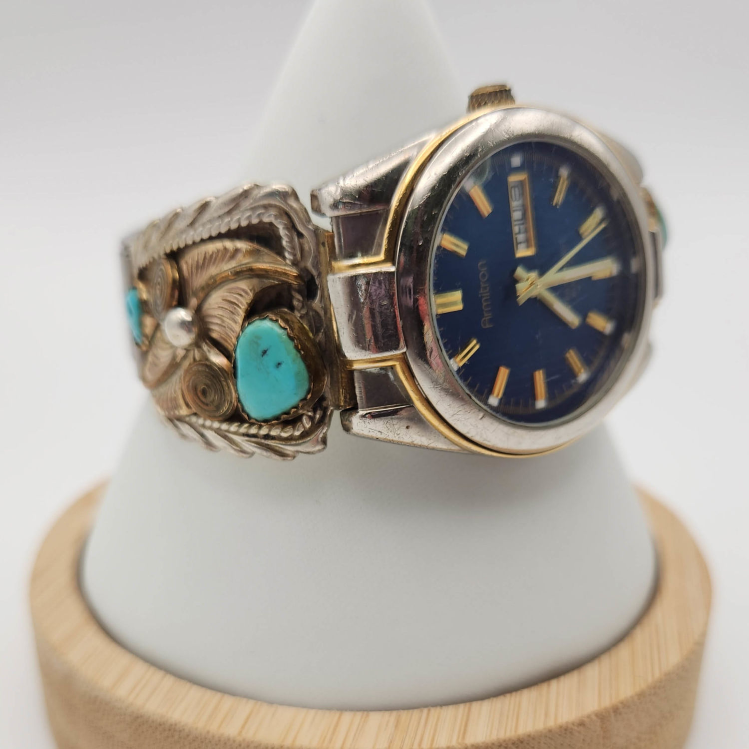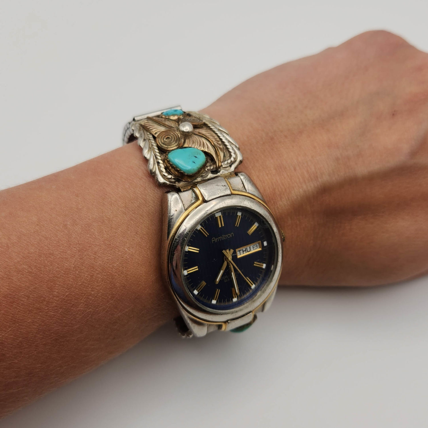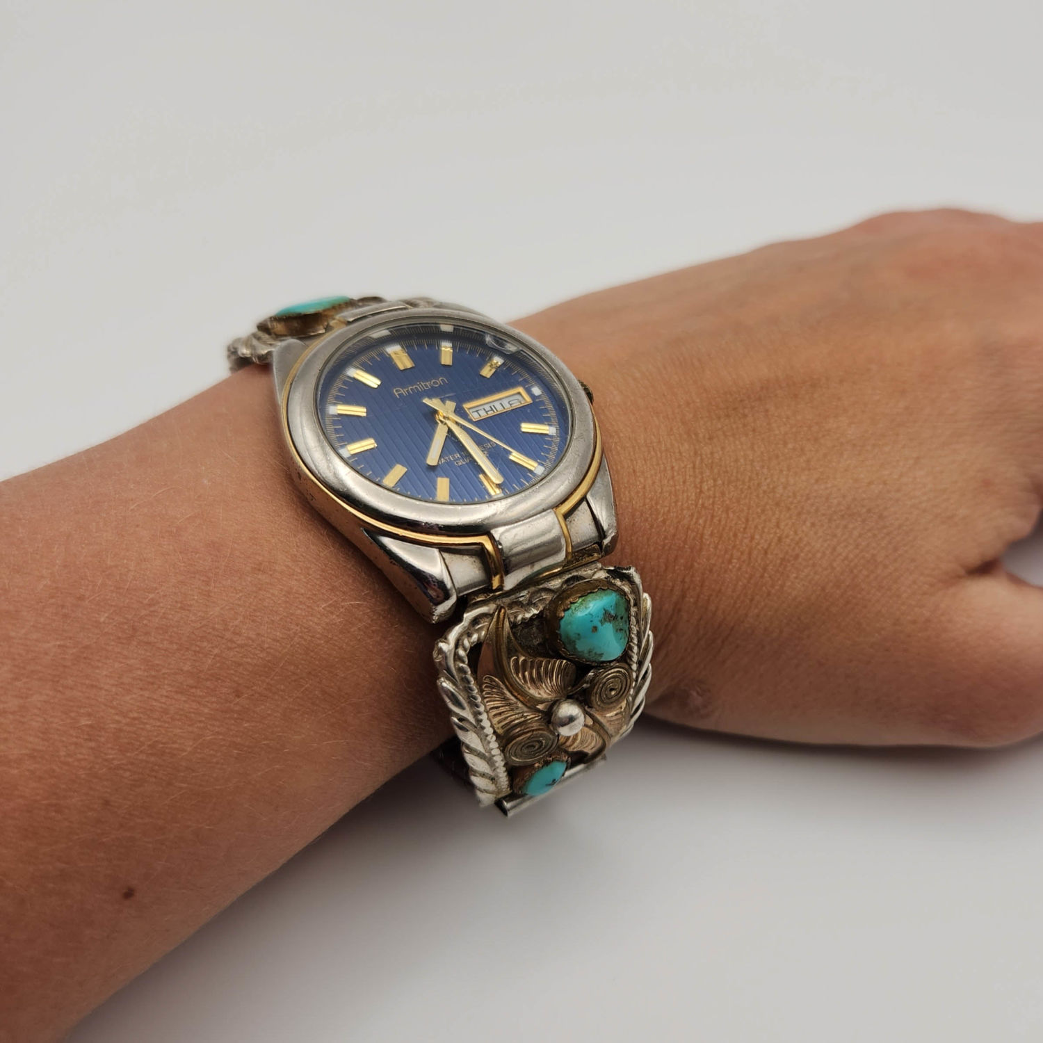 Sterling Turquoise and leaf watch, 73g. Signed Sterling A.