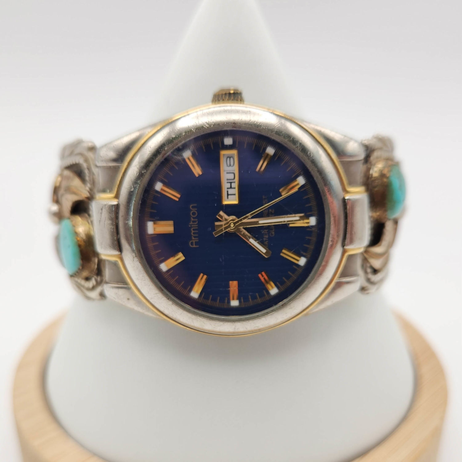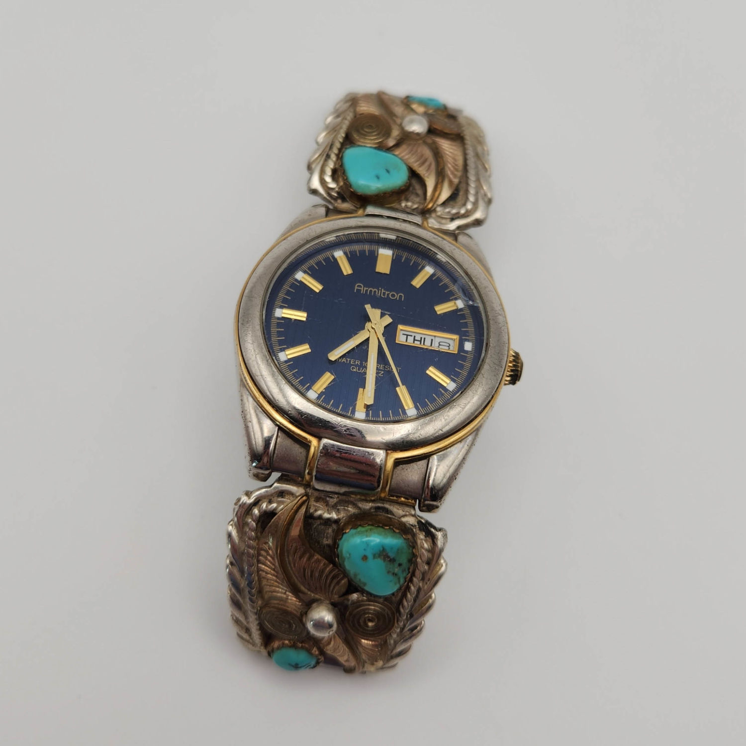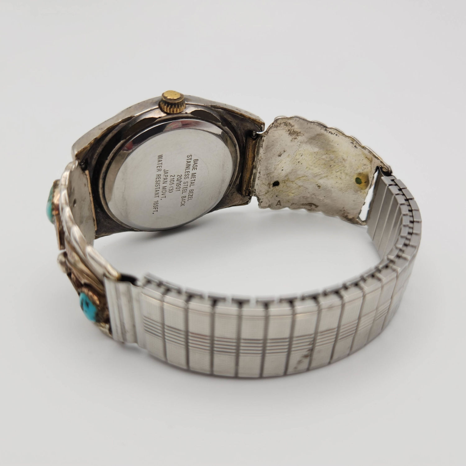 Sterling Turquoise and leaf watch, 73g. Signed Sterling A.
