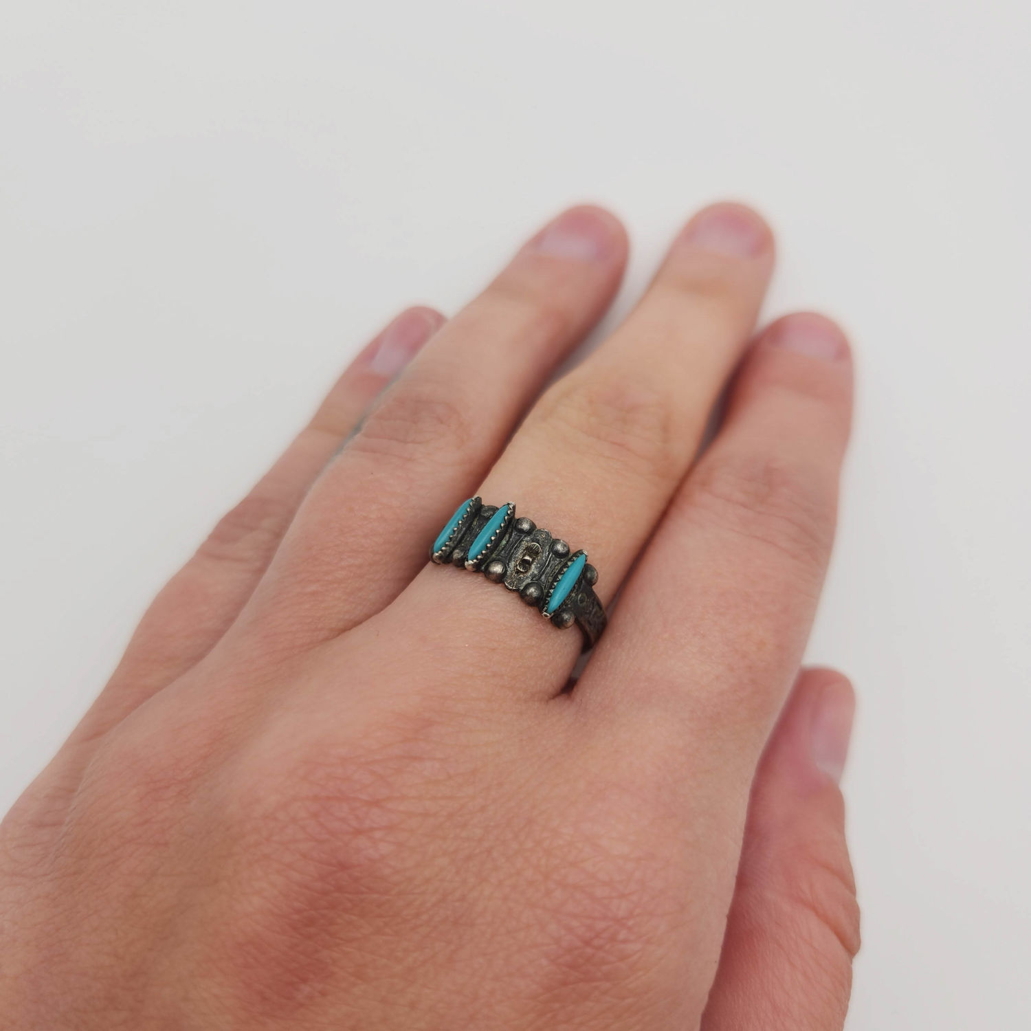Sterling Petit Poiny Turquoise Ring As-Is 2.5g Size 7