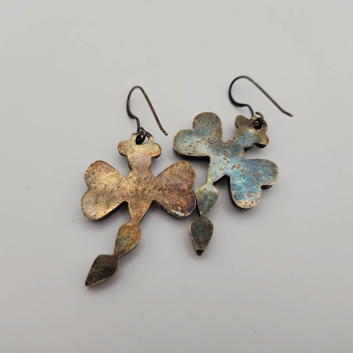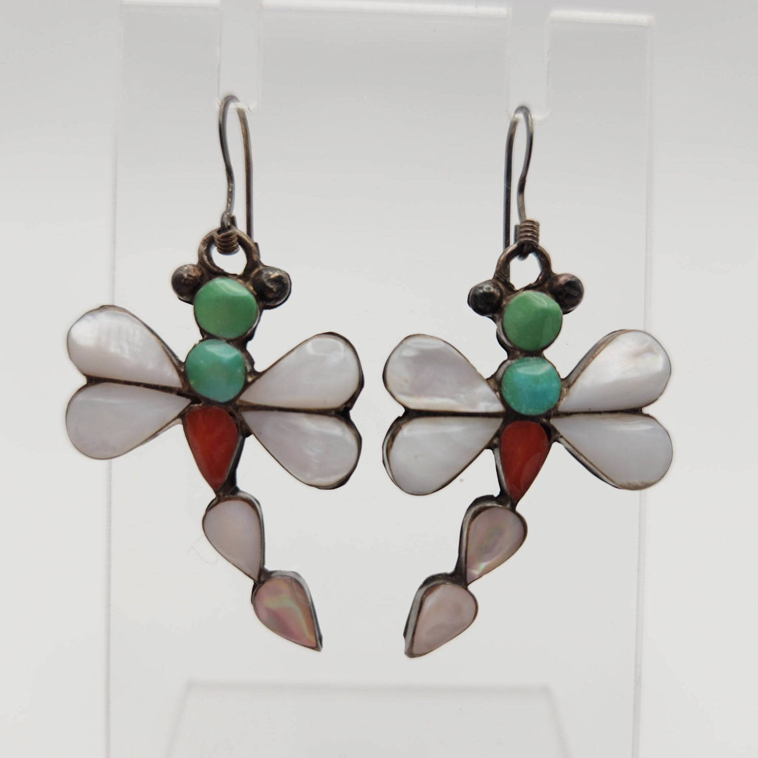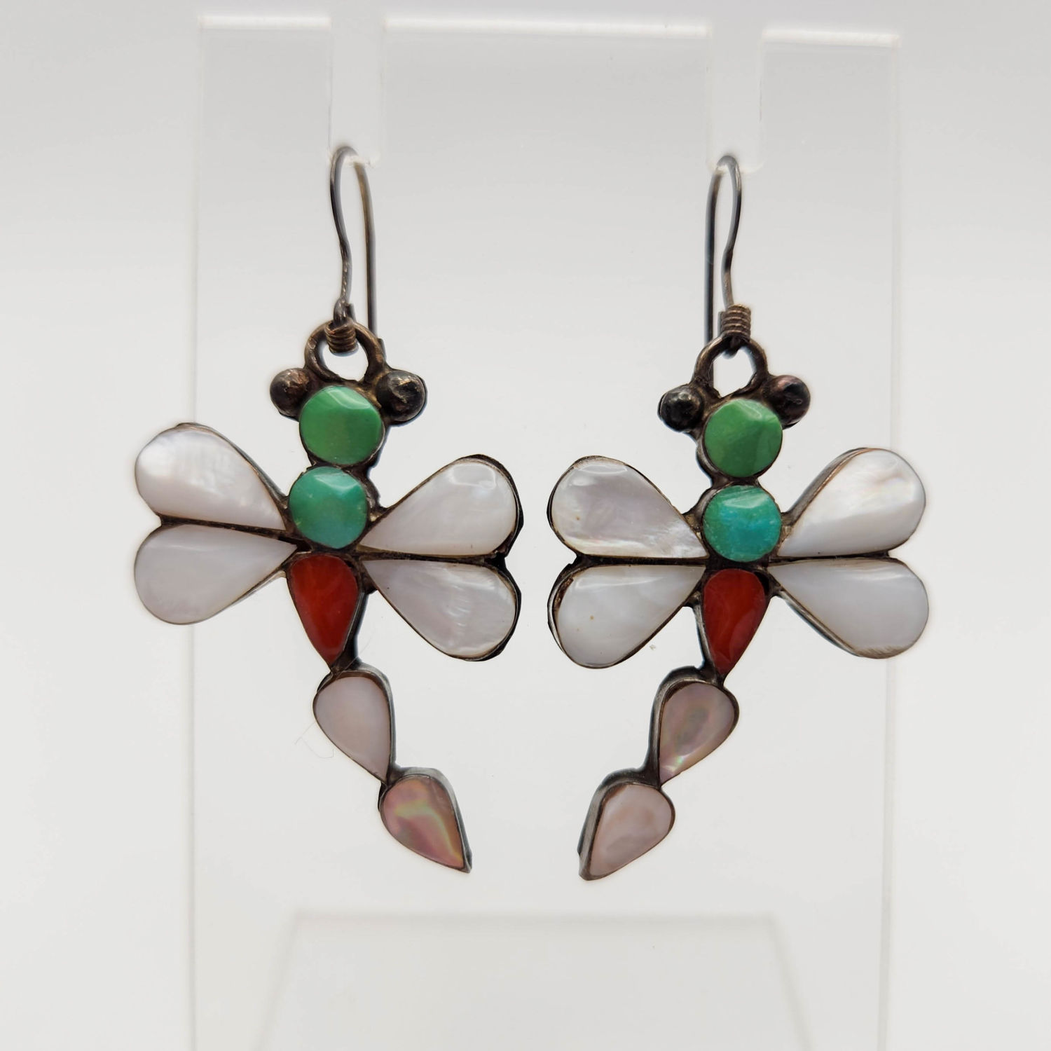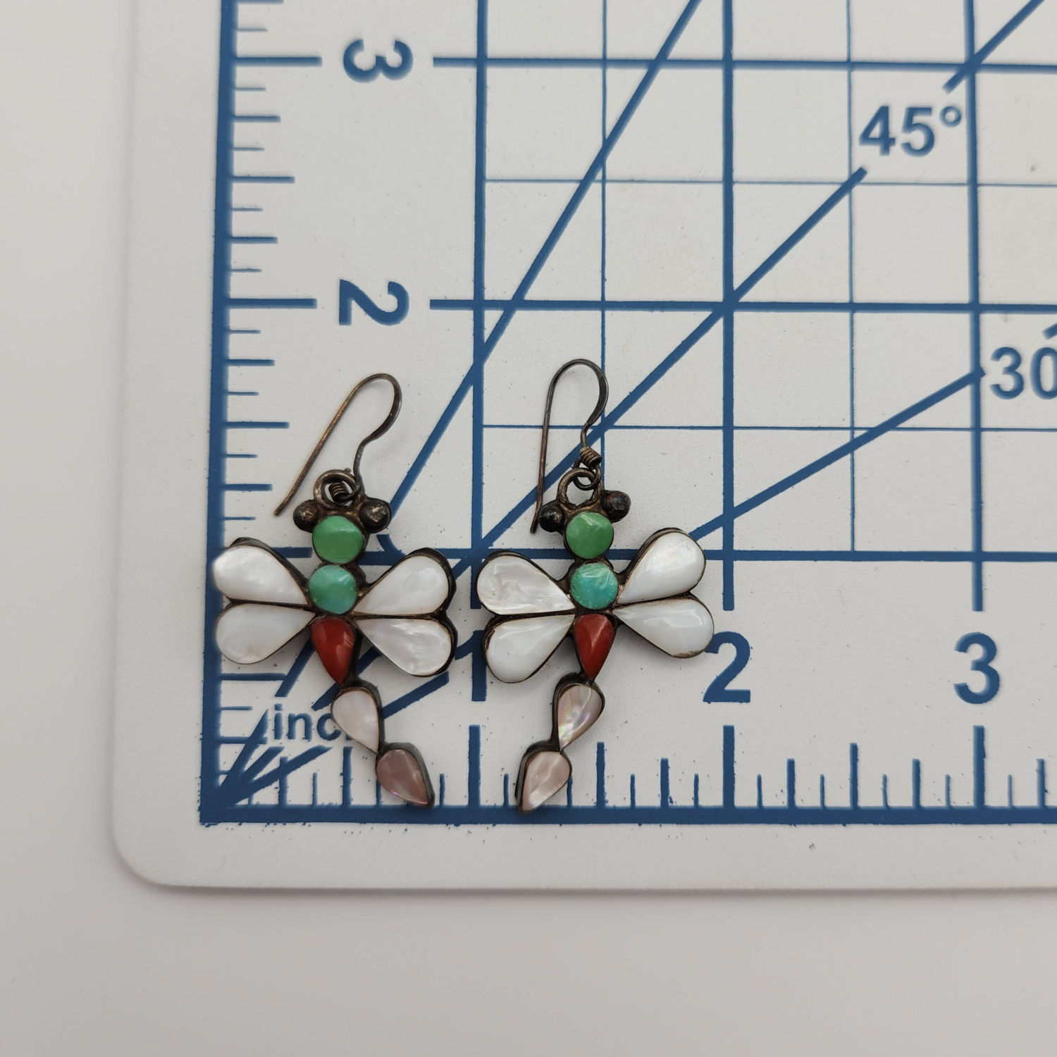 Sterling Zuni Dragonfly Earrings 6g, signed “BA”