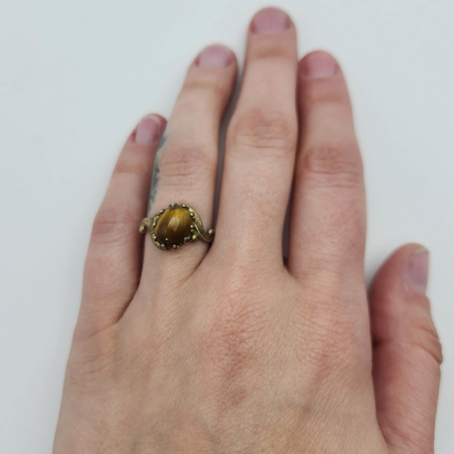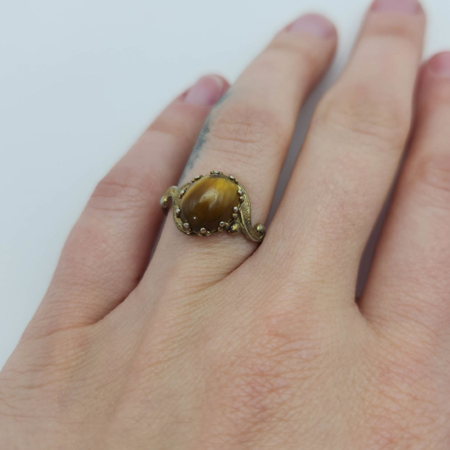 Sterling Navajo JP Ring tiger Eye 2.7G, Size 6.15