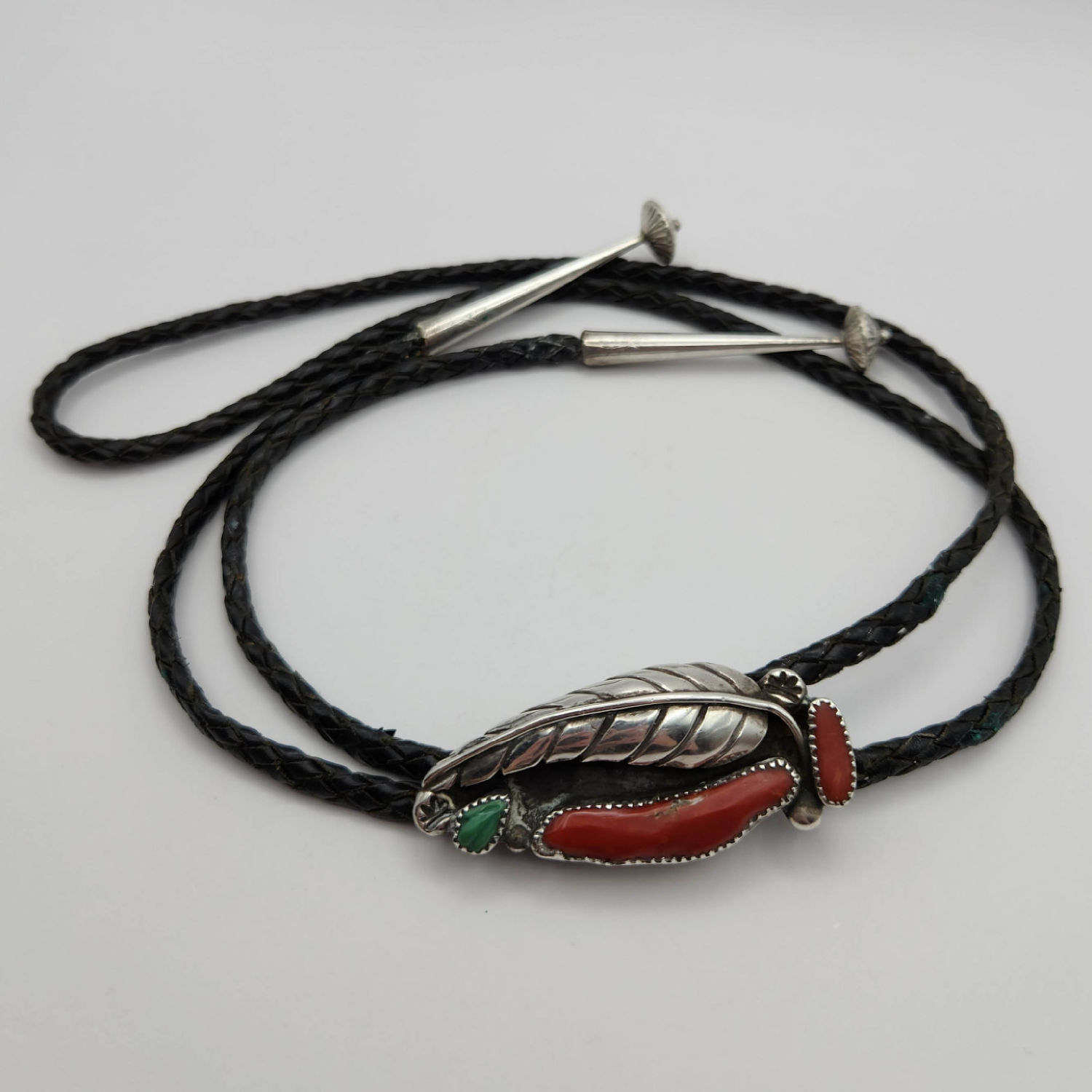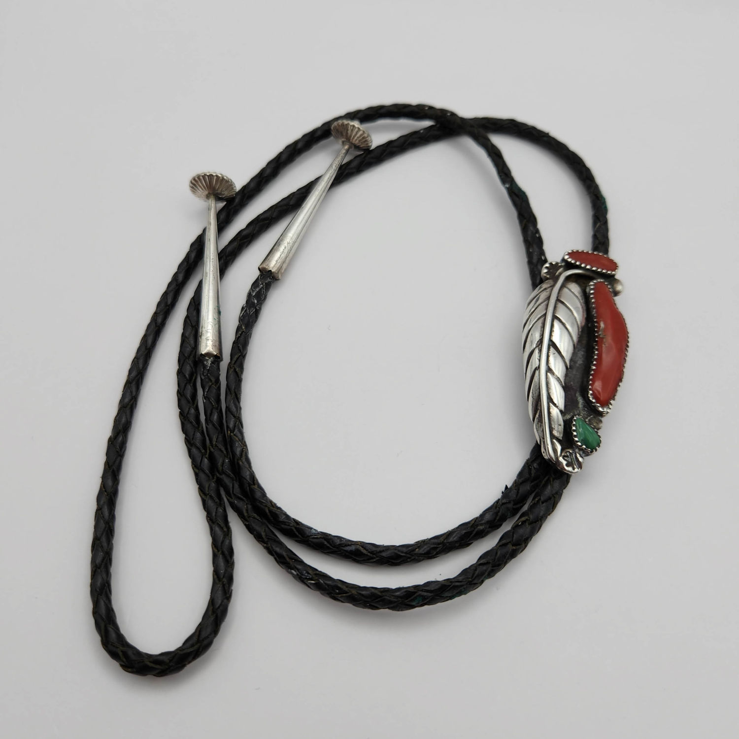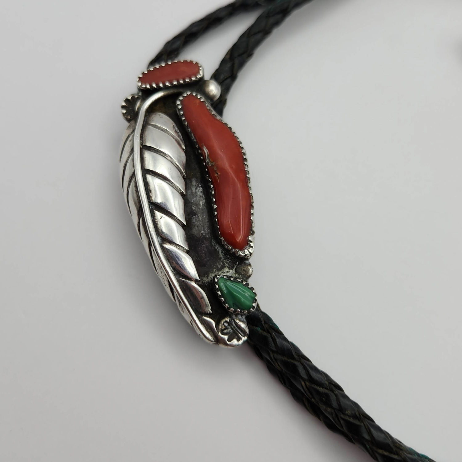 Sterling Turquoise Coral Bolo Navajo 30.5g TW