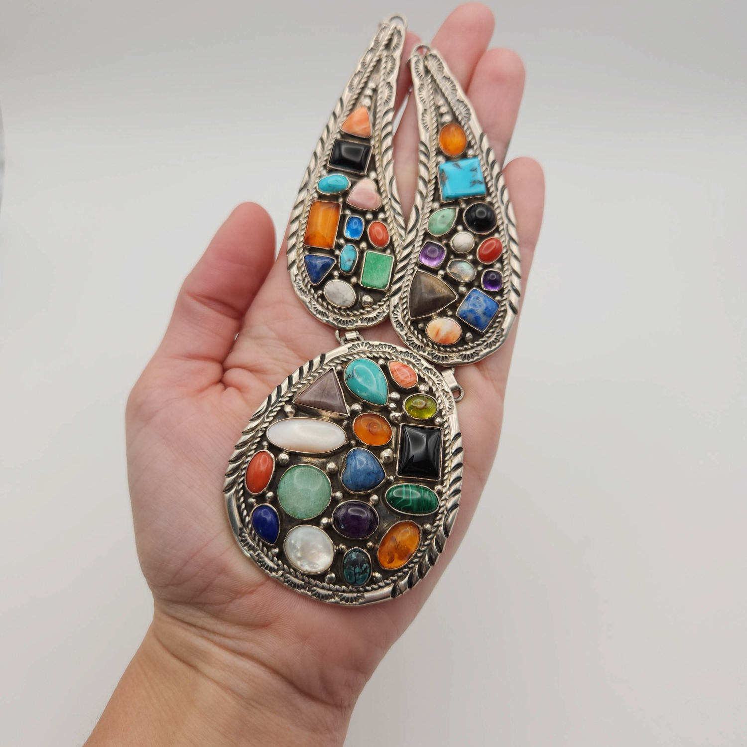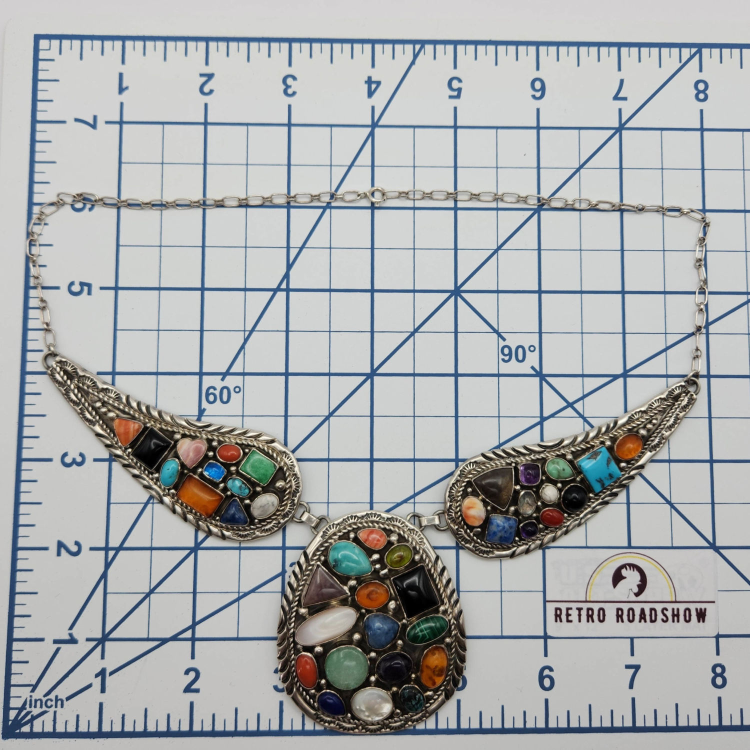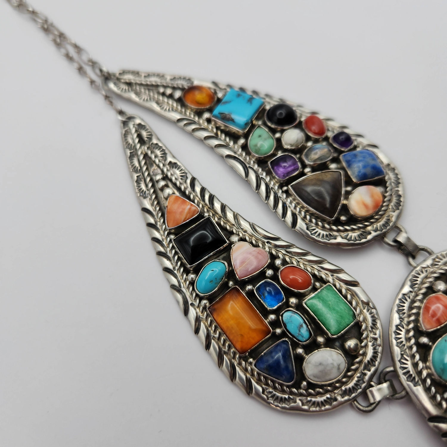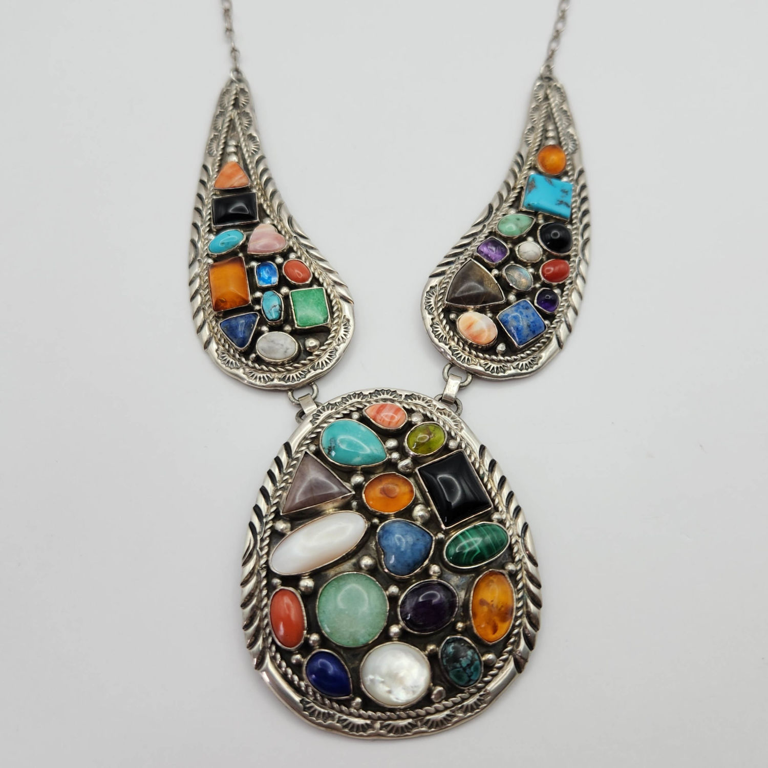 Beautiful Sterling Yazzie Medicine Stone Necklace 90g
