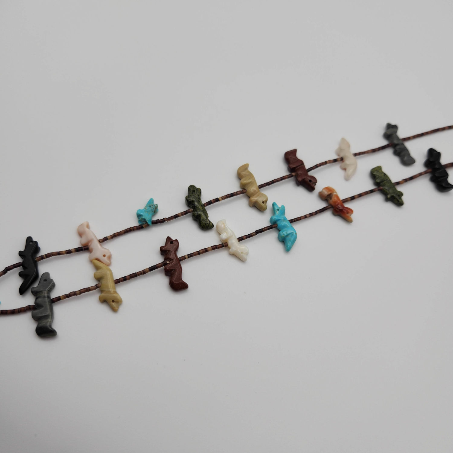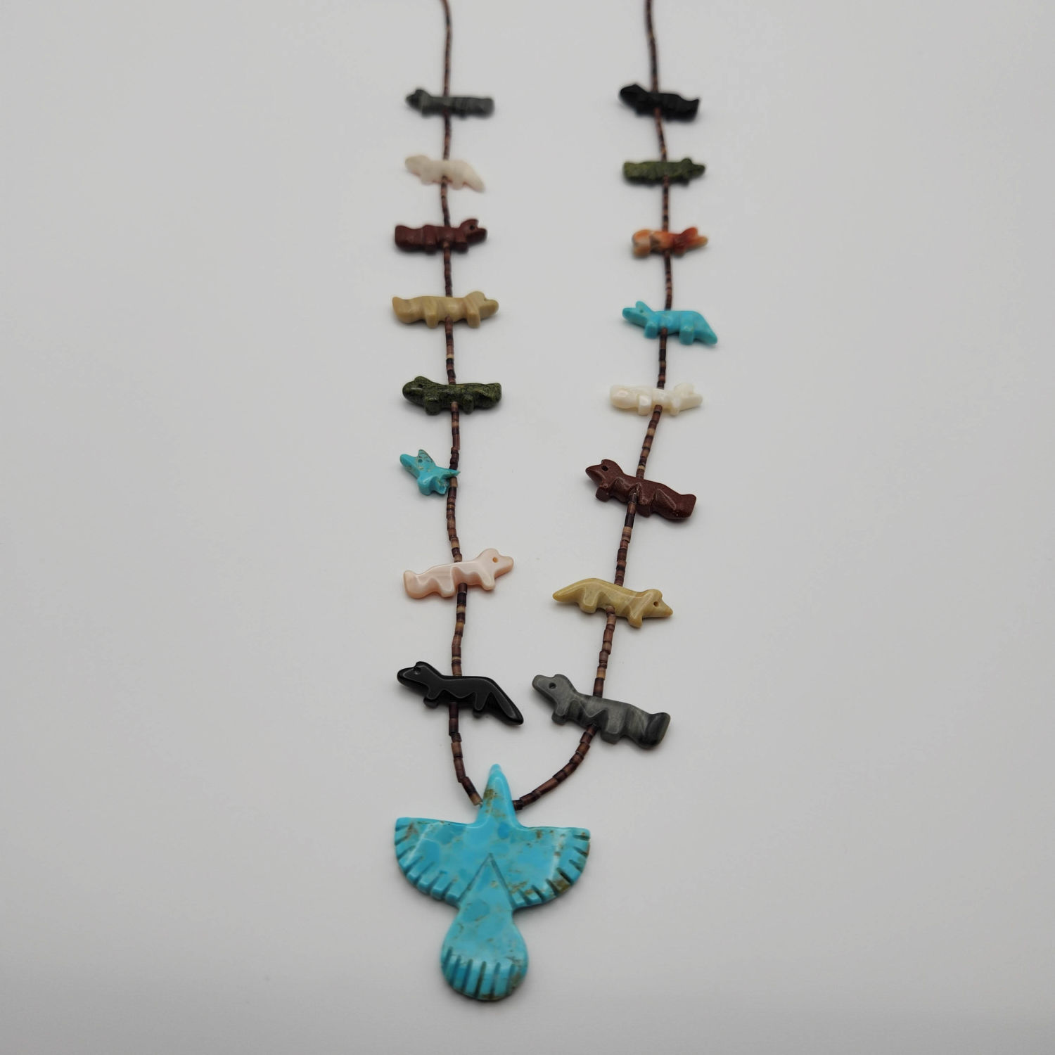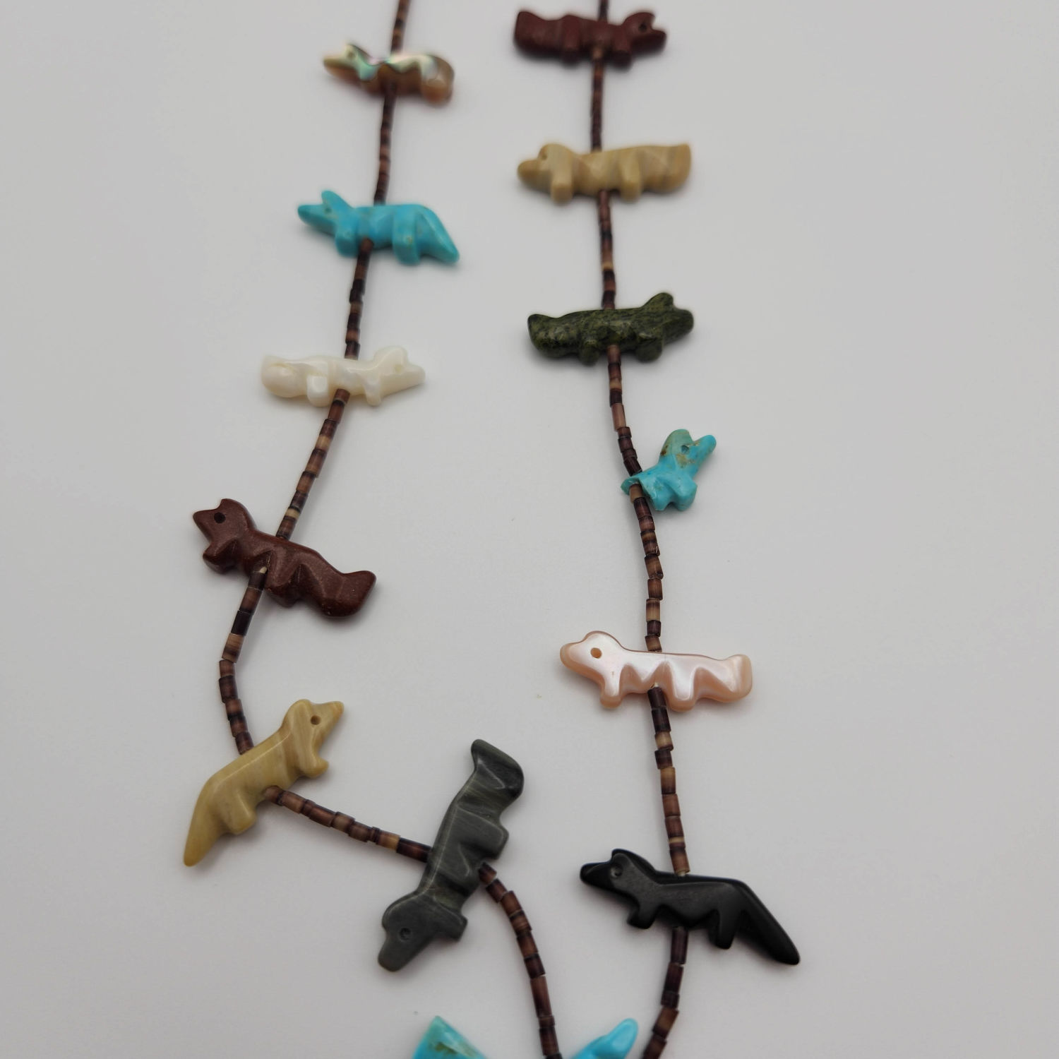 Zuni fetish carved bird heishi beaded necklace, 32g. As-is- one of the little animals has a broken wing.