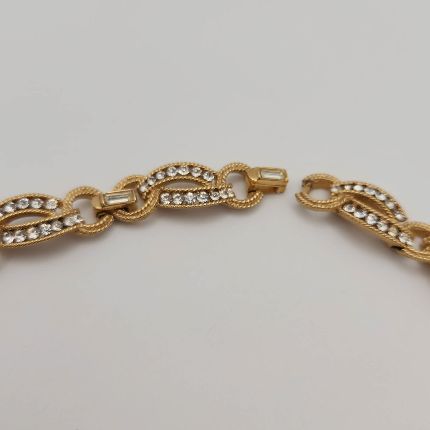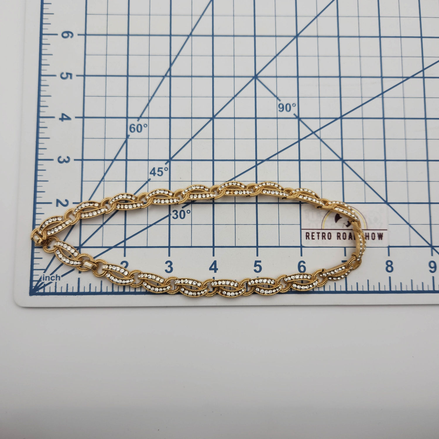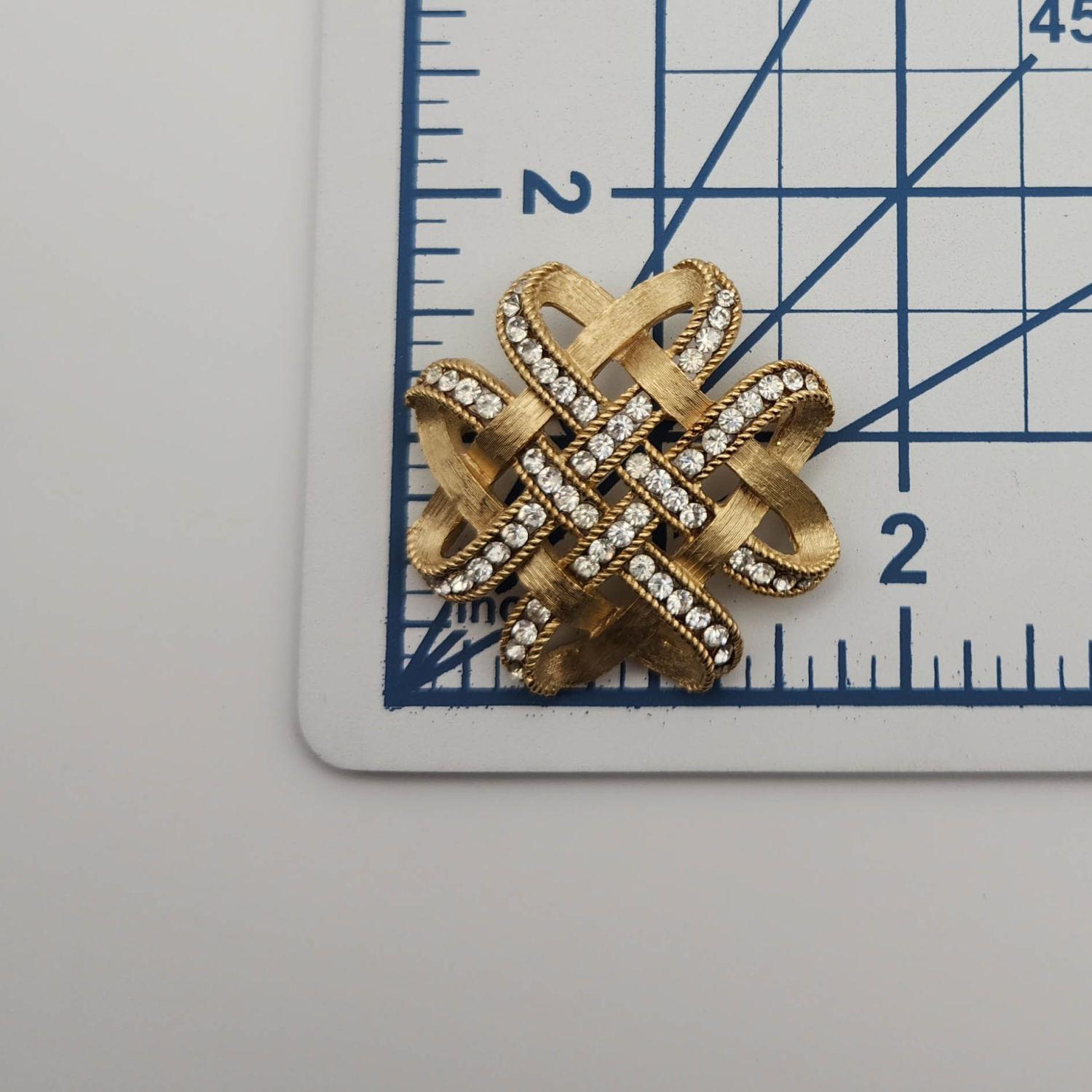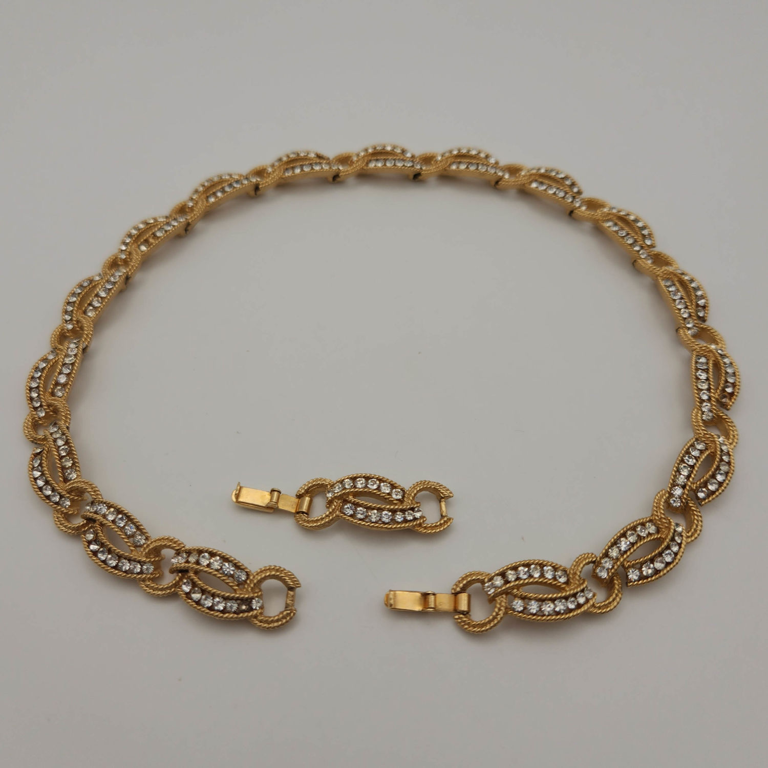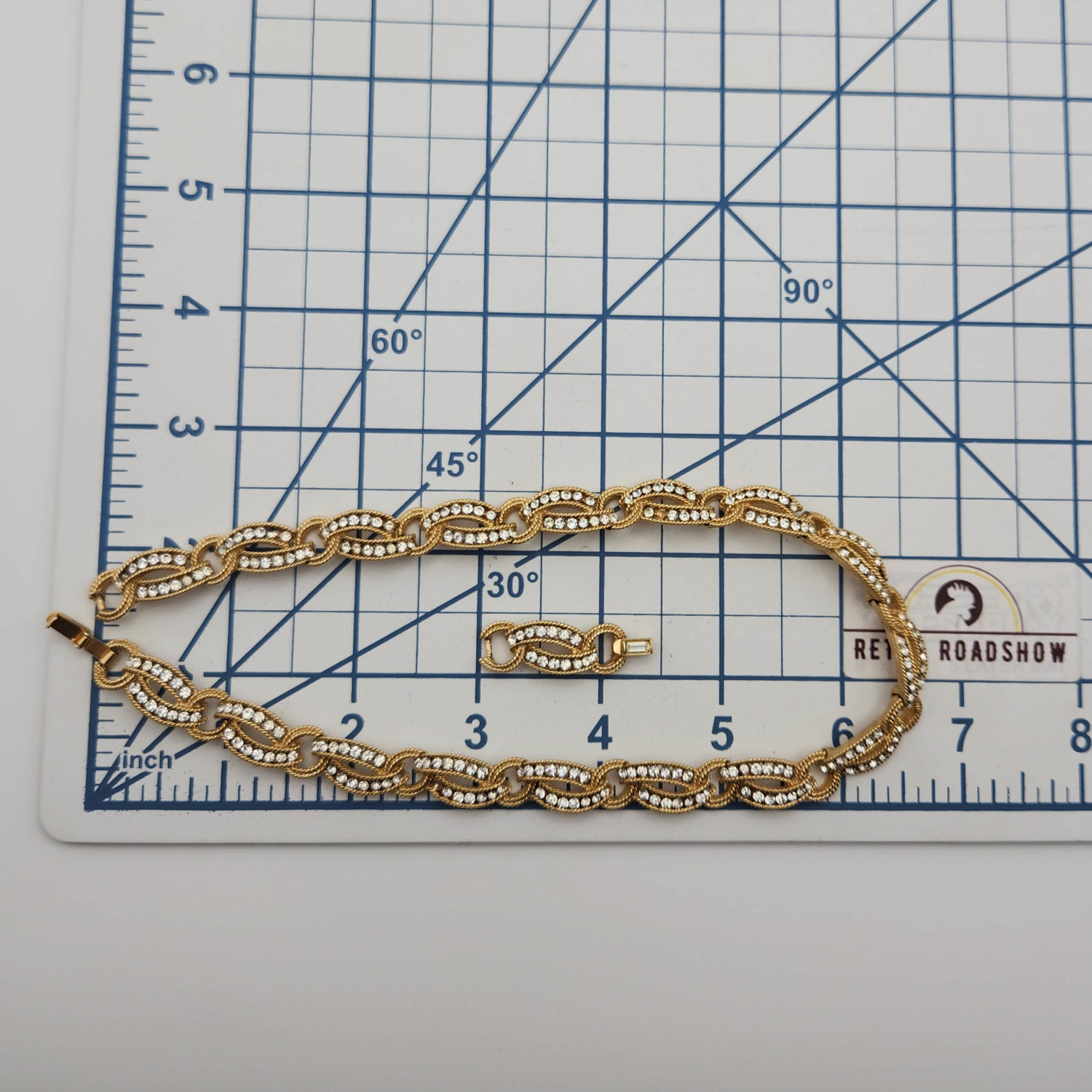Crown Trifari Brushed Gold Rhinestone set Necklace/Earrings Brooch