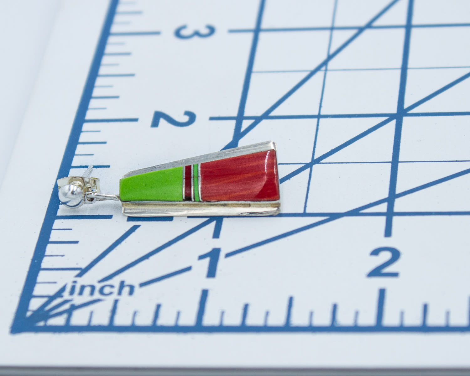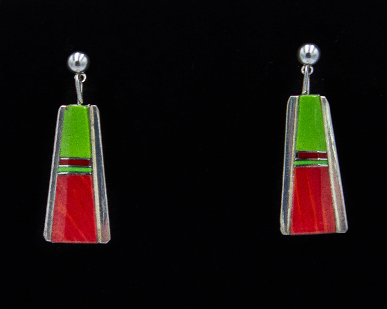 Sterling Navajo Brenda Pete Coral Green Turquoise Inlay Earrings 3.3g