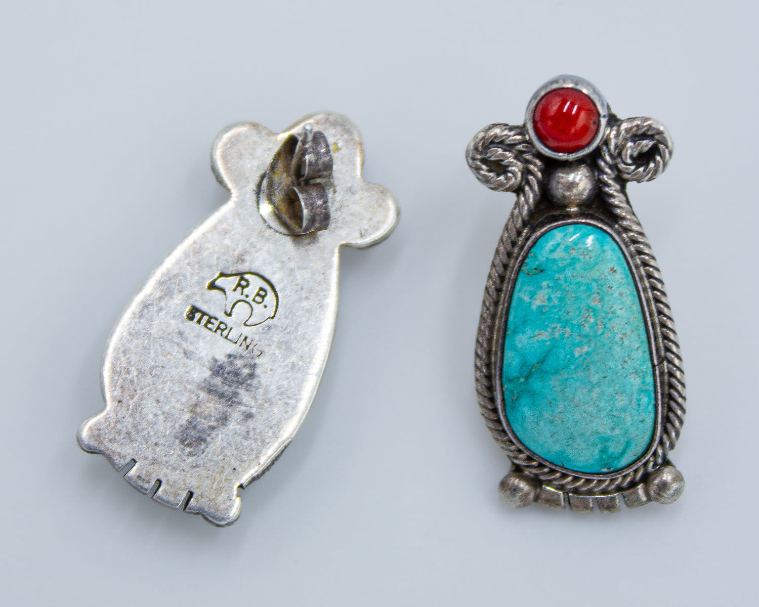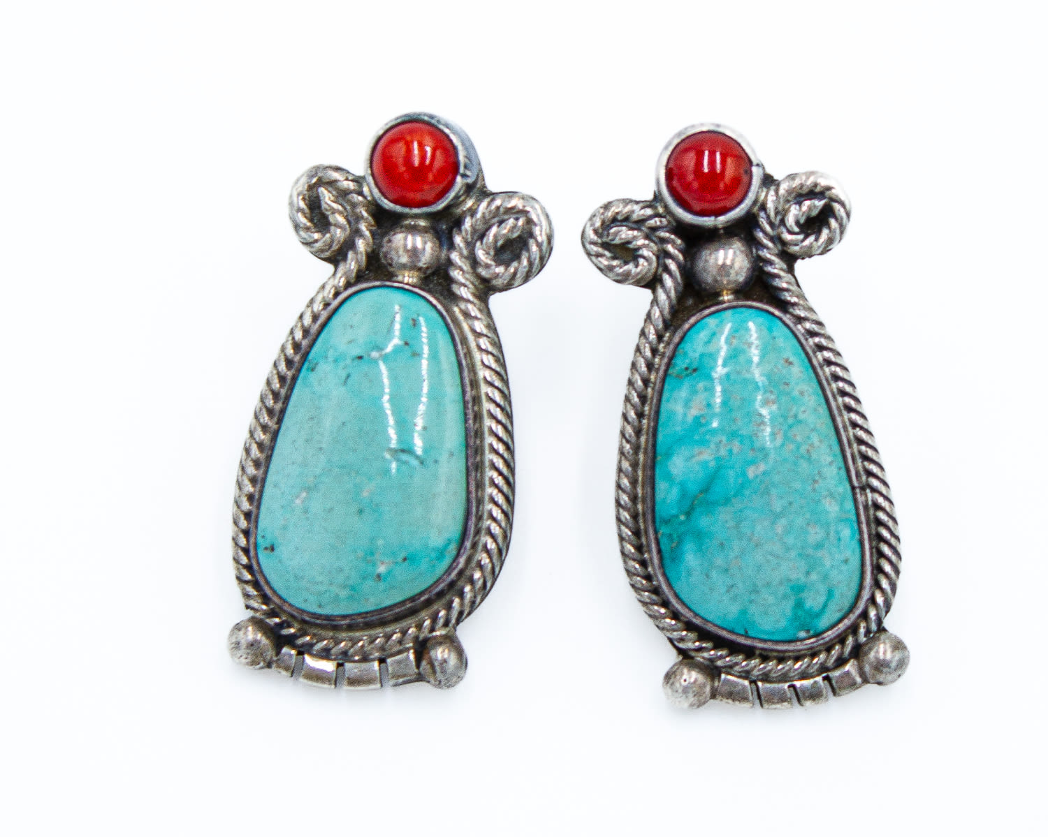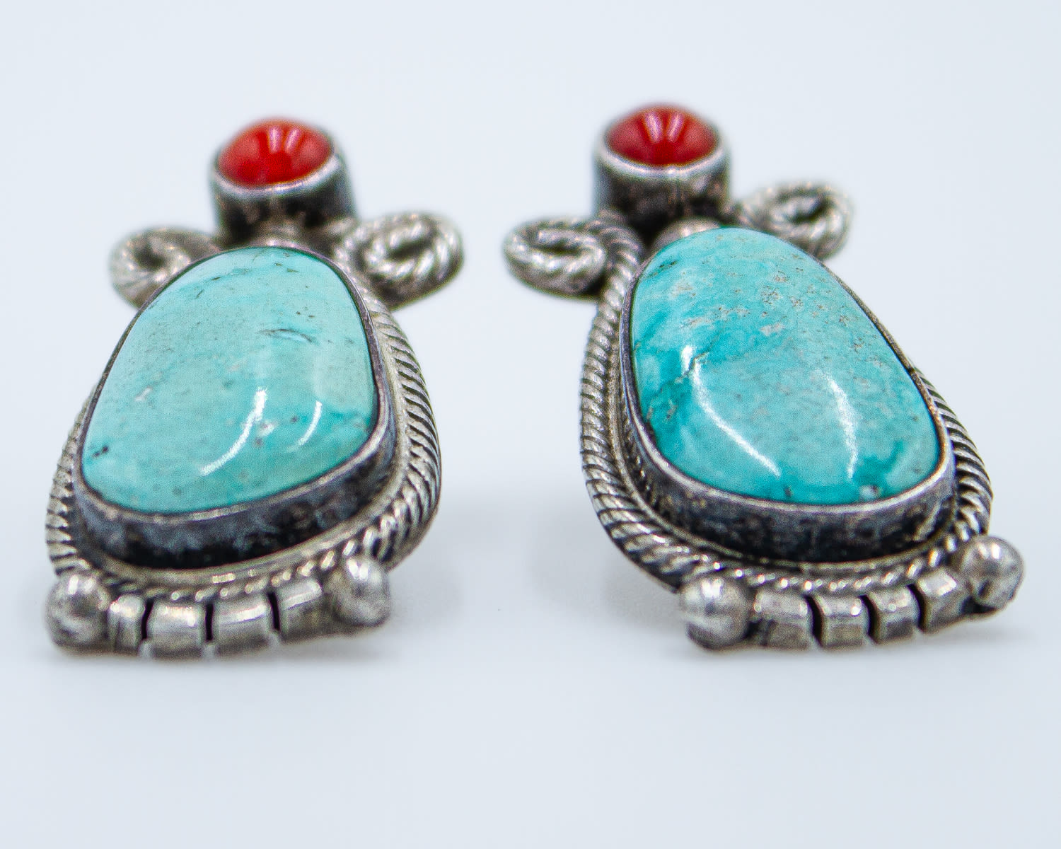 Sterling turquoise Coral Running Bear Earrings 7.2g