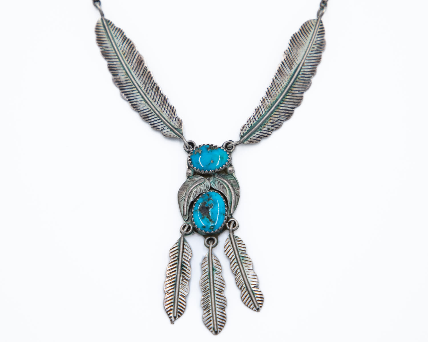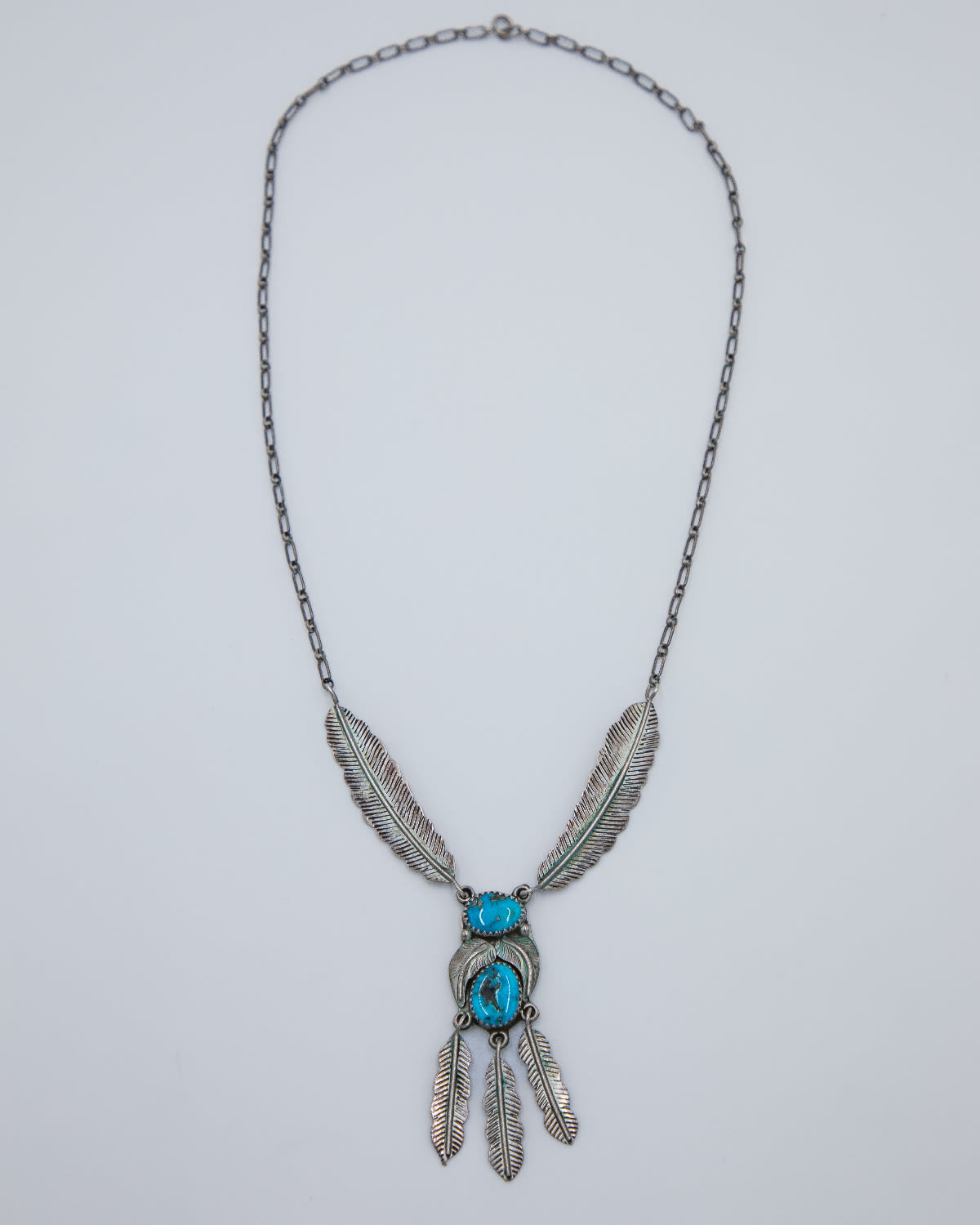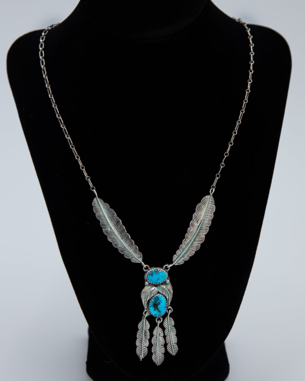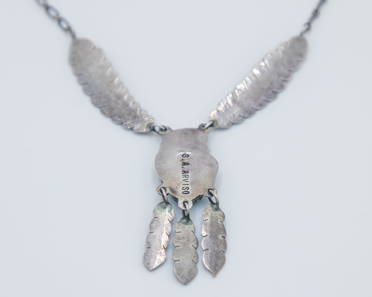 Sterling Navajo Turquoise S.A. Arviso Necklace 16g. Signed S.A. Arviso- Steve Arviso