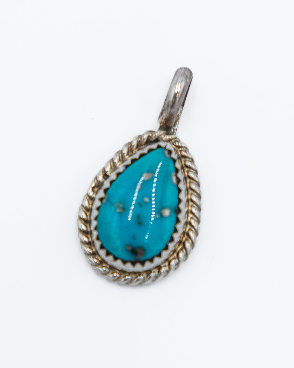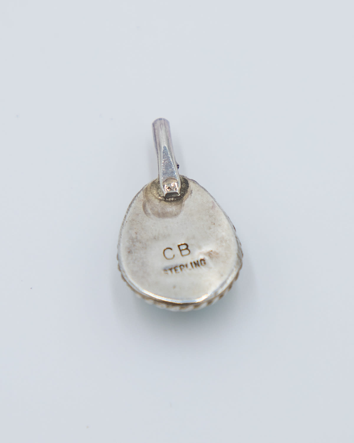 Sterling Navajo Turquoise “CB” Pendant 4g