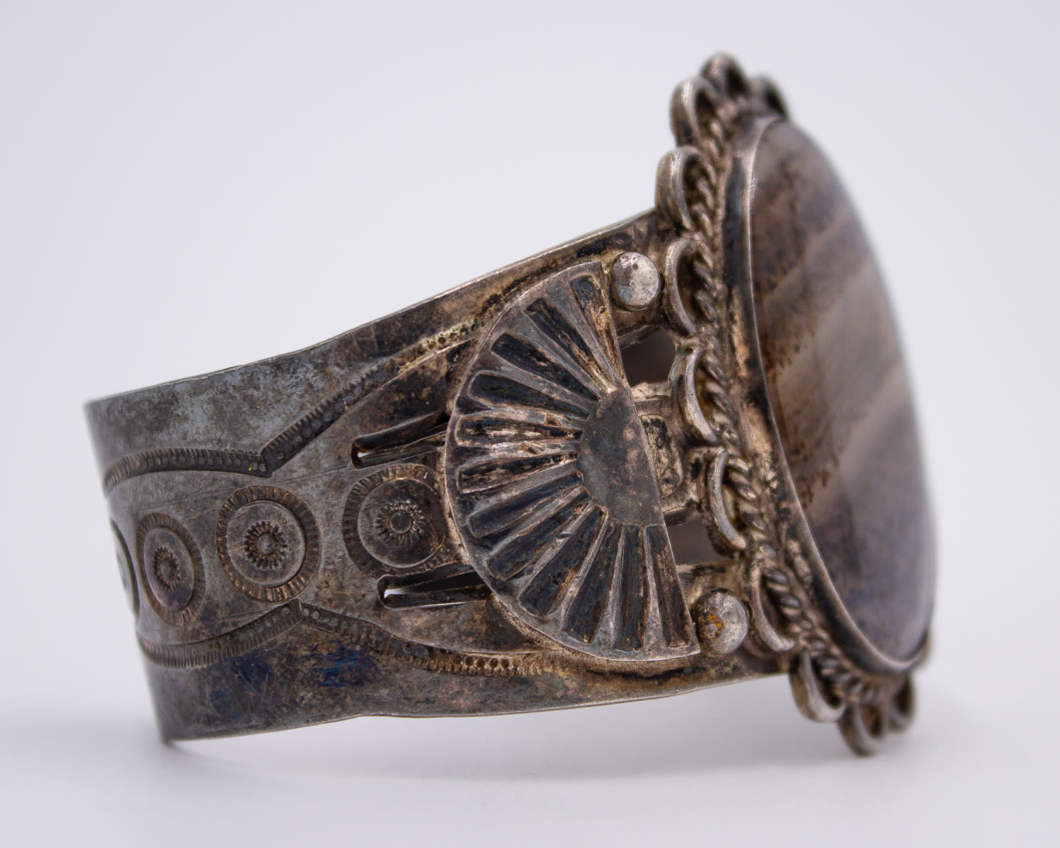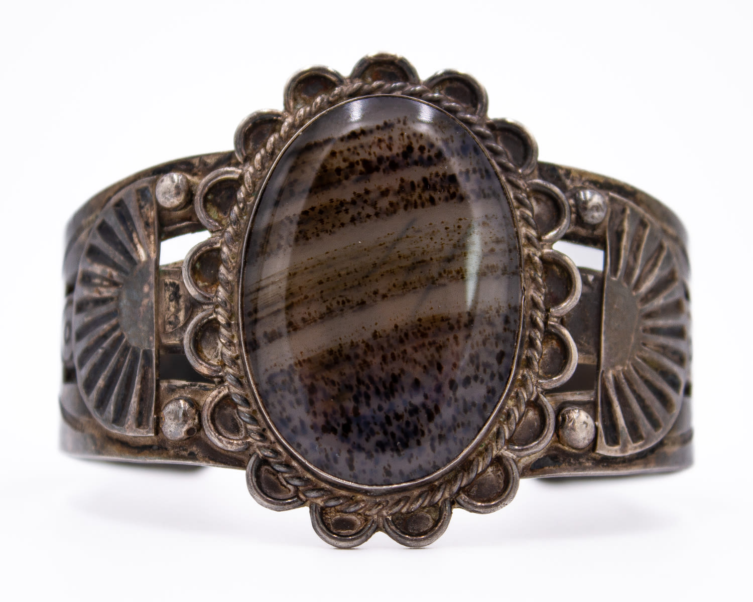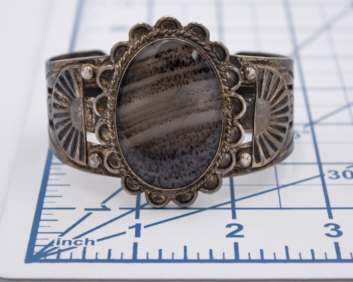 Sterling Native Petrified Wood Cuff Bracelet 79g