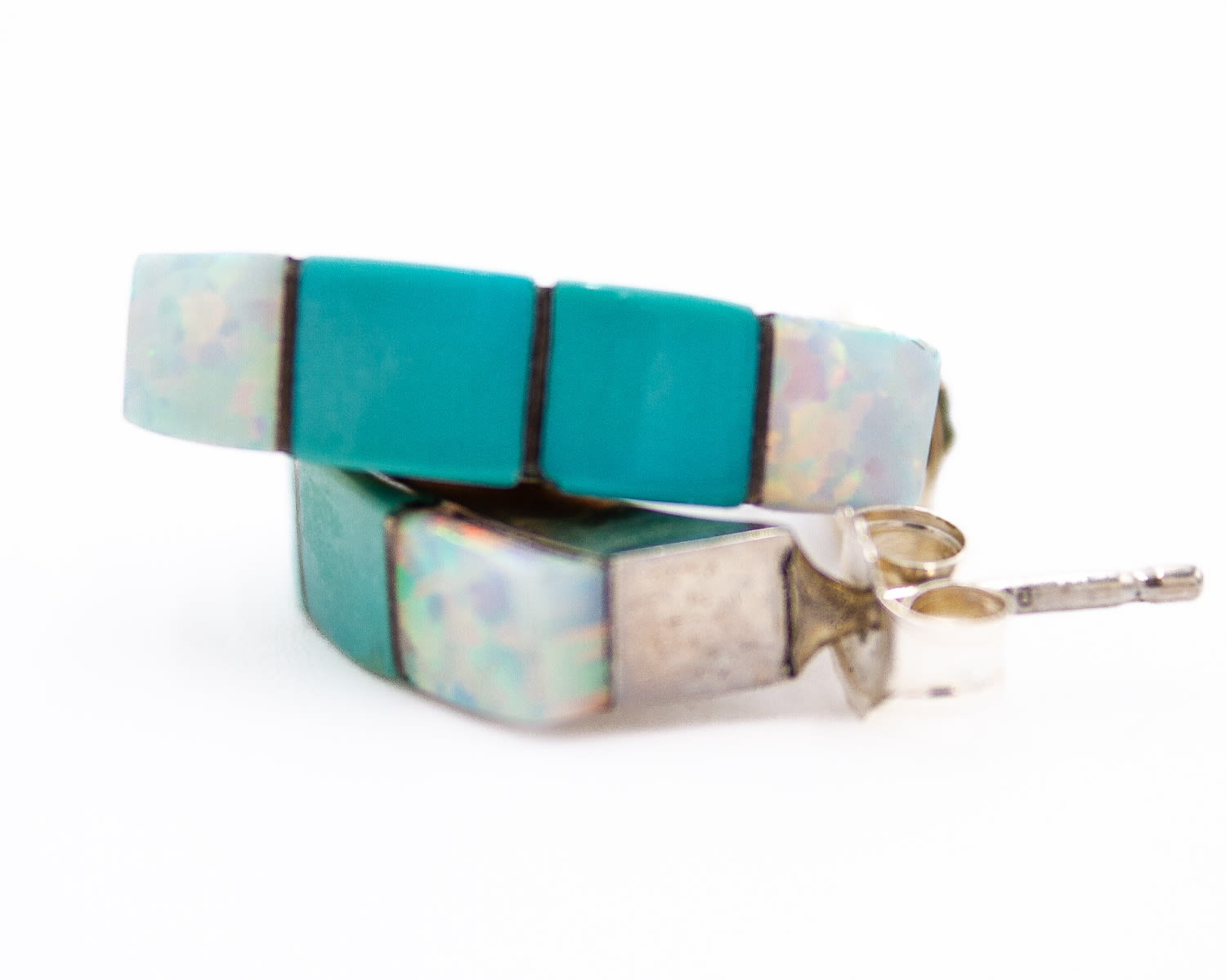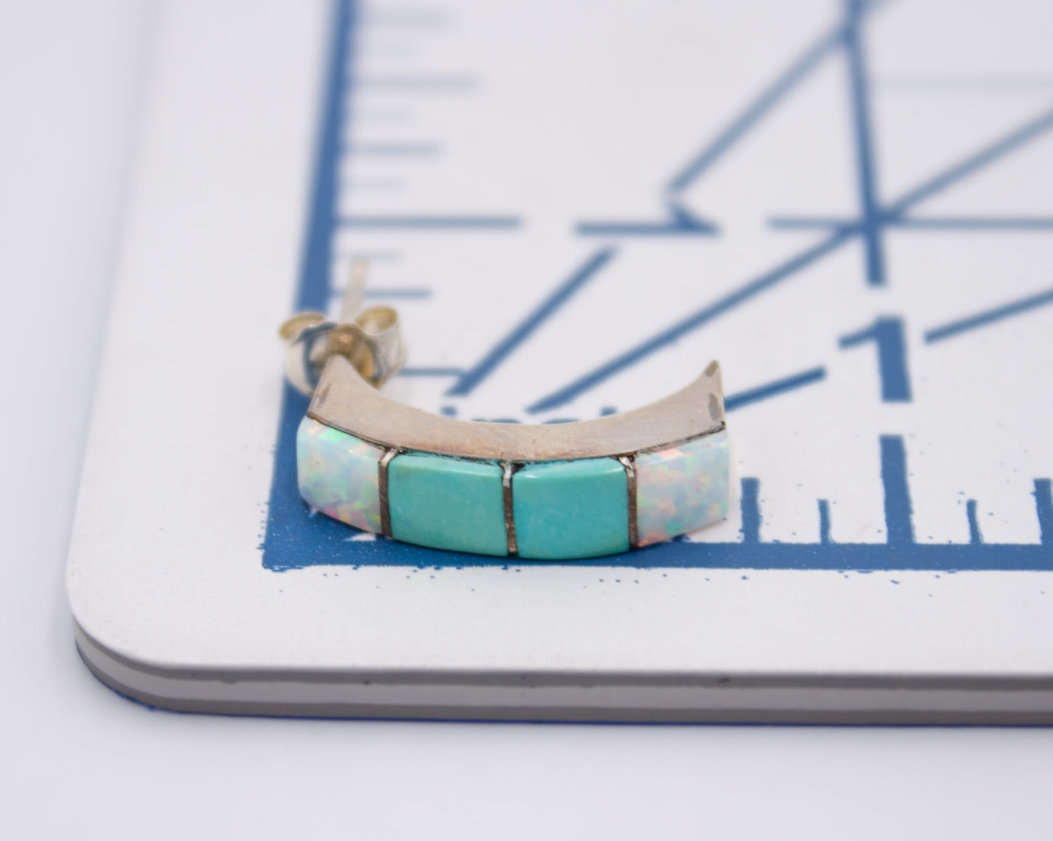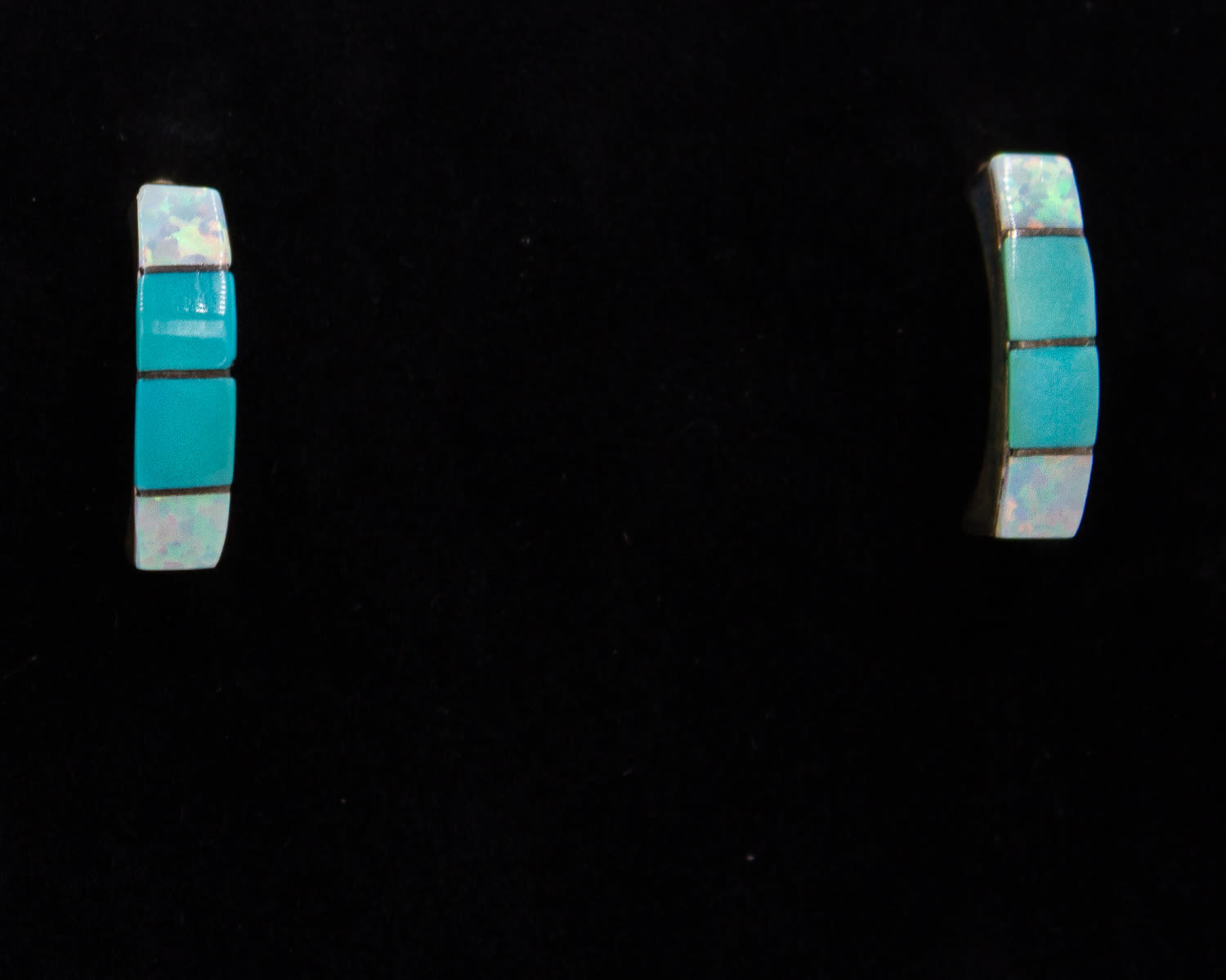 Sterling Zuni Inlay Opal Turquoise Kent Lonjose Earrings 2.4g