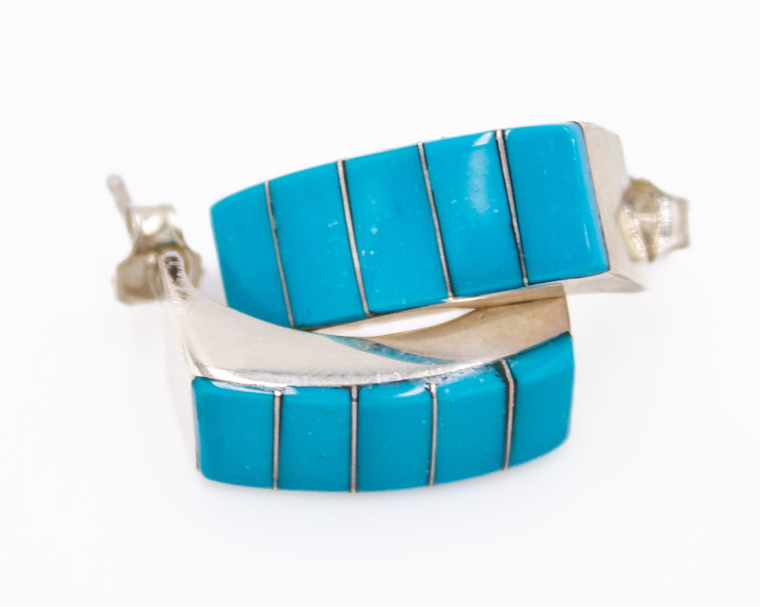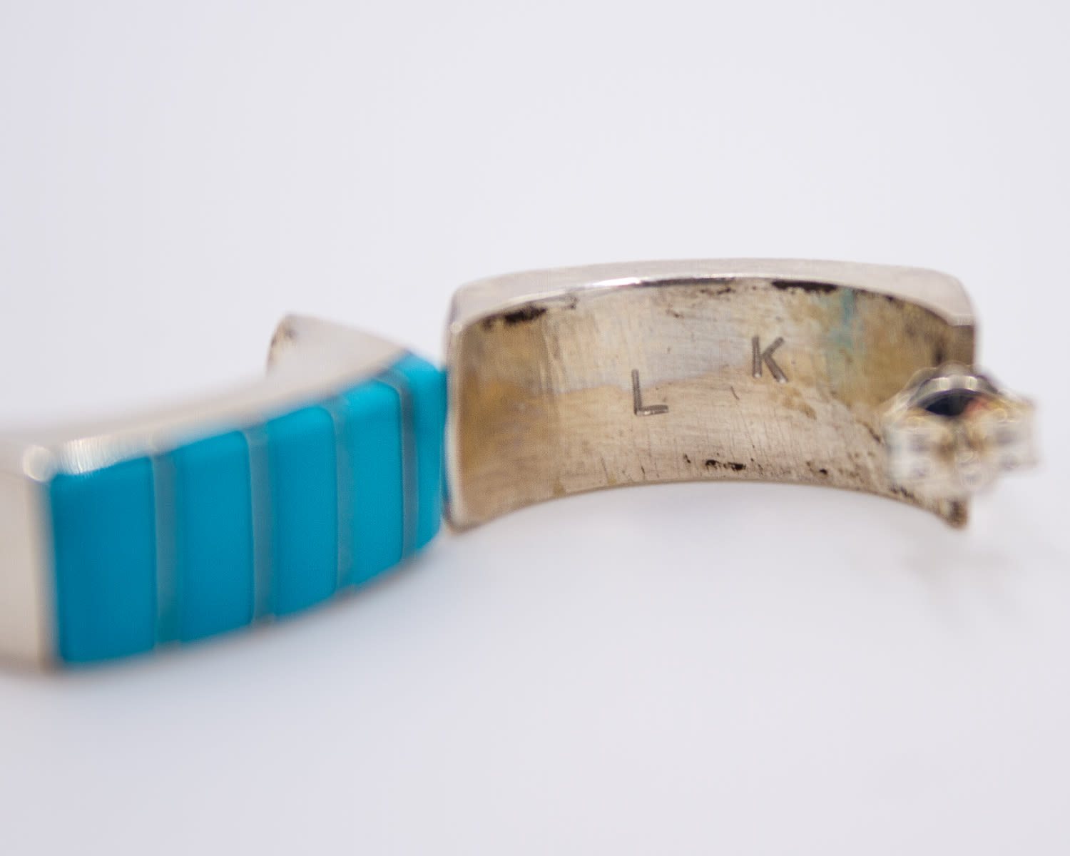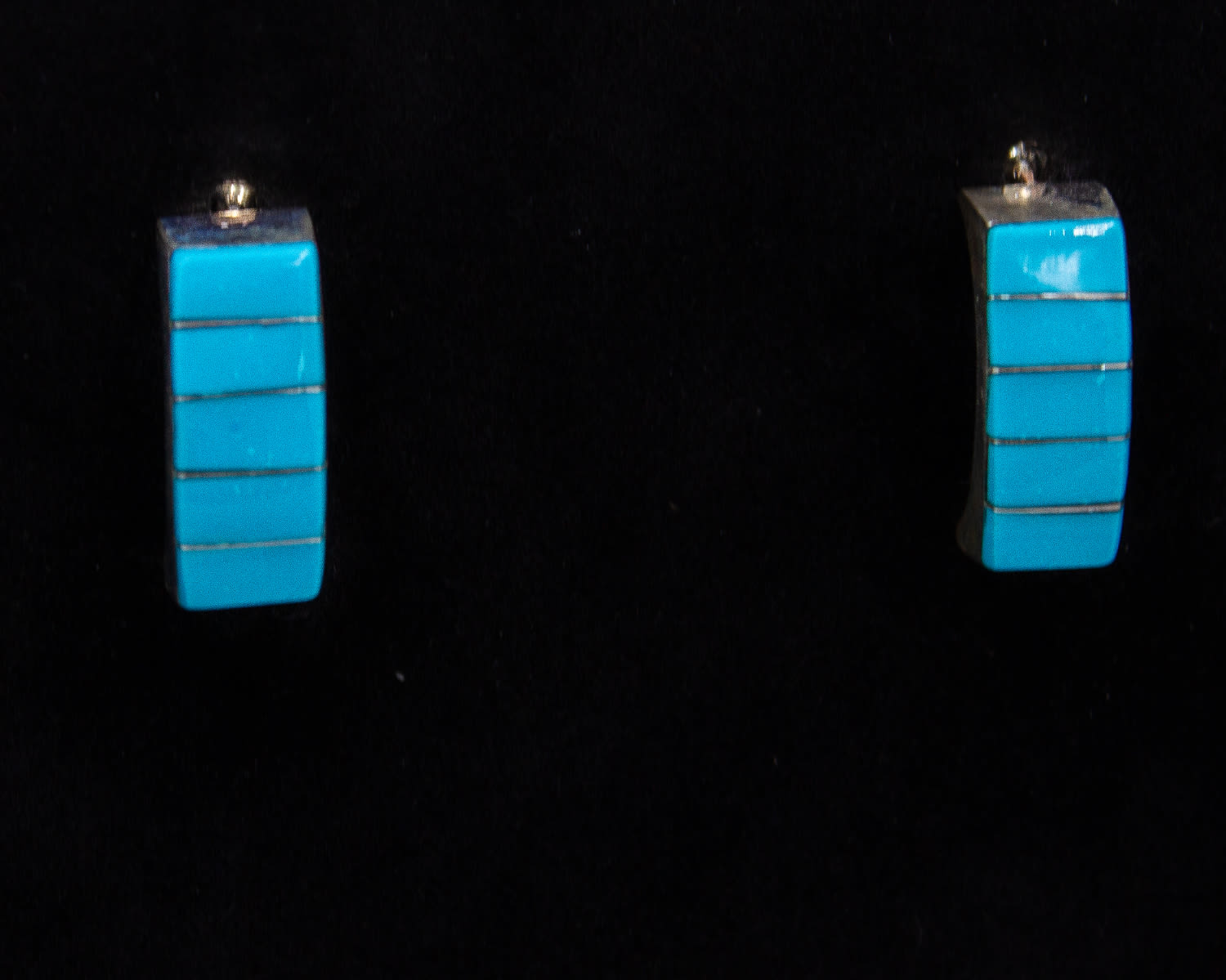 Sterling Zuni Turquoise Inlay Earrings “K” 4.2g
