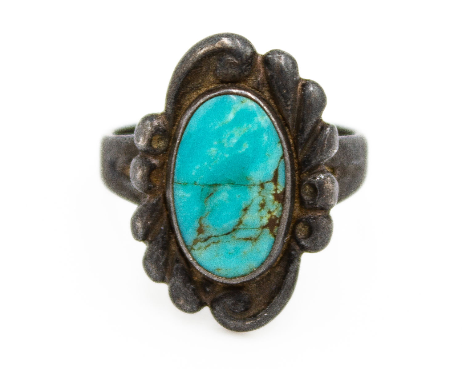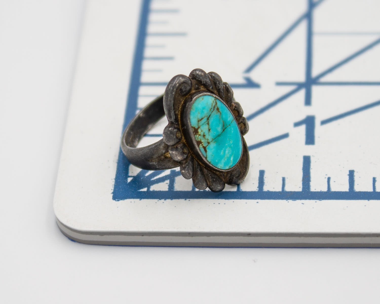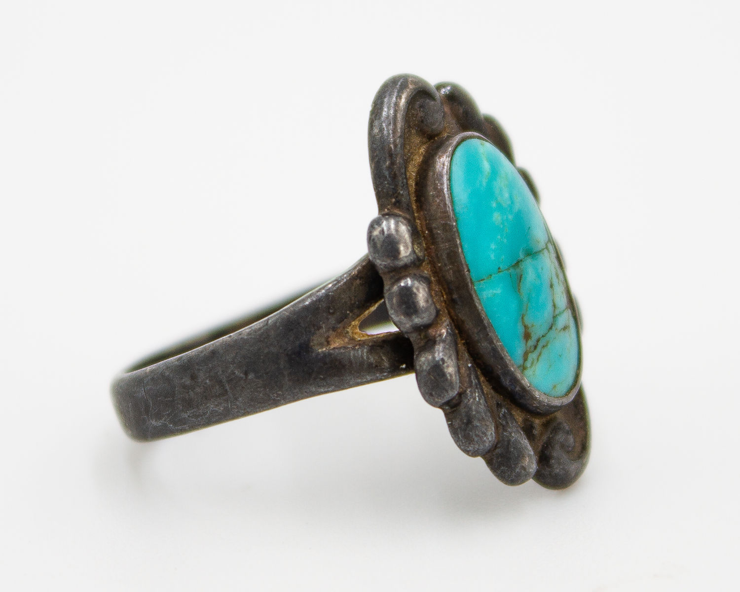 Old Sterling Navajo Turquoise Ring Size 4.5 As Is stone cracked in middle 4.2g