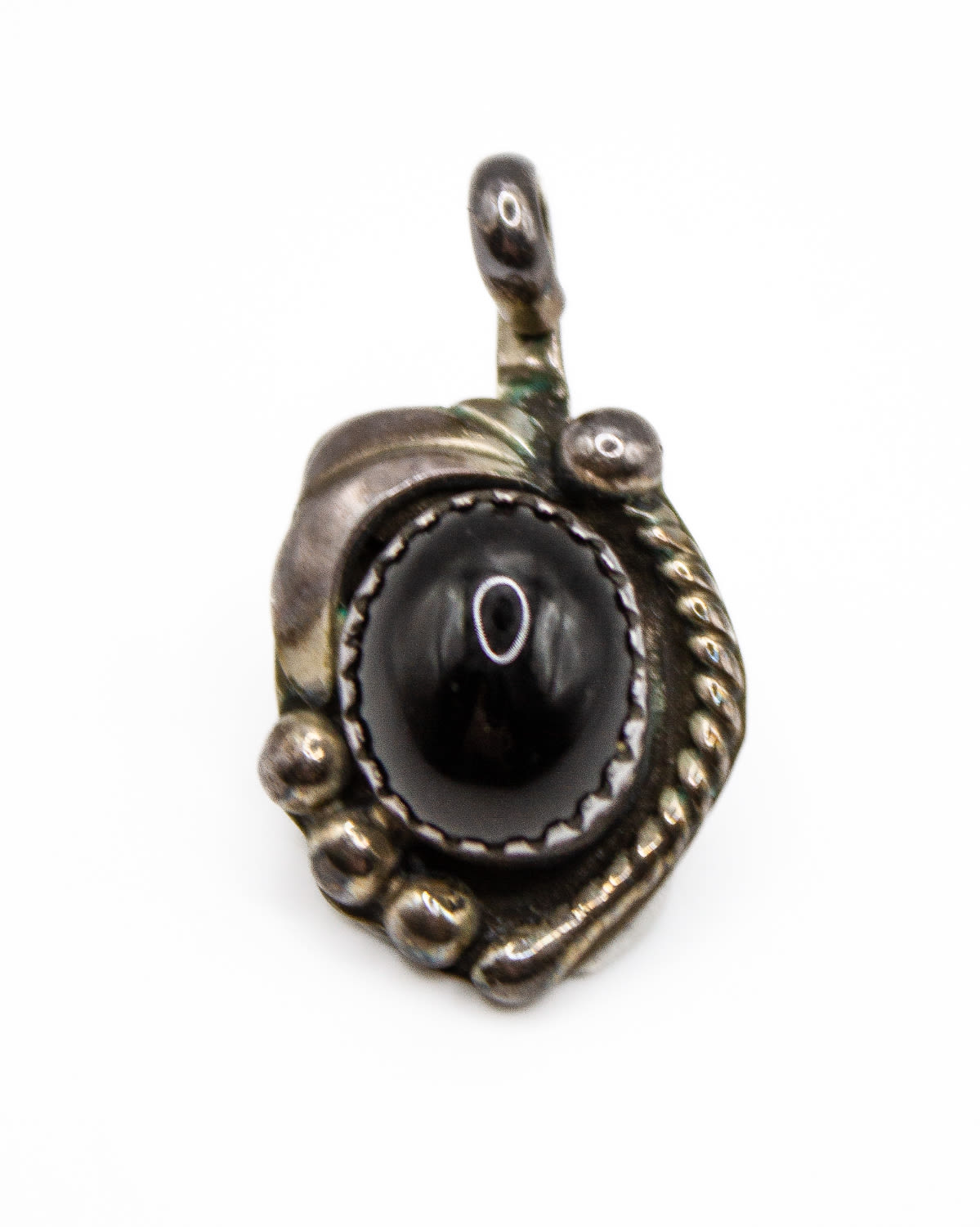 Sterling Silver Navajo Signed Charley Onyx Pendant 3g