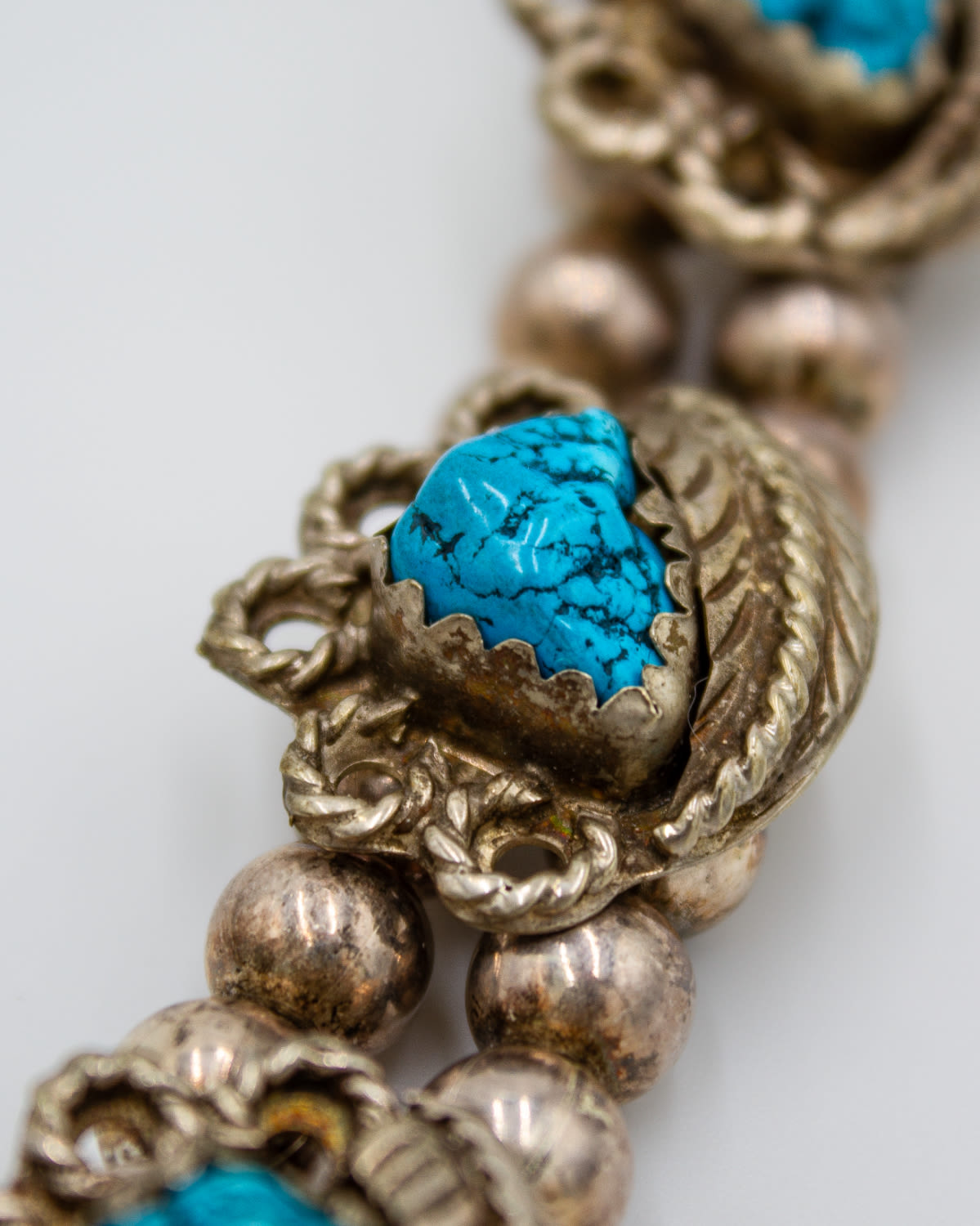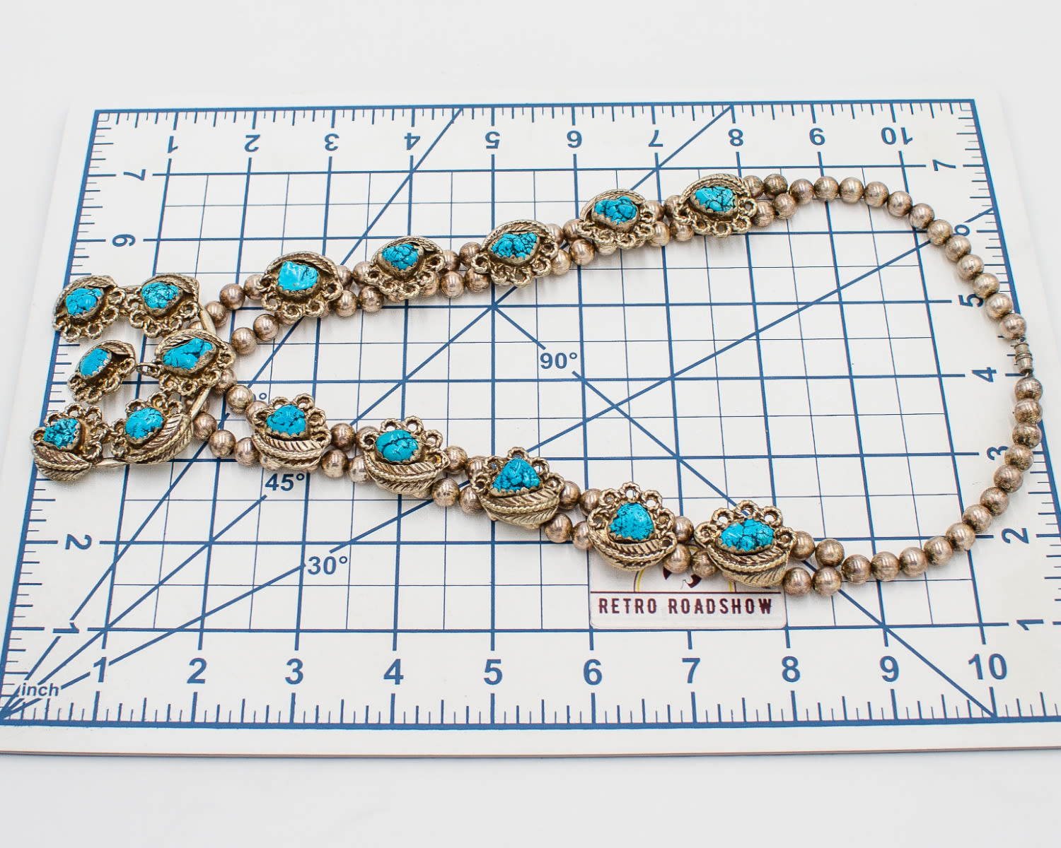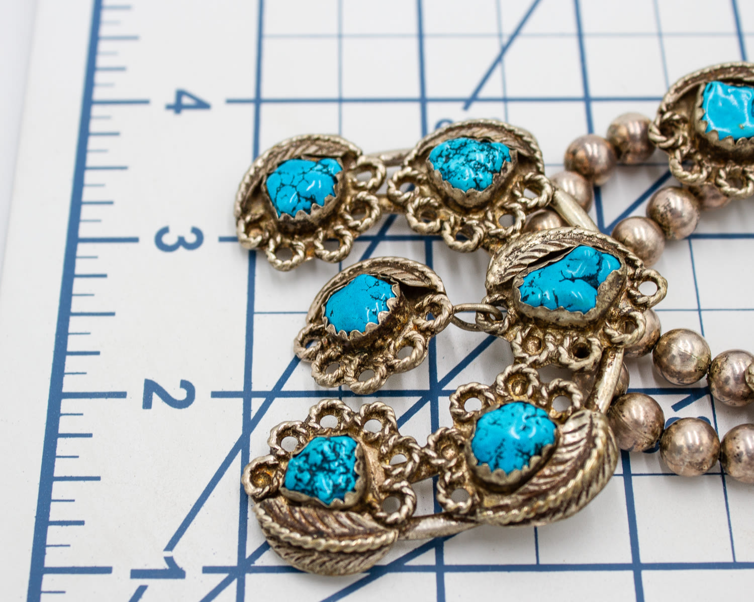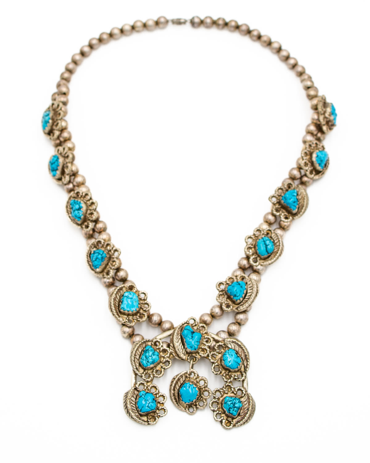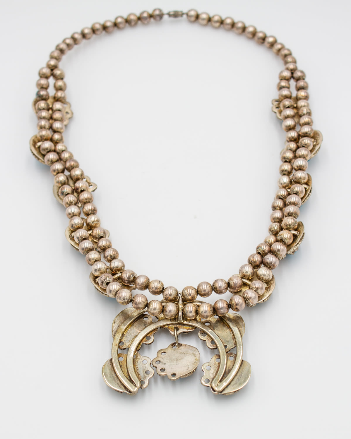 Sterling Silver Native Turquoise Squash Blossom Necklace