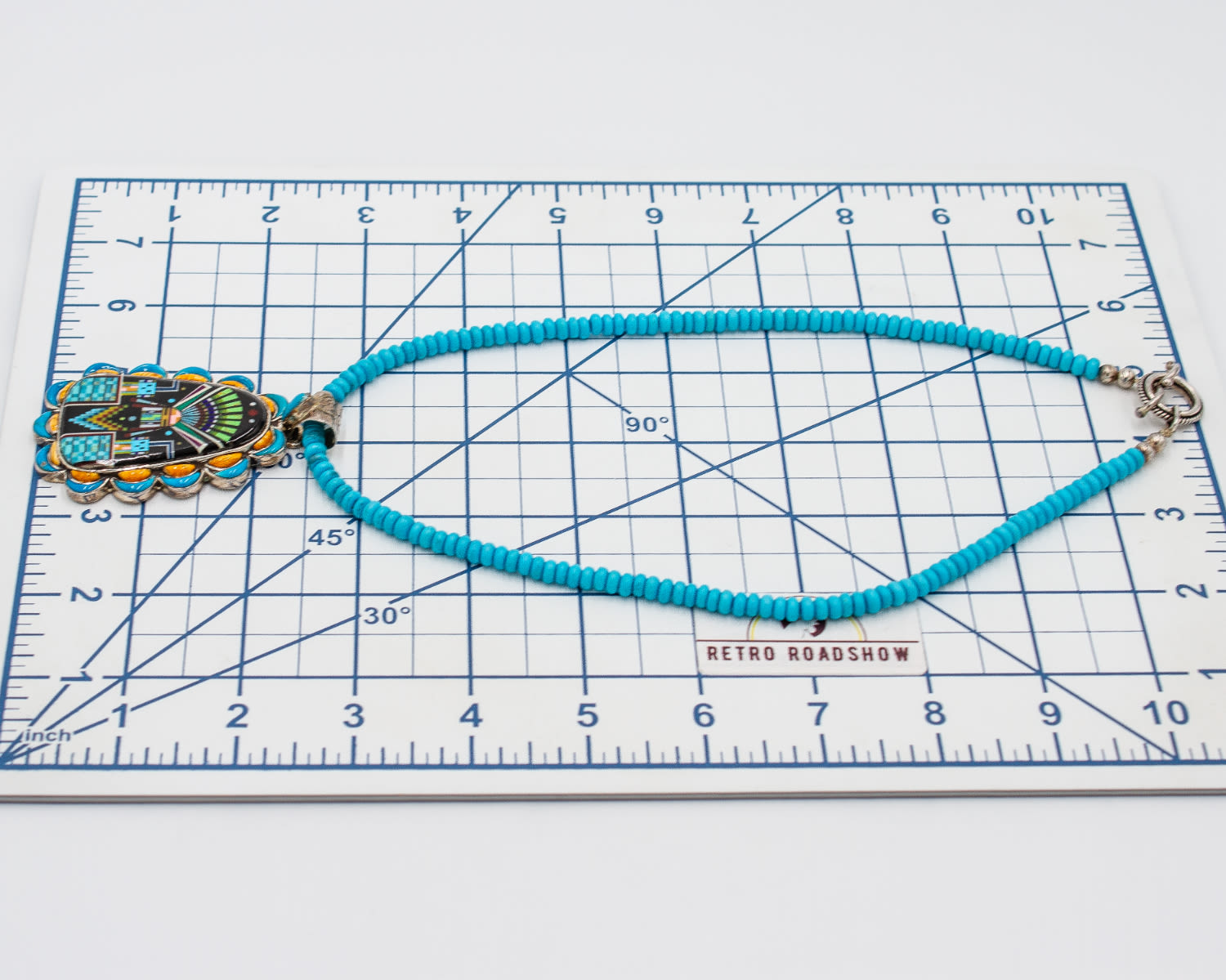 Sterling Sallie Yazzie Turquoise Inlay necklace- Eqsuisite details- 65g