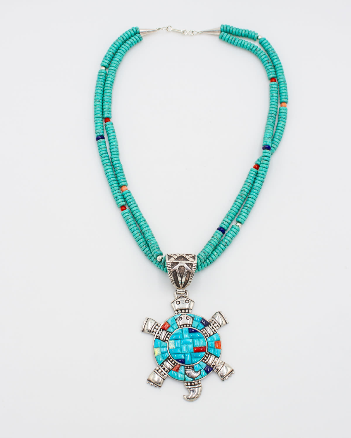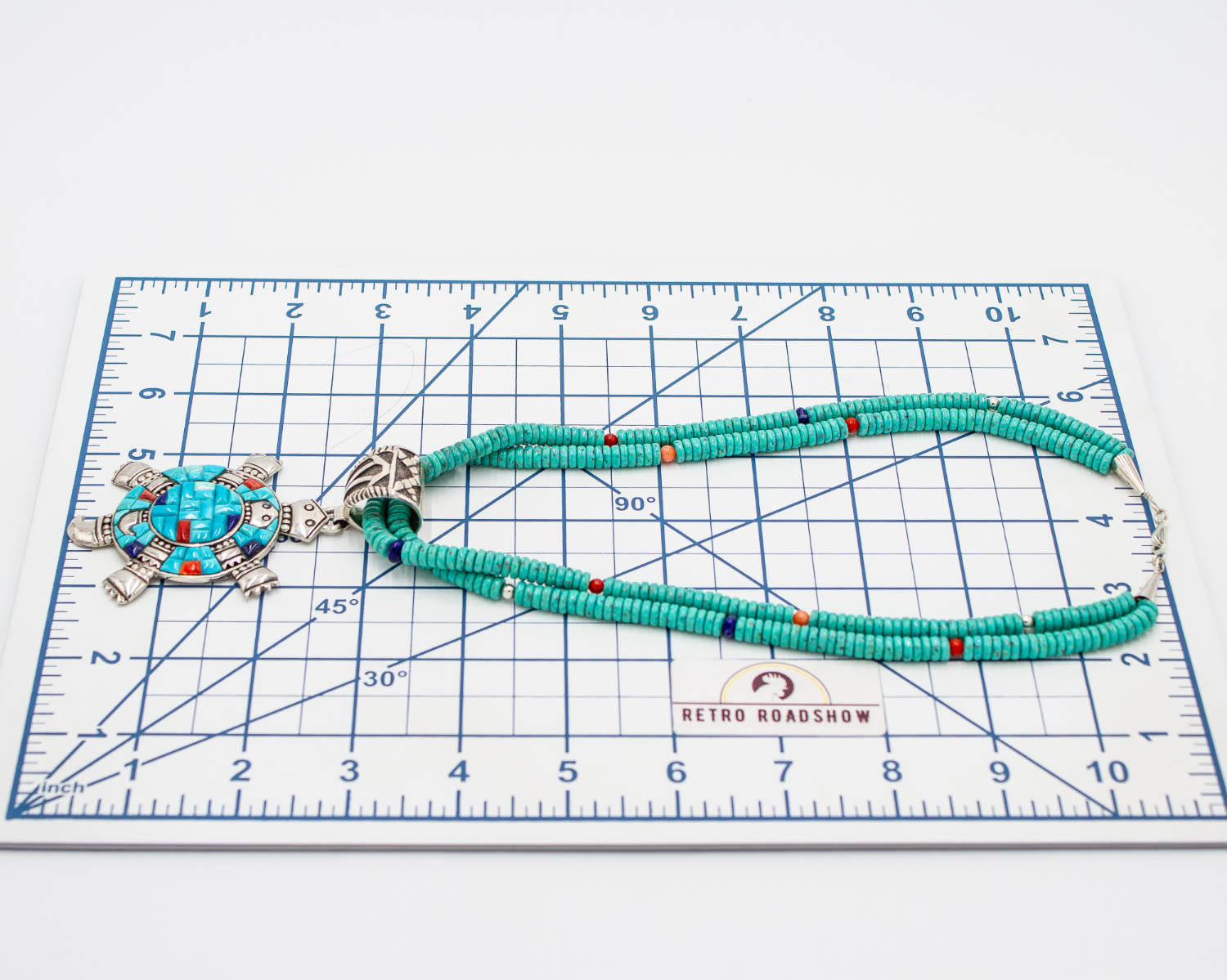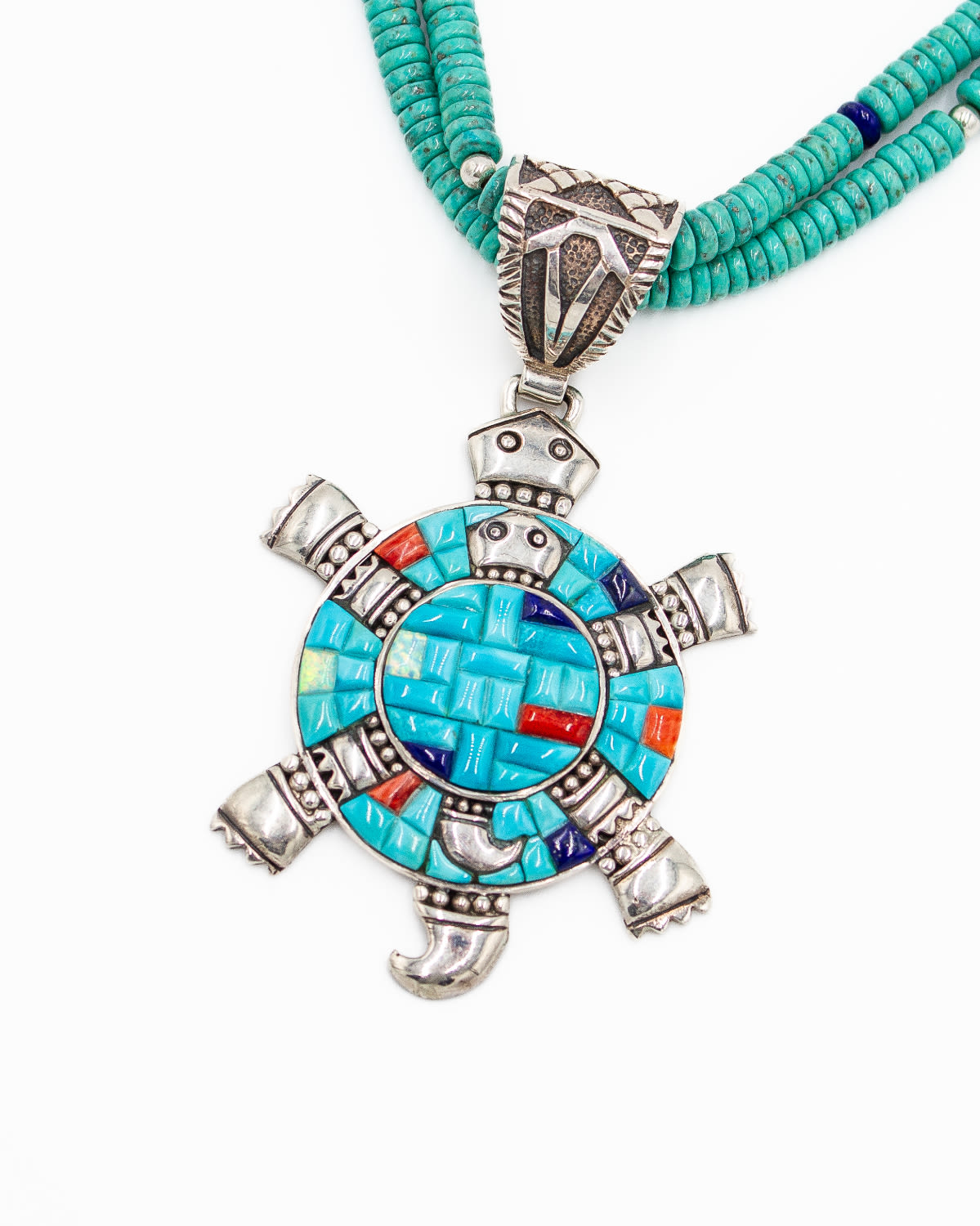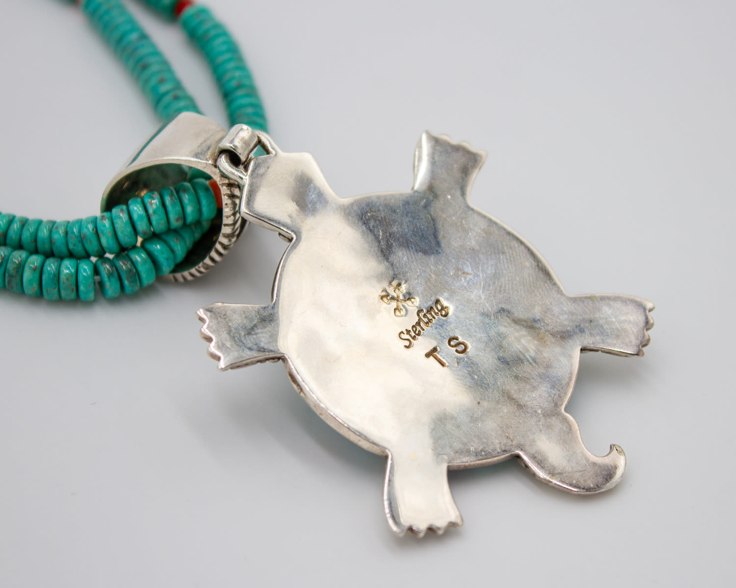 Sterling Signed “TS” Inlay Turtle Necklace – 99g