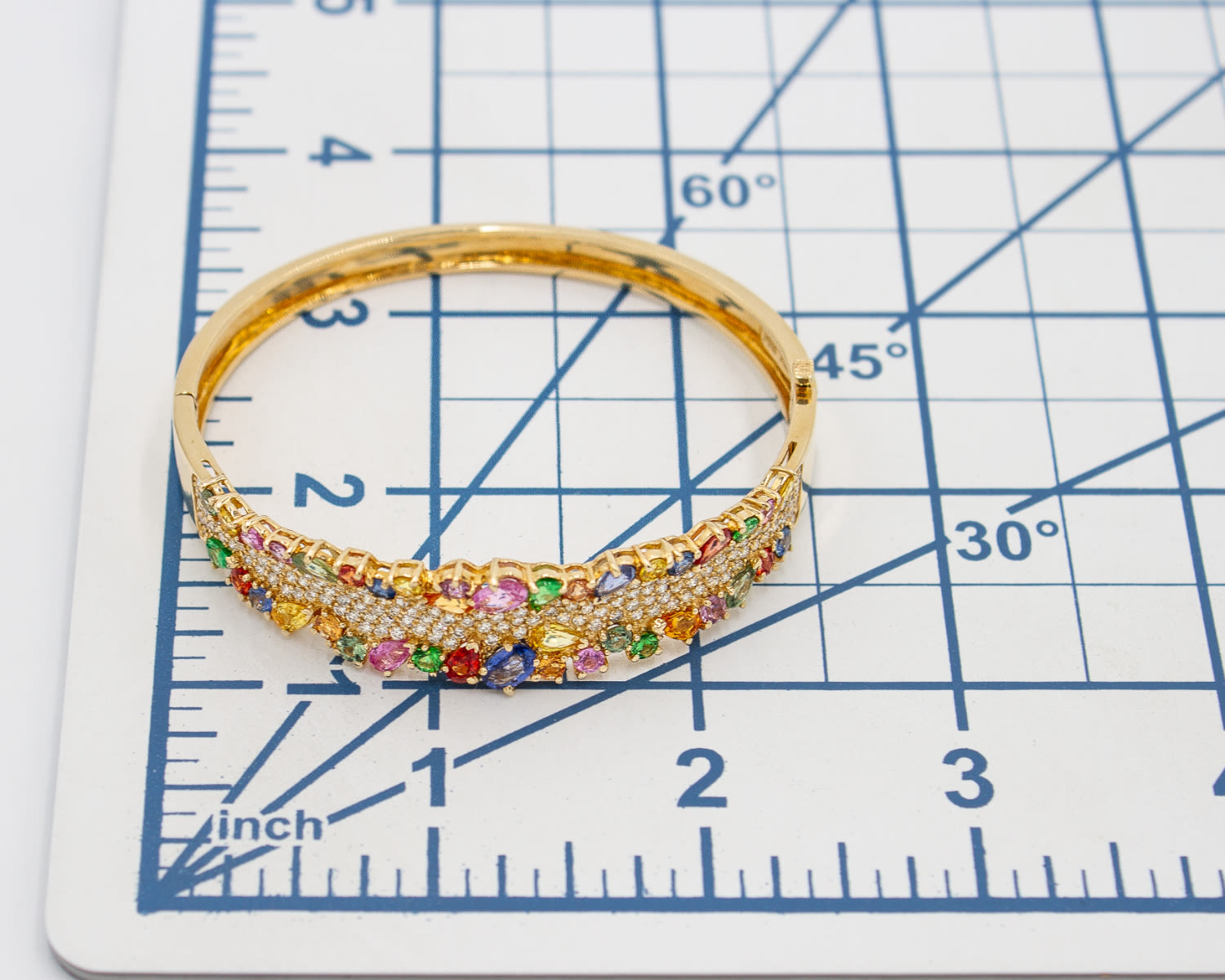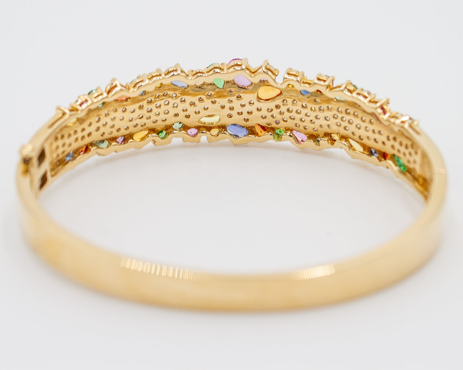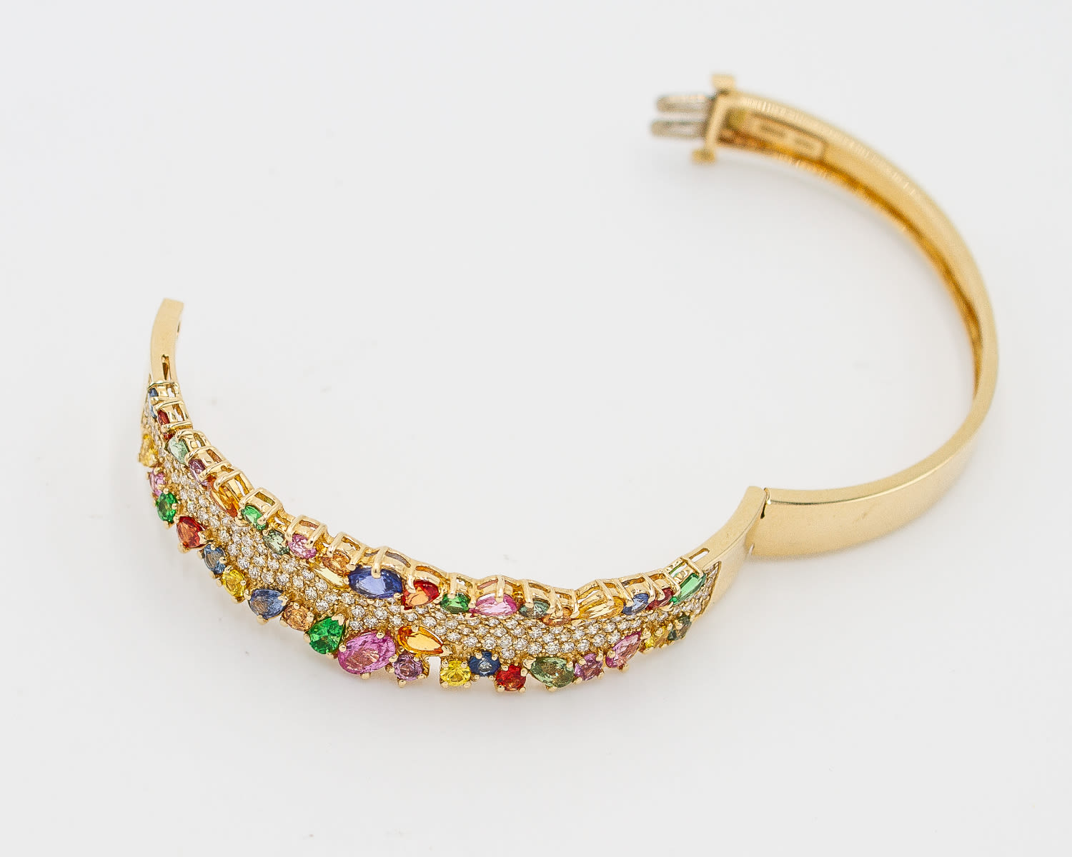 14k Gold Effy Watercolors Natural Diamonds Sapphires: 1.63 TCW Diamonds, H/I color, I1 clarity. 8.35 TCW Sapphires; Ceylon, Green, Orange, Red. Purchsed for $6000.