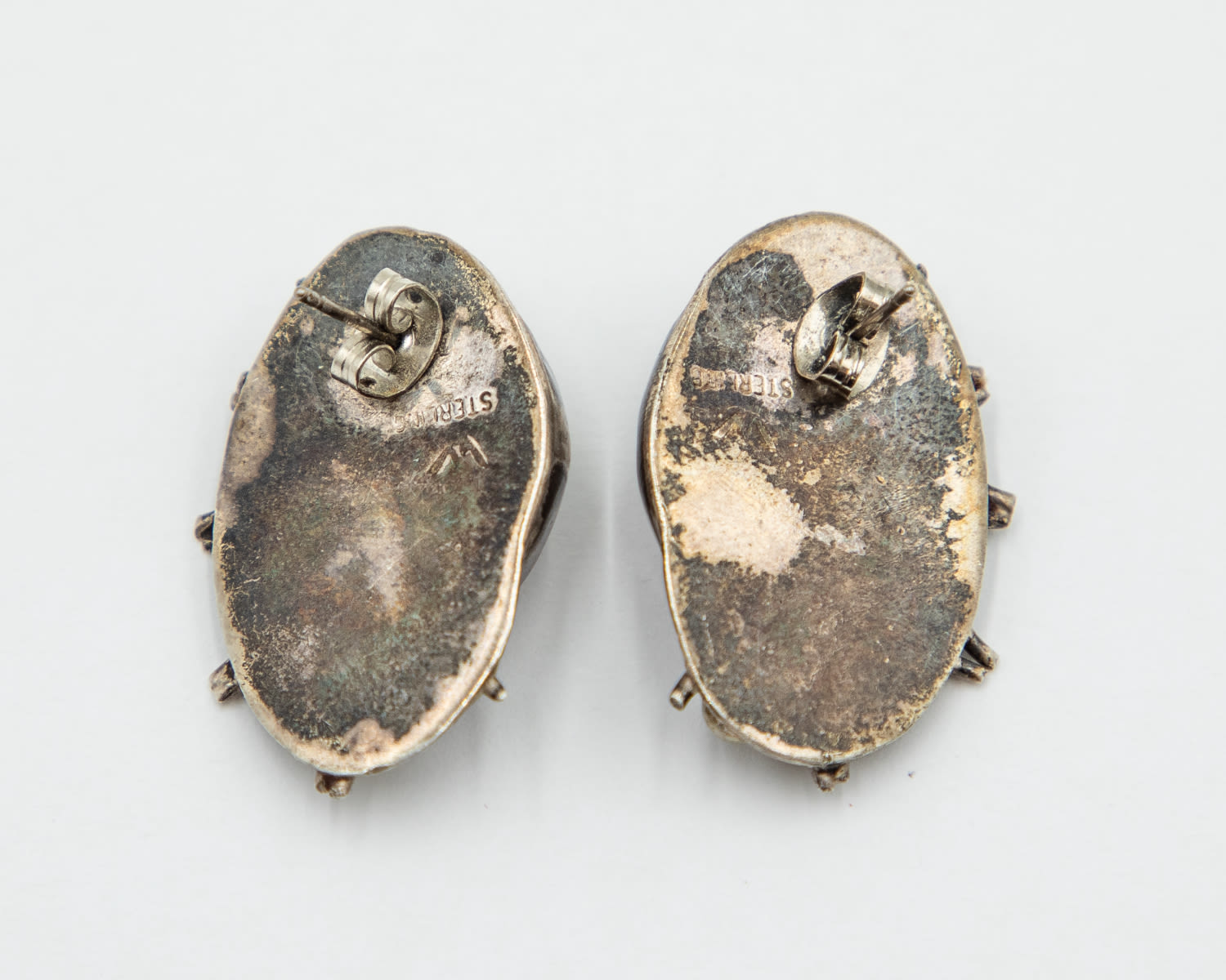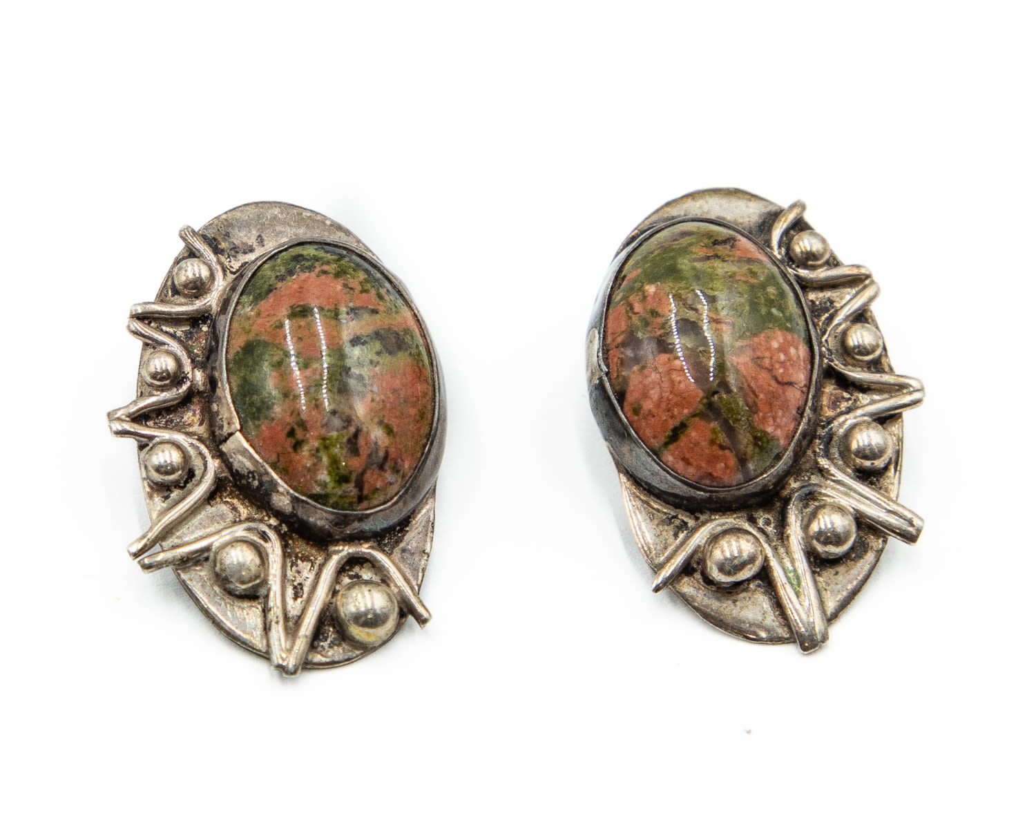 Native Sterling Unakite Stud Earrings 13.8g. Marked with pictograph