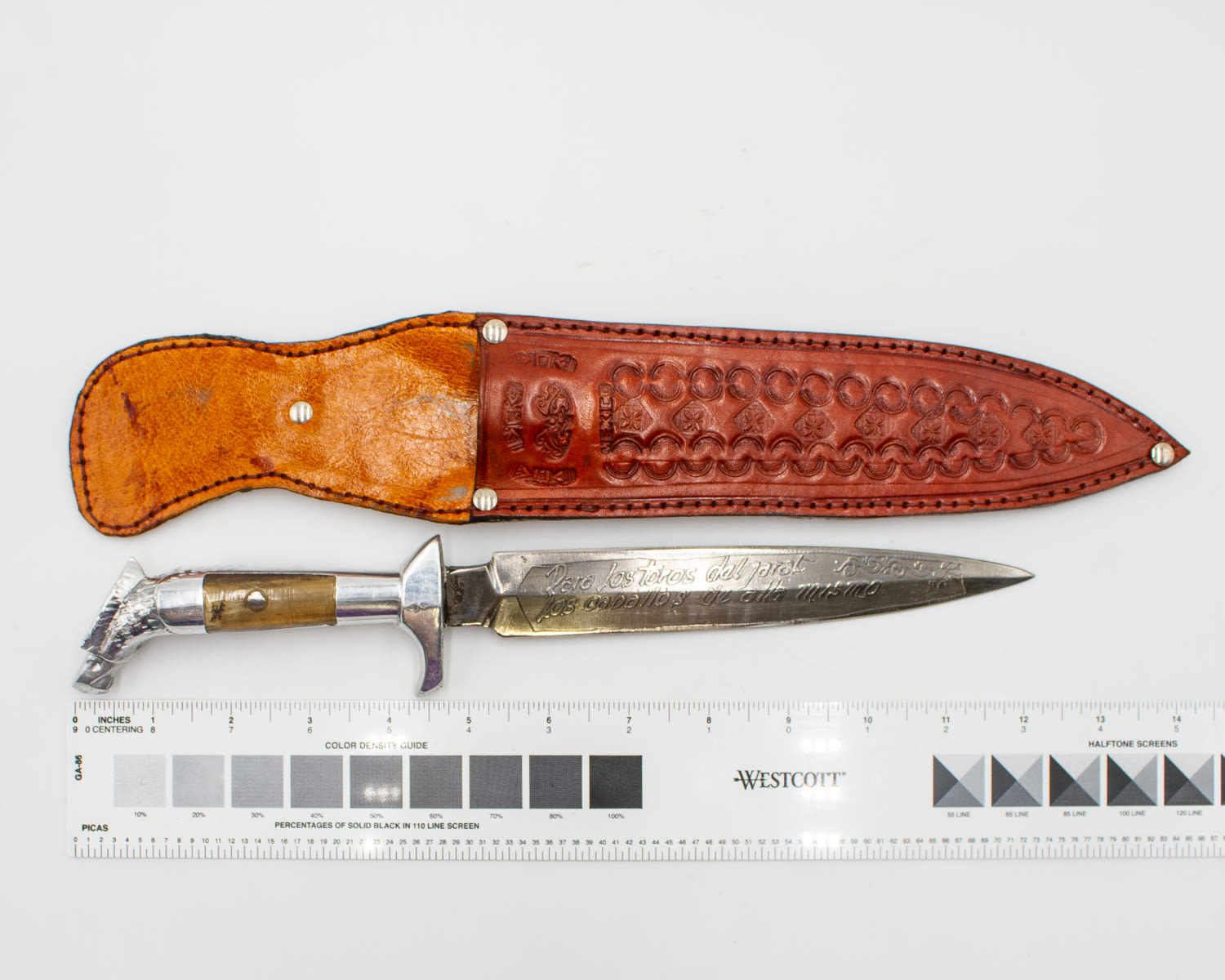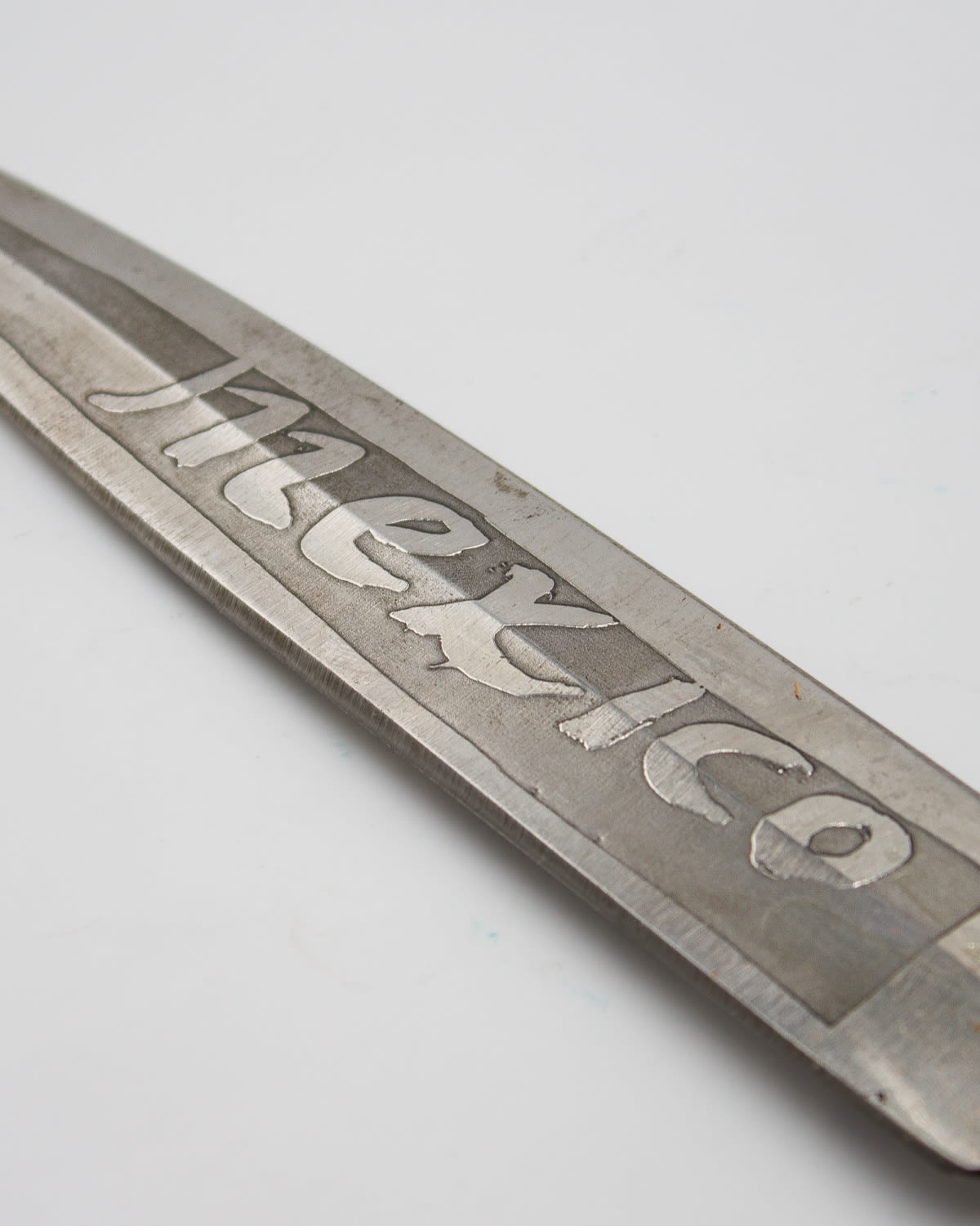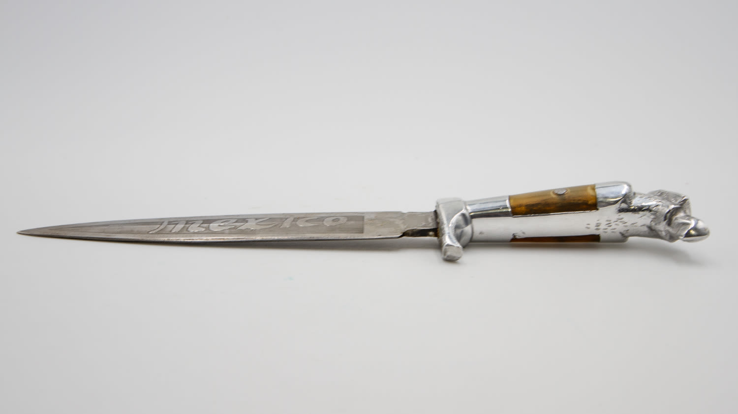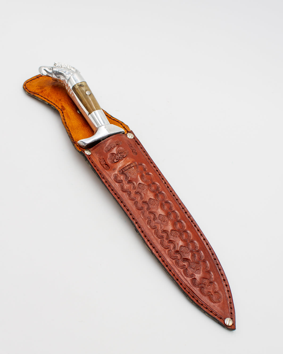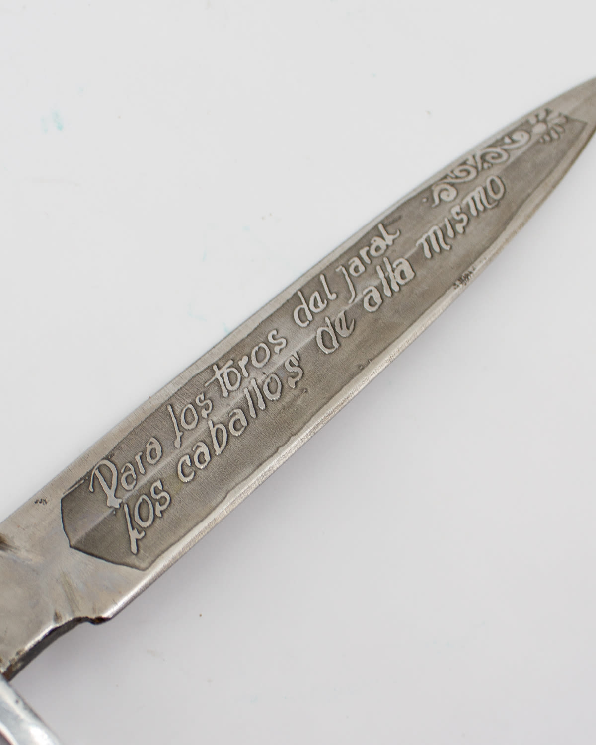 Eagle Mexico Bowie Knife Like New Condition“Dara los toros del jarat Los caballos de alla mismo” on bladeBone handle