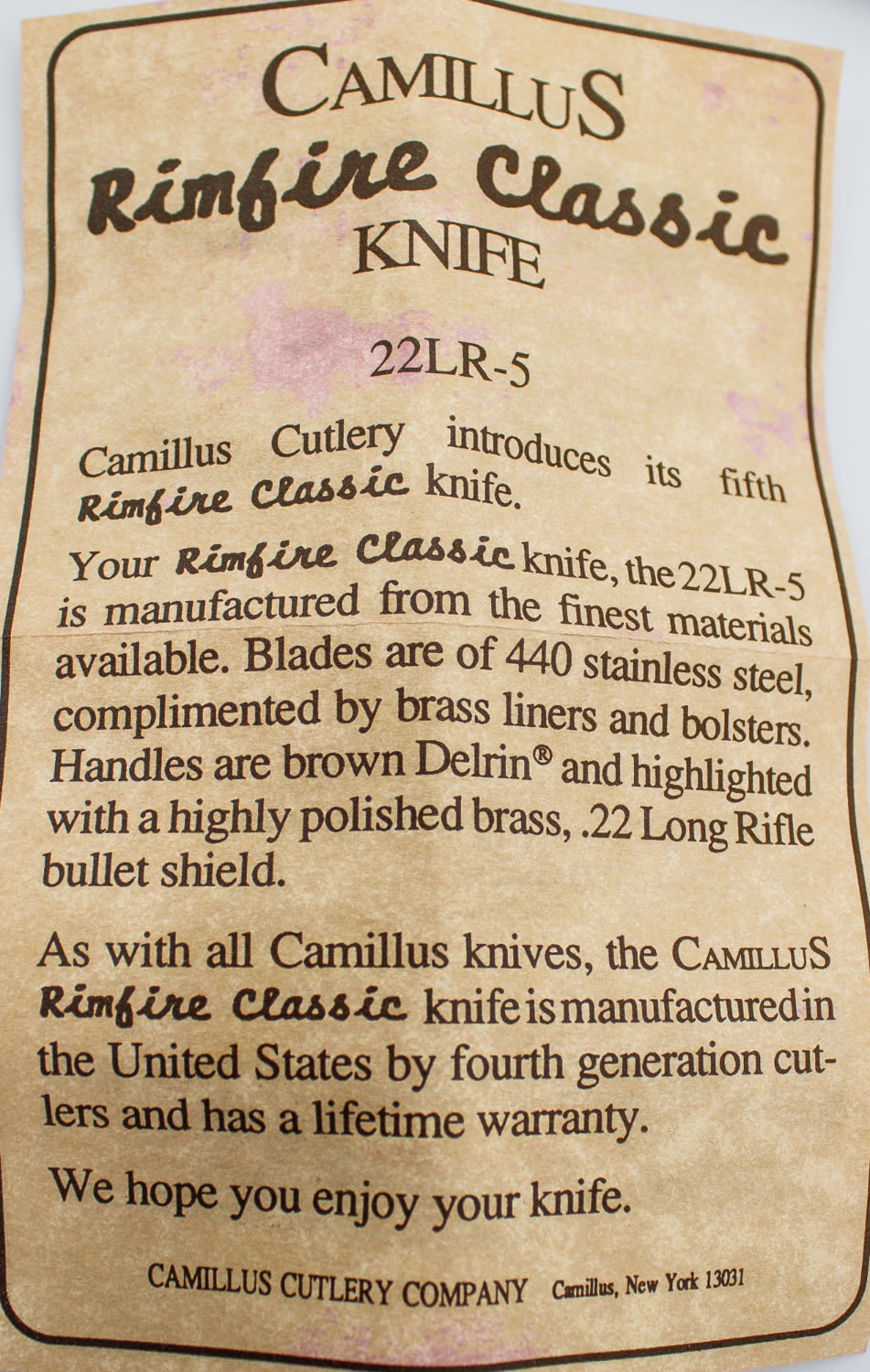 Camillus 22LR5 Rimfire Classic Knife Like New Condition