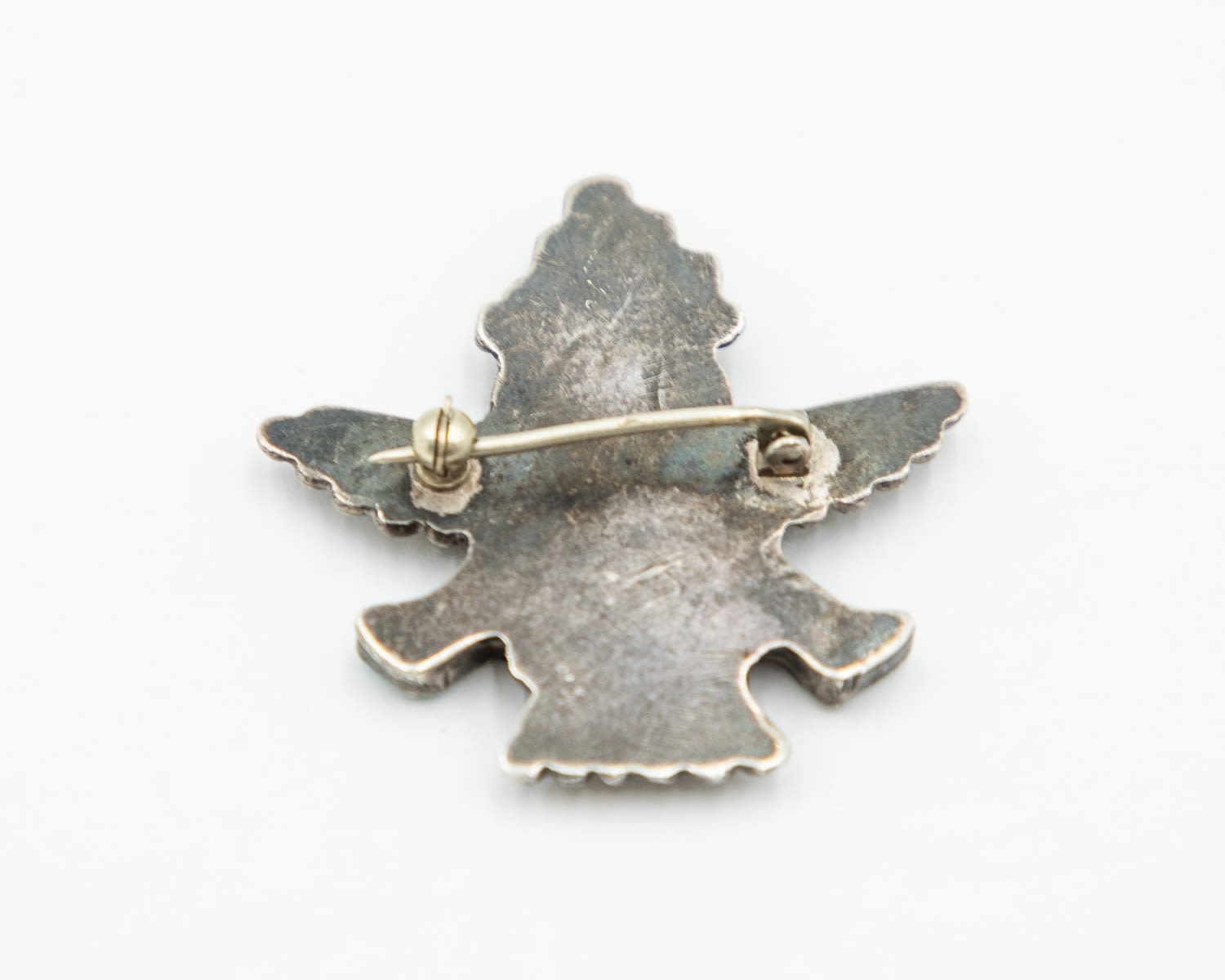 Zuni Knifewing Brooch Pin Sterling Mother of Pearl Turquoise Spiny Oyster Onyx Inlay 10.3g