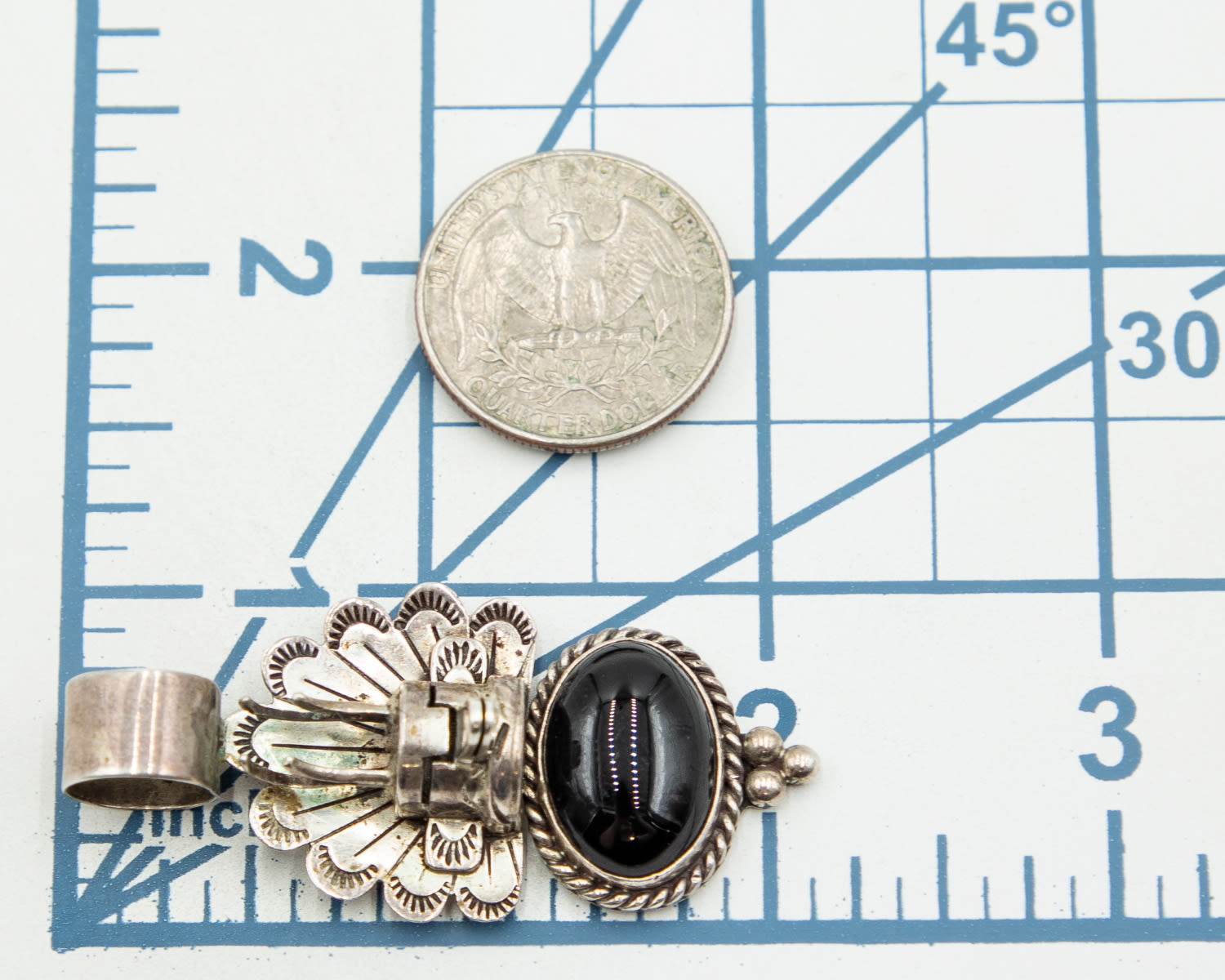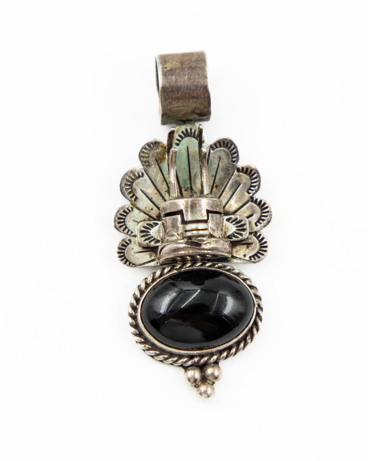 Zuni Sterling Kachina and Onyx Pendant 10.6g