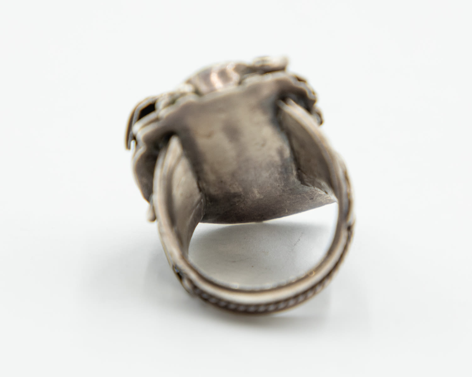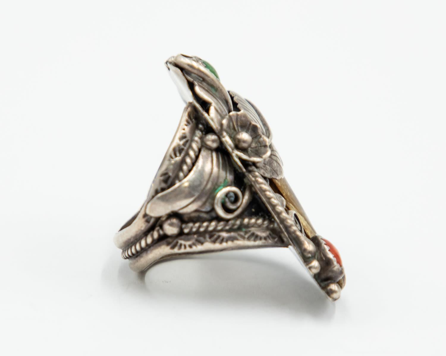 Navajo Bear Claw Sterling Turquoise Coral Ring Sz. 11, 20g