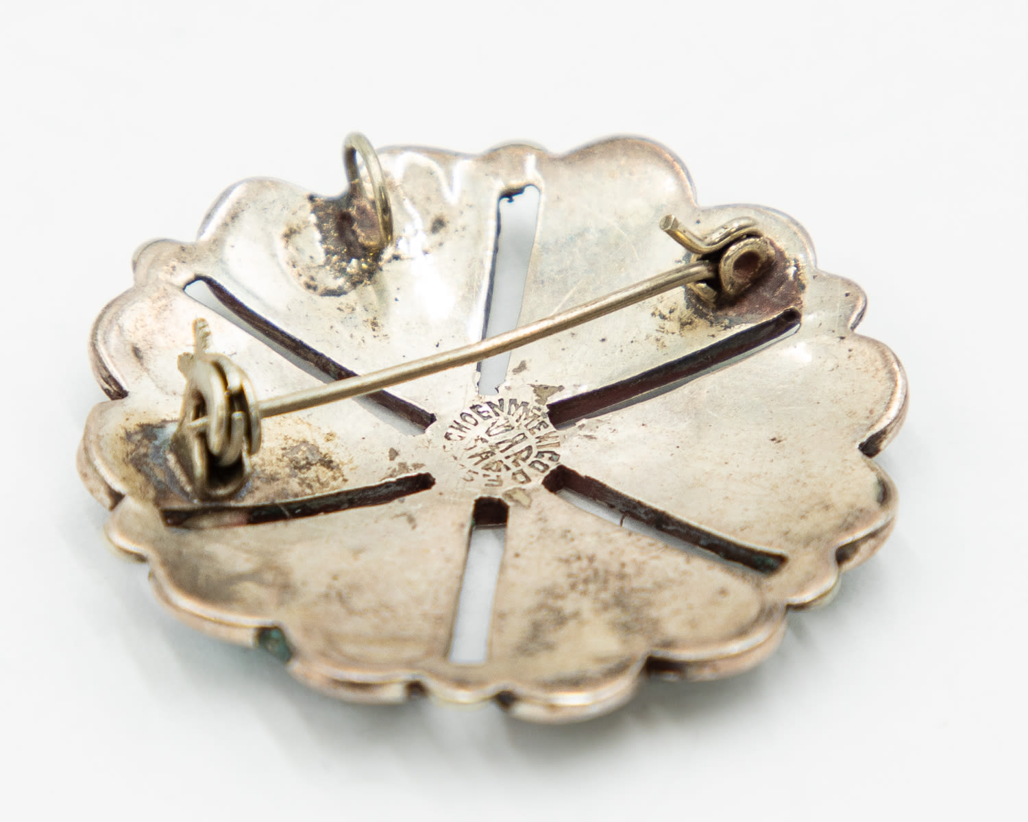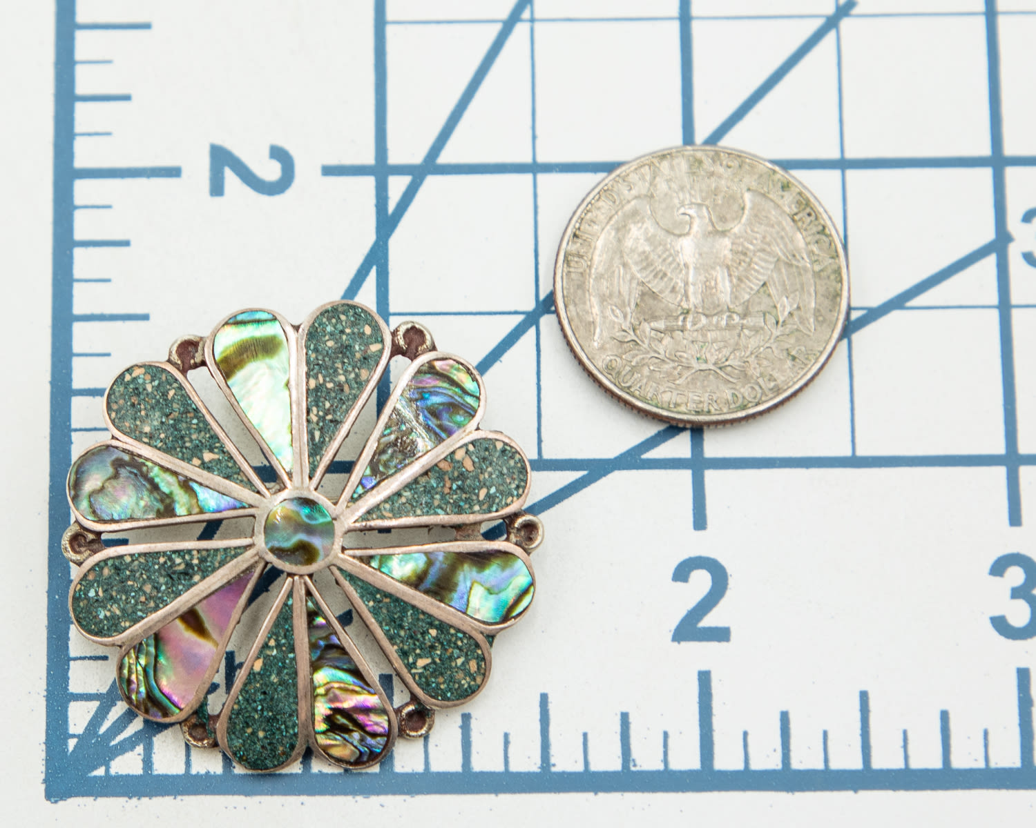 Signed Mexico Sterling Abalone Green Stone Inlay Flower Pendant Brooch 7.8gJAR/GAS Signature Stamp