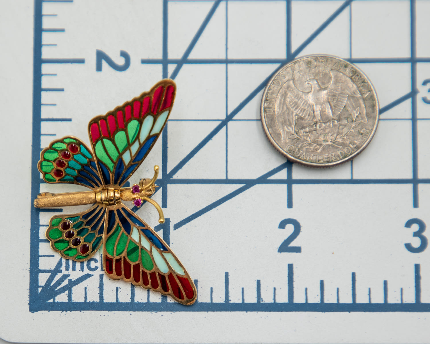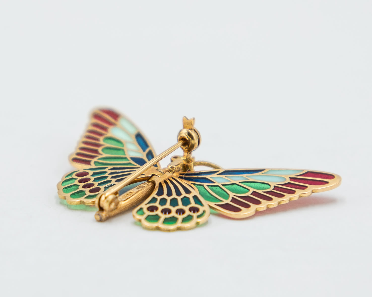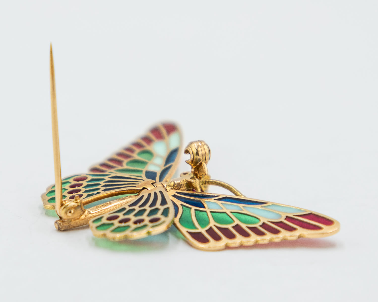 18k Mid Century Plique-a-Jour Butterfly Brooch