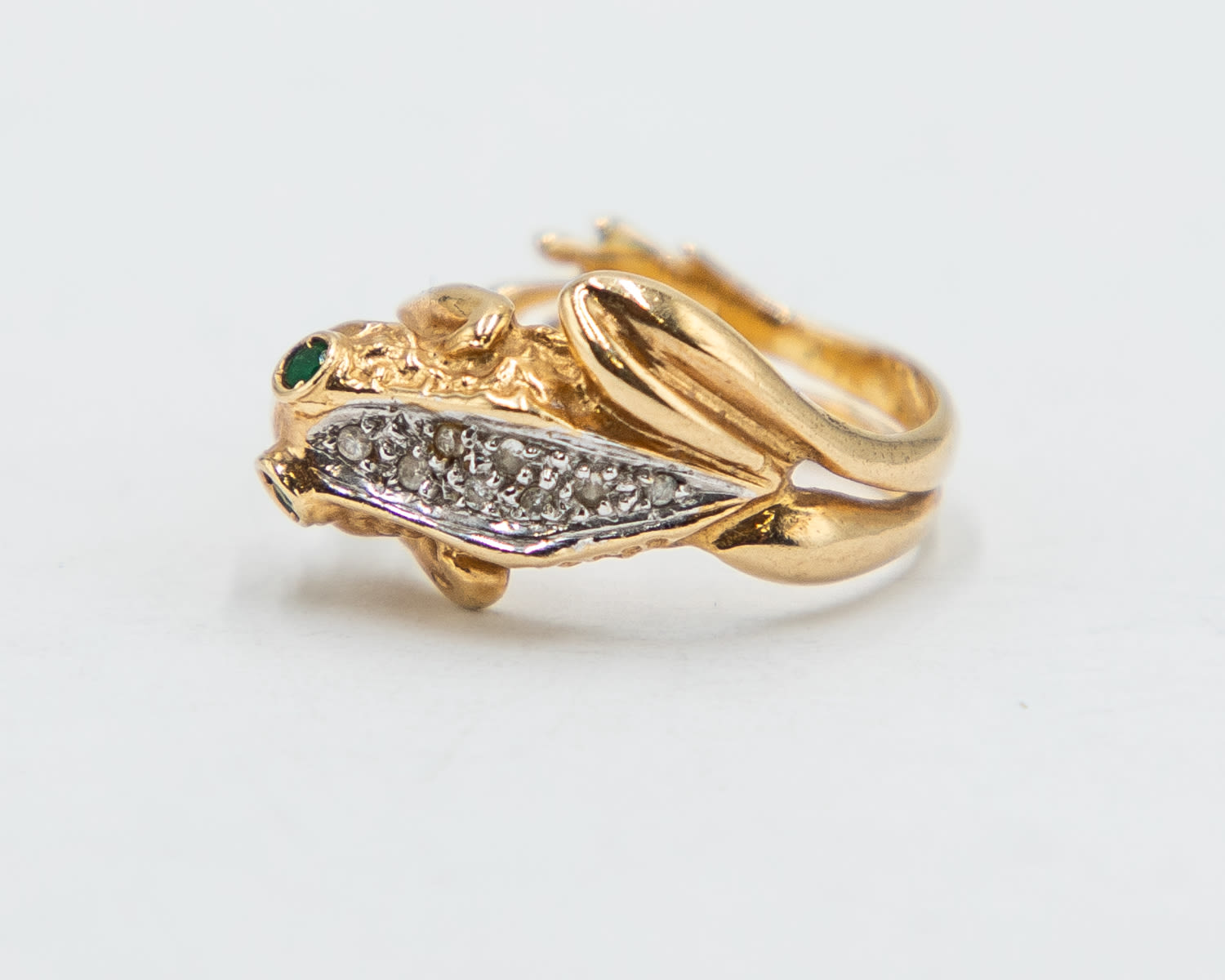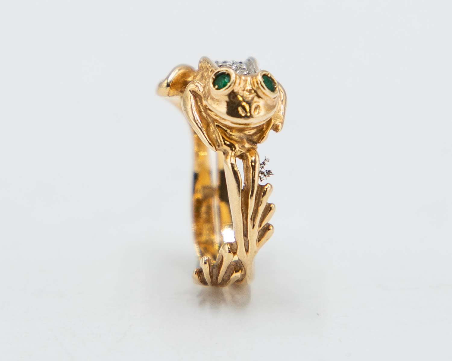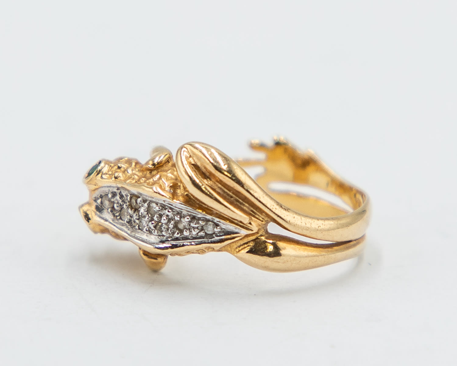 Diamond Chip 14k Gold Frog Cocktail Ring Sz. 7, 5.8g