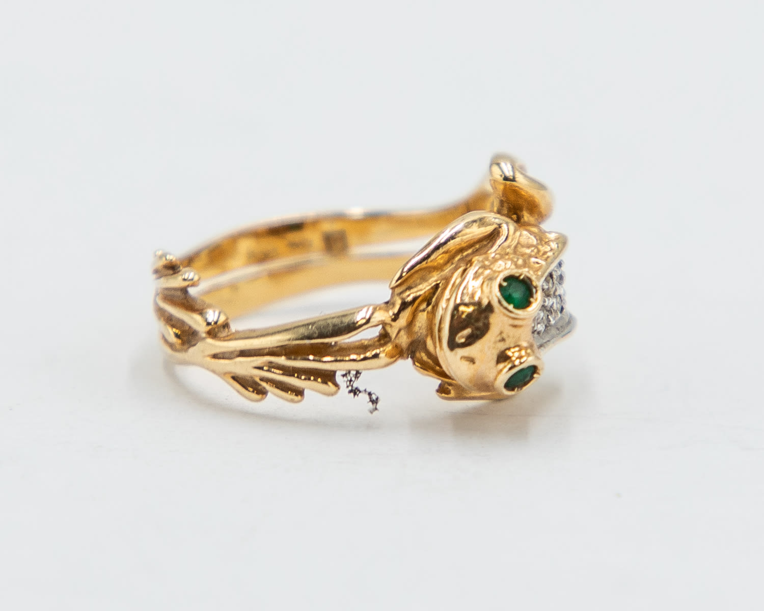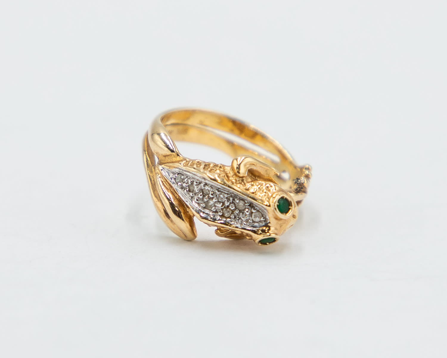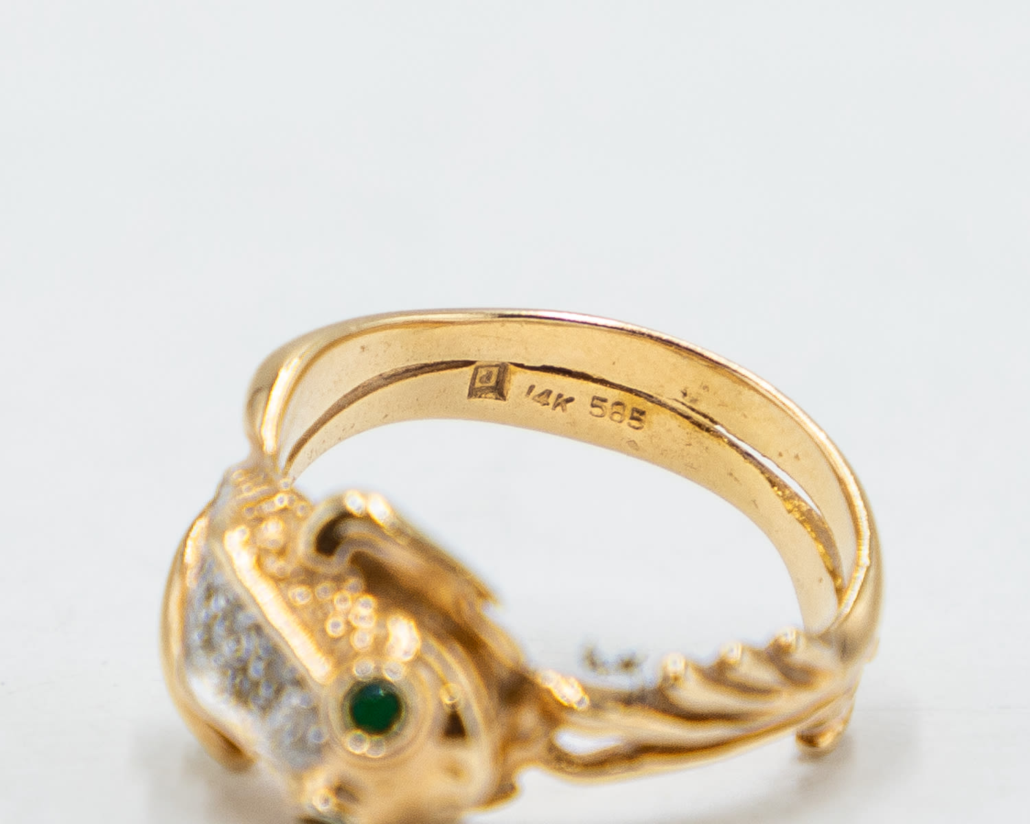Diamond Chip 14k Gold Frog Cocktail Ring Sz. 7, 5.8g