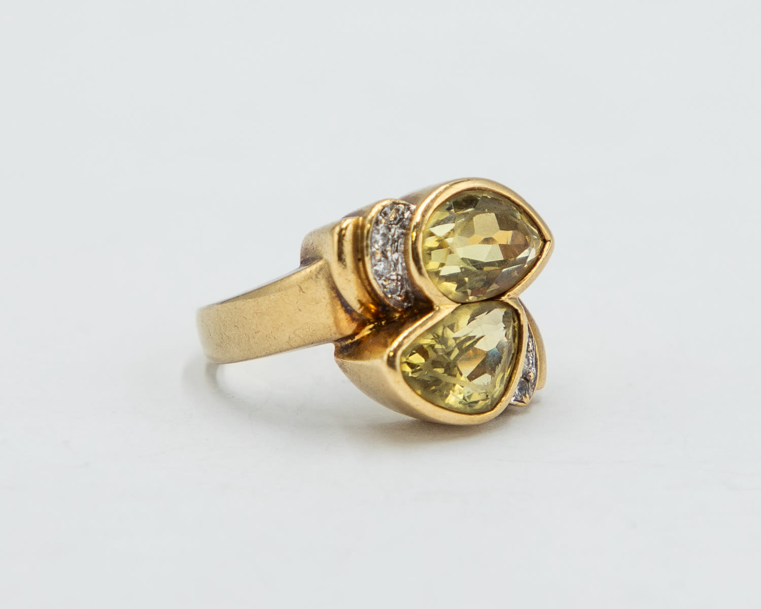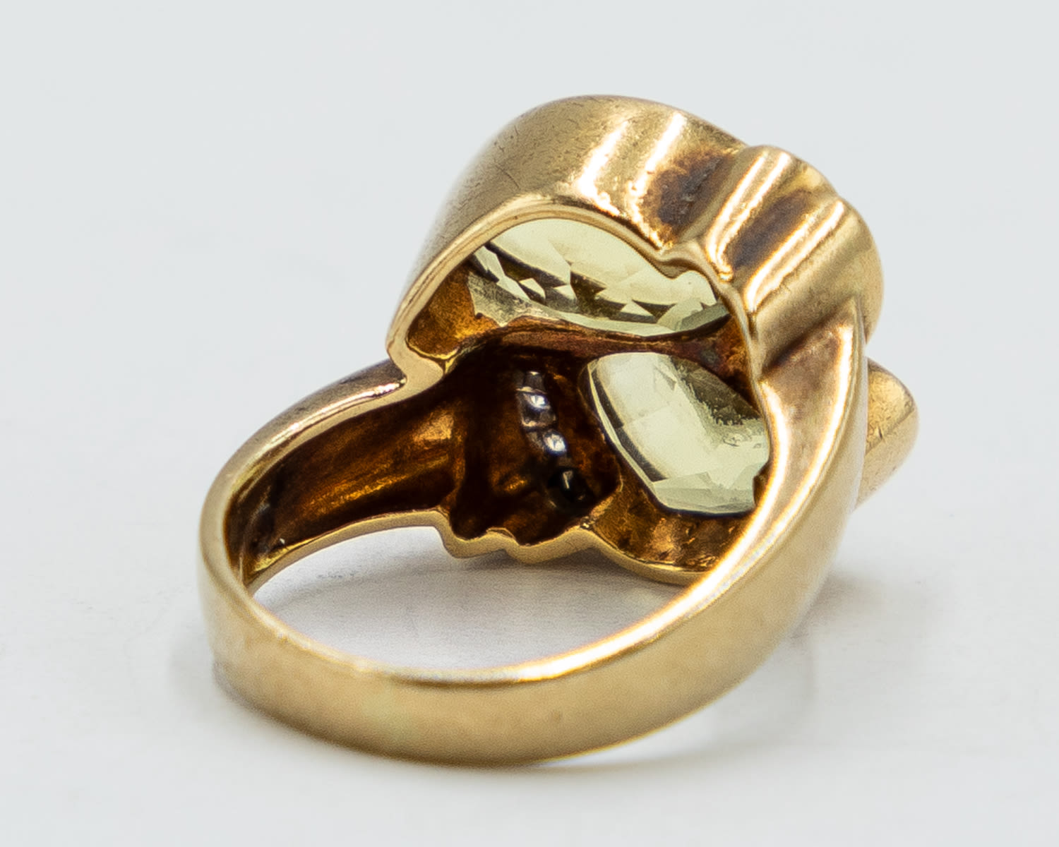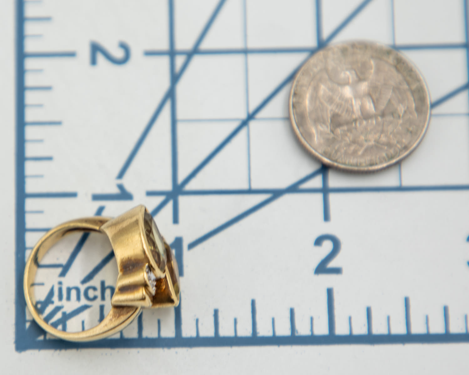 Citrine Diamond 18k Gold Cocktail Ring Sz. 7.25, 11.6g, 4 TCW Citrine