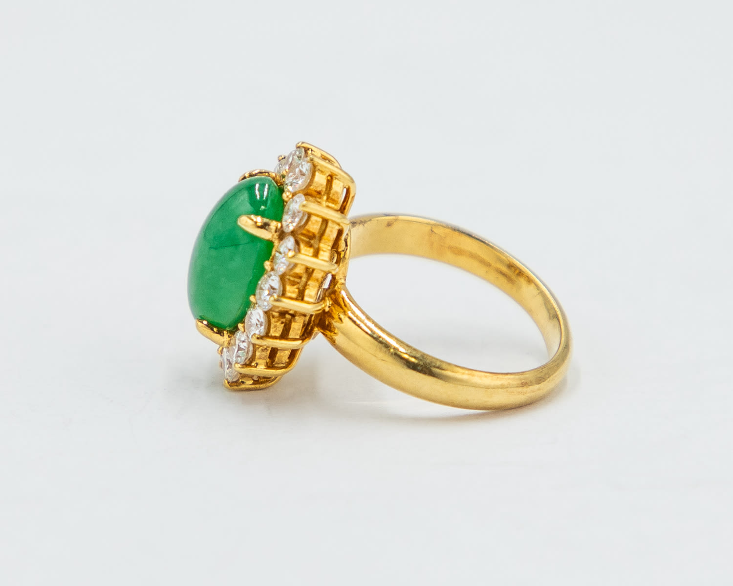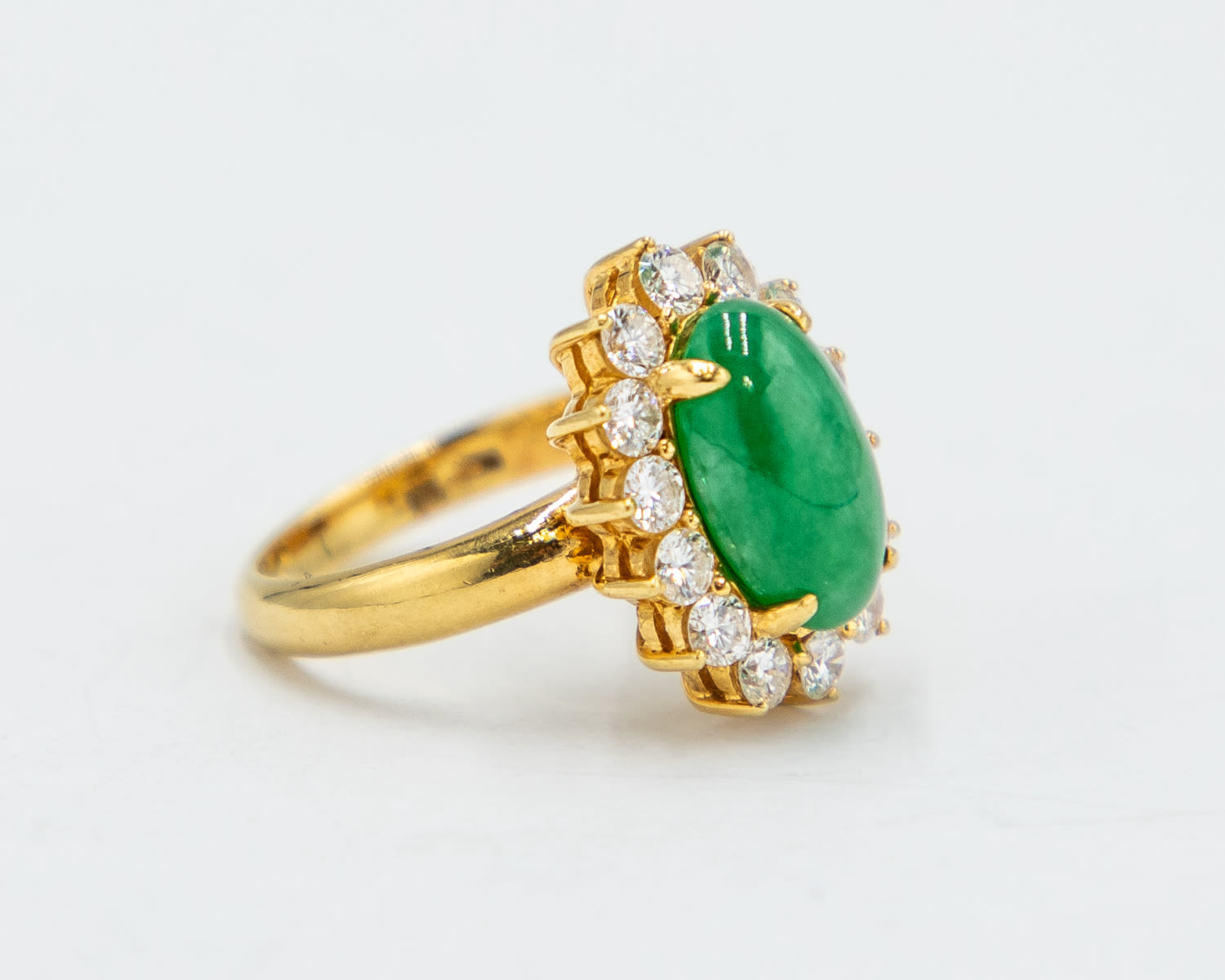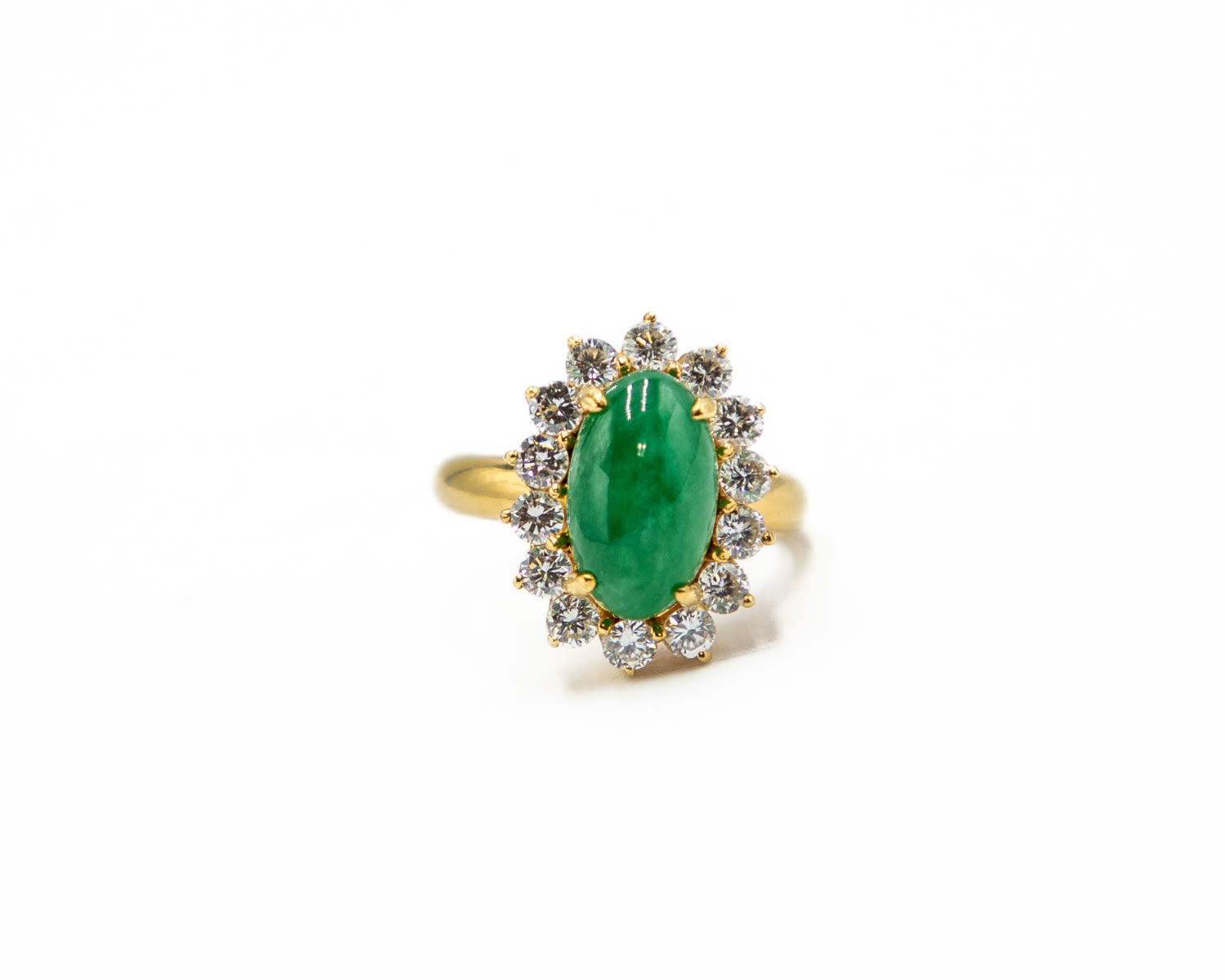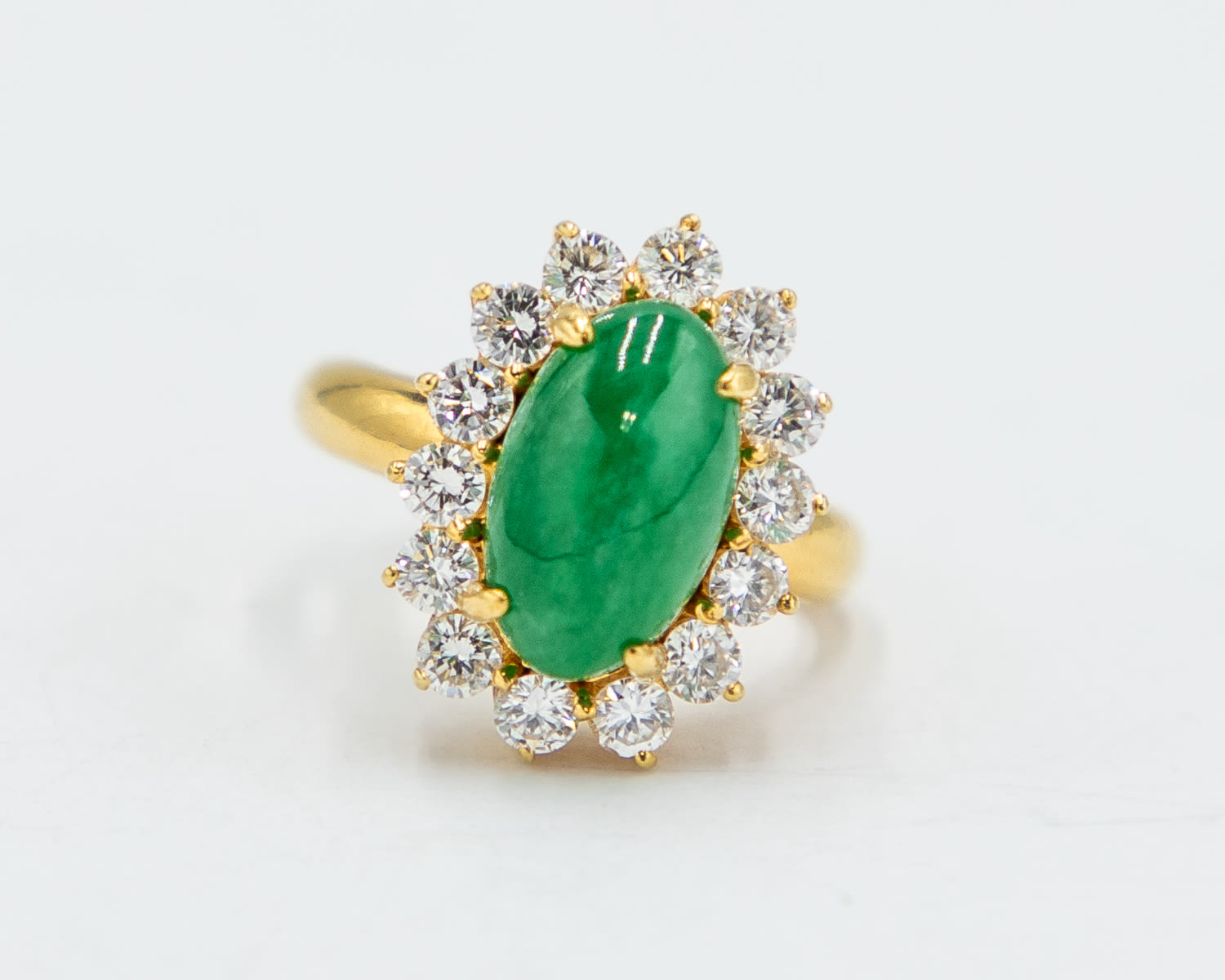 Diamond Jade 14k Gold Cocktail Ring Sz. 6, 9.1g, Approx 1.4 TCW Diamond