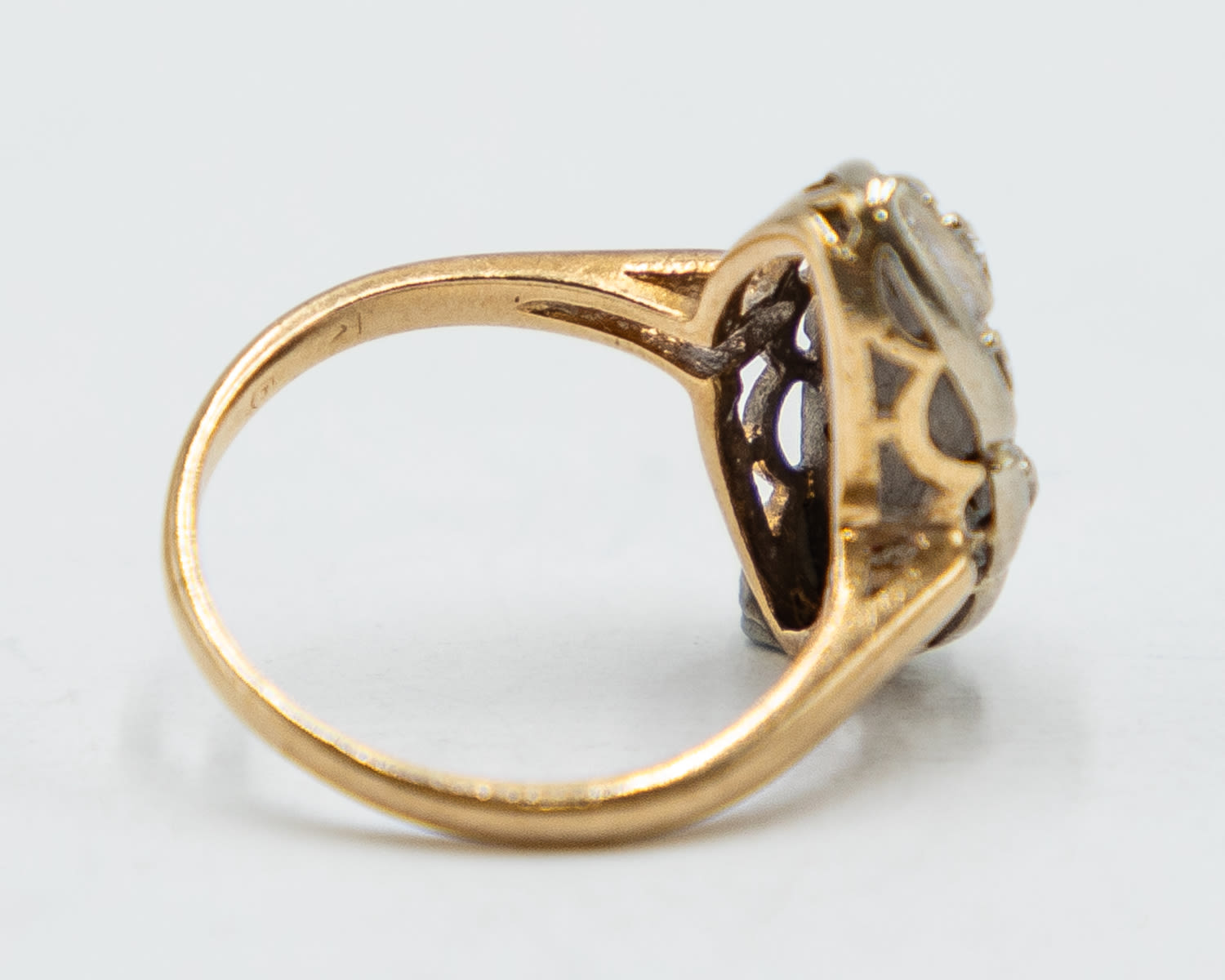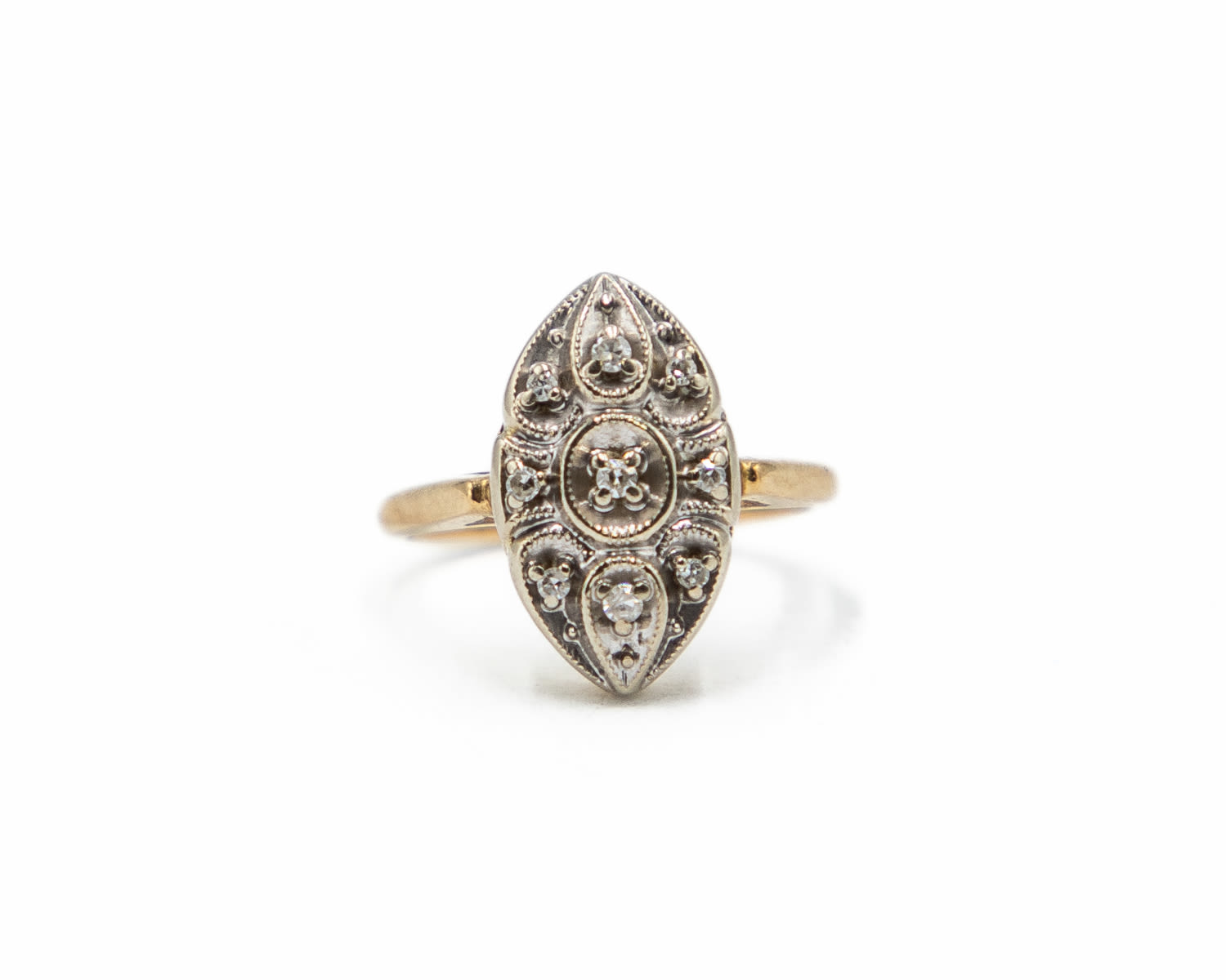 Signed J Diamond Chips 14k Gold Cocktail Ring Sz. 5.25, 4.2g