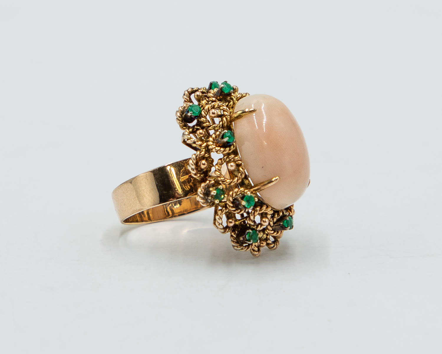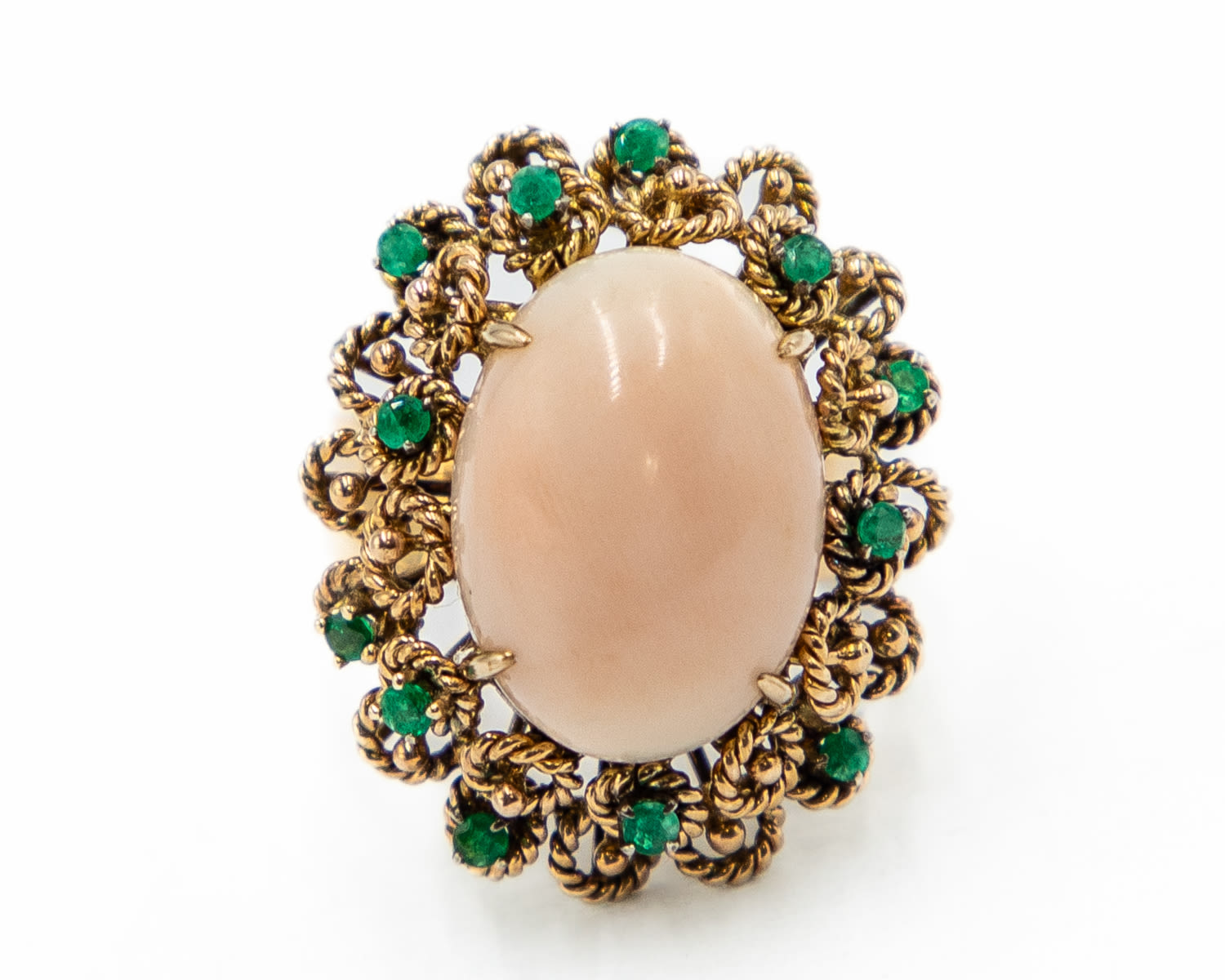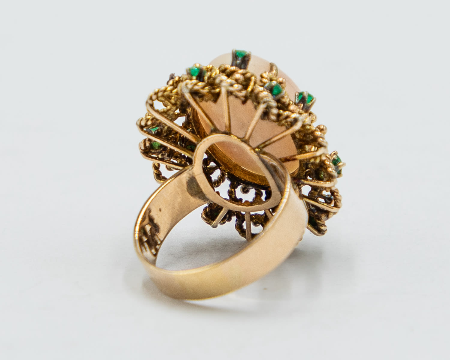 Vintage Coral Emerald 14k Gold Raised Cocktail Ring Sz. 7.5