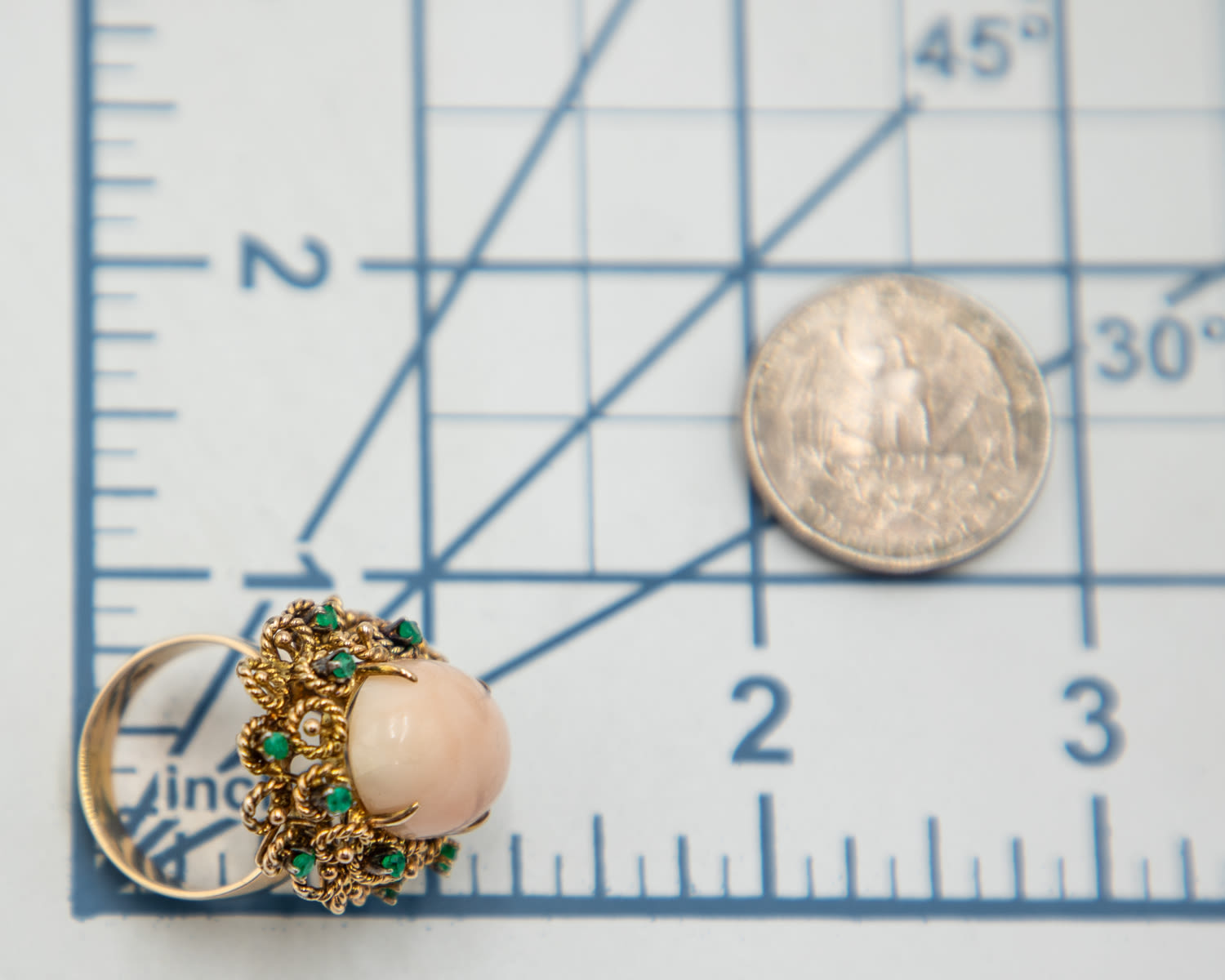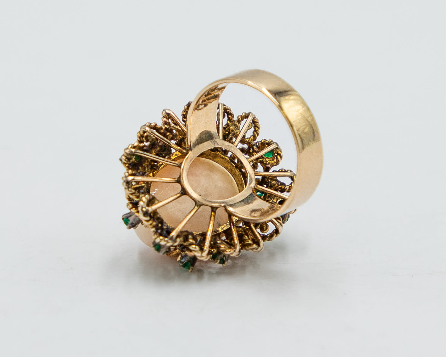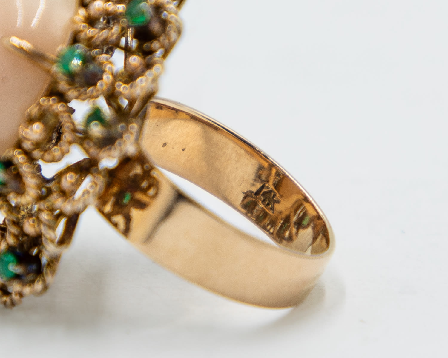 Vintage Coral Emerald 14k Gold Raised Cocktail Ring Sz. 7.5