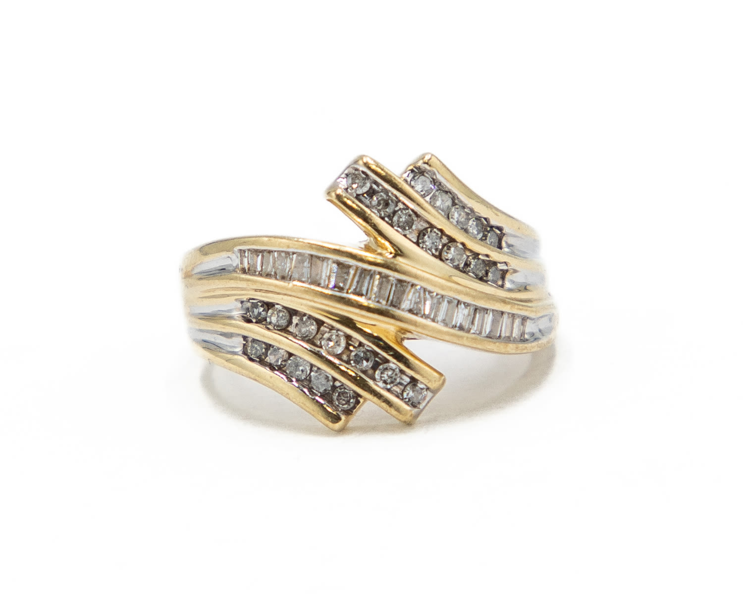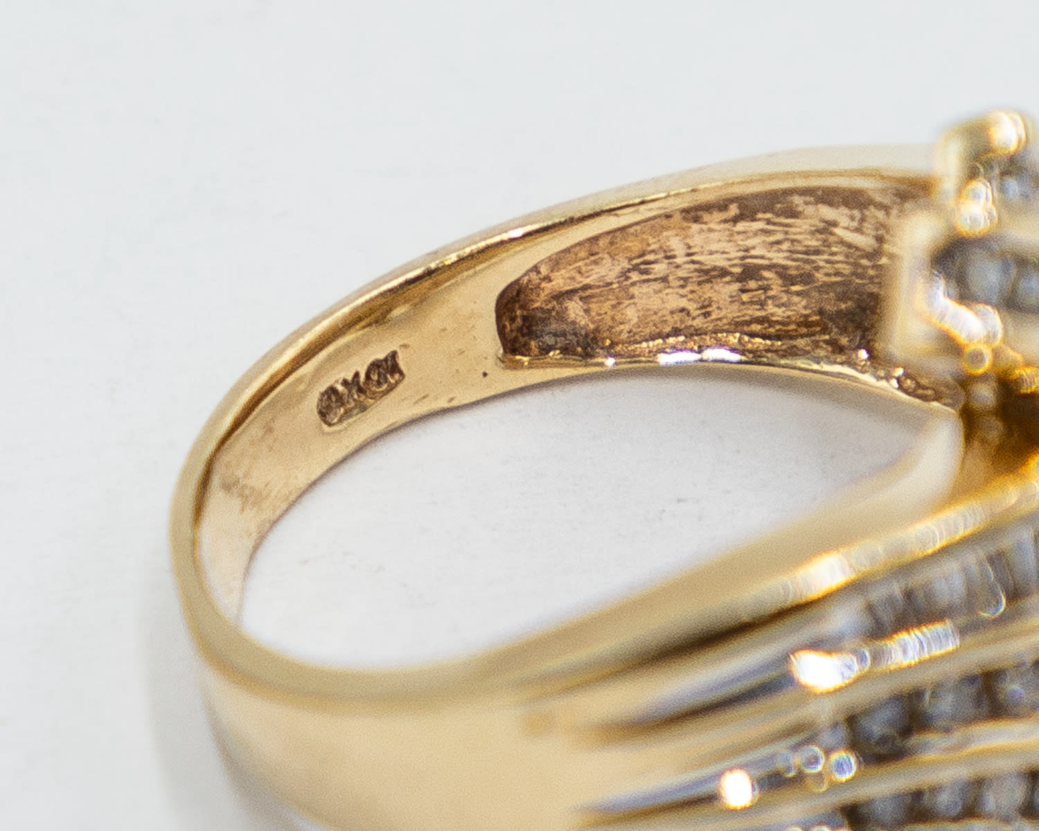 White Sapphire 10k Gold Cocktail Ring Sz. 7, 5.3g