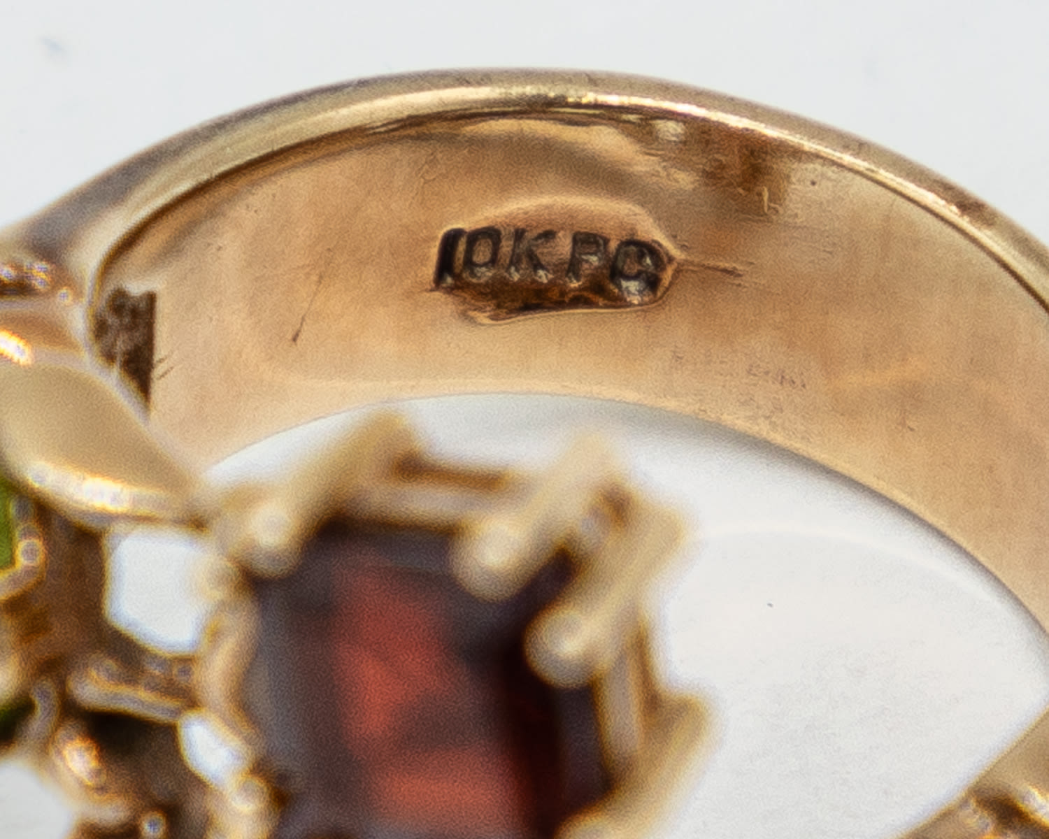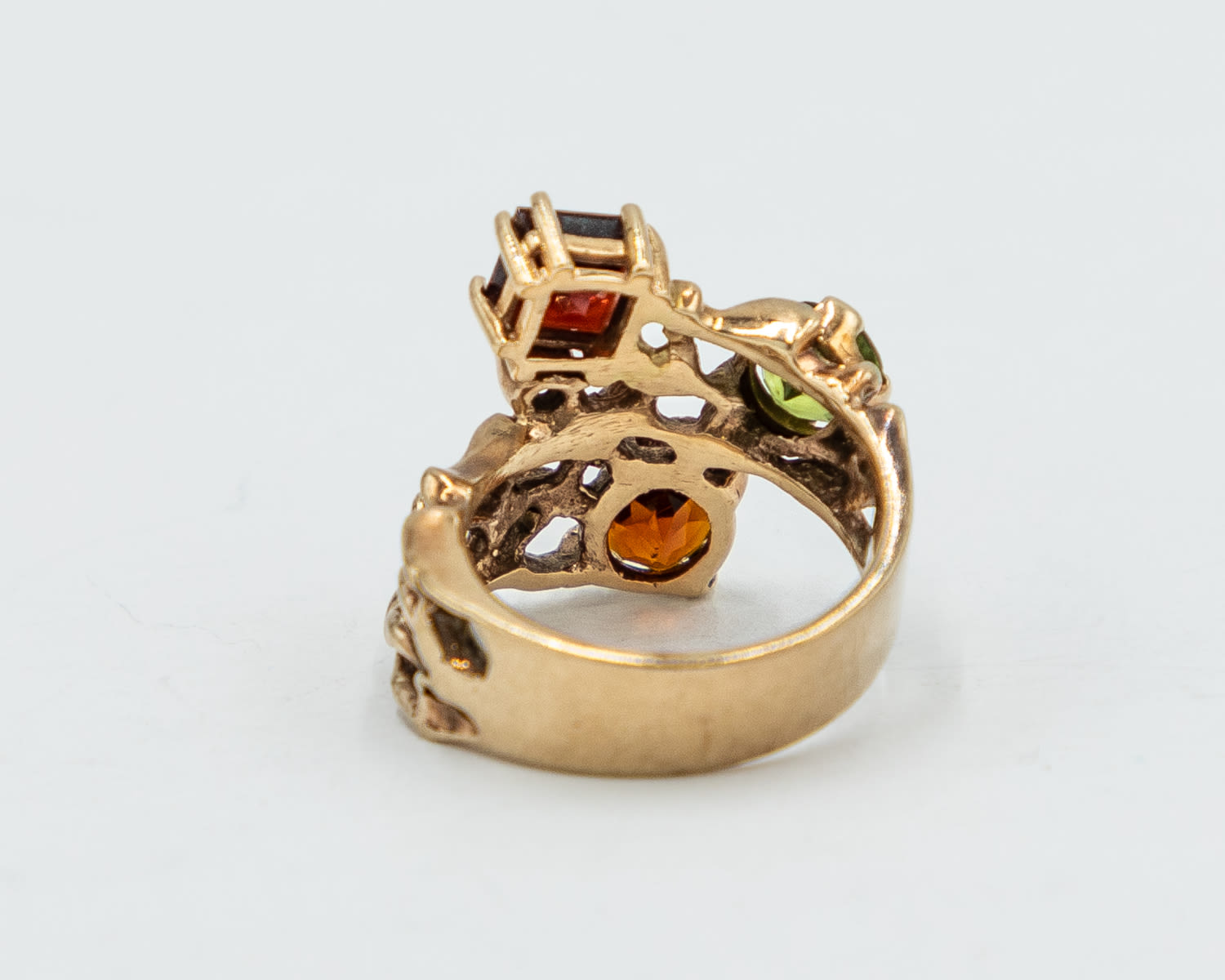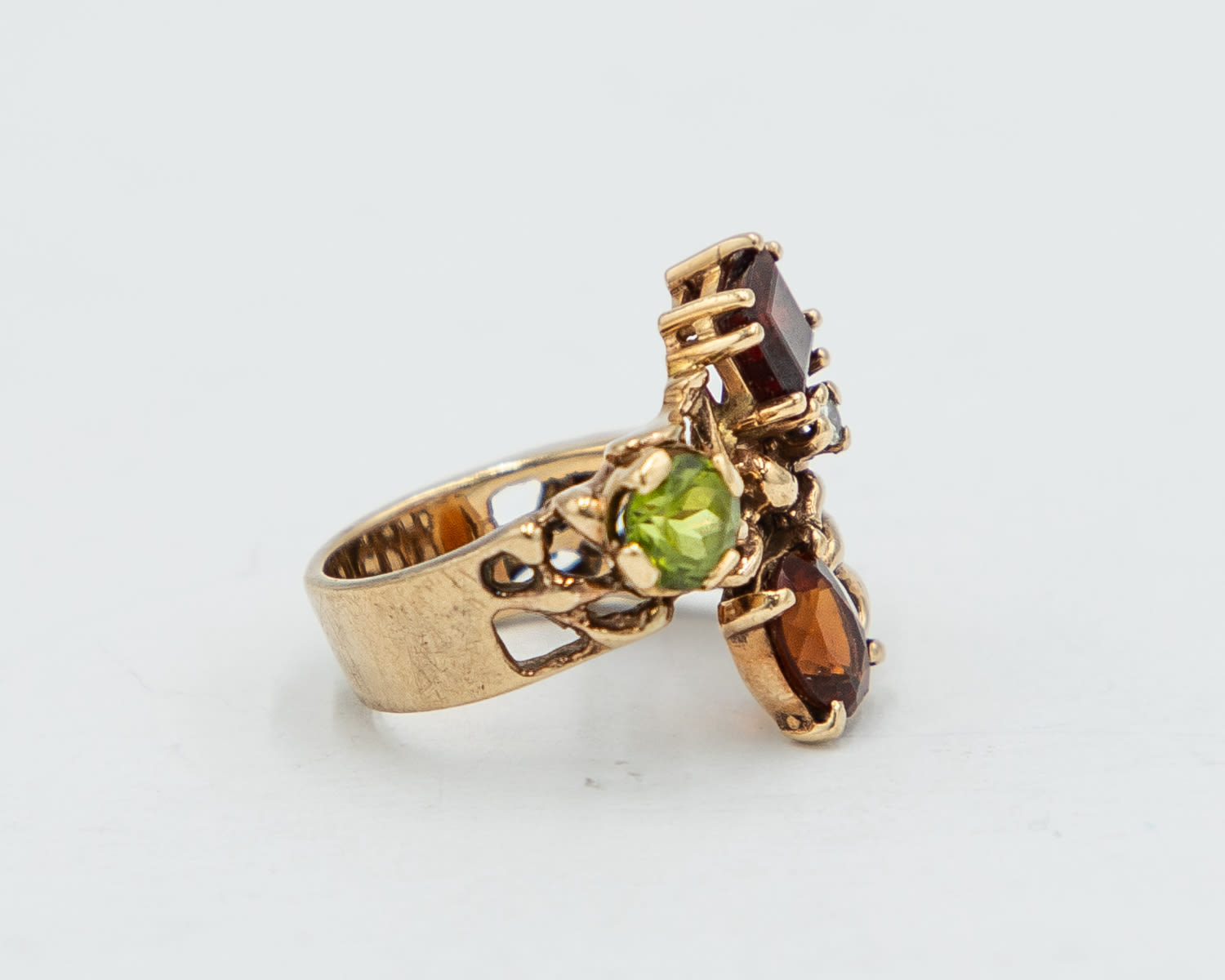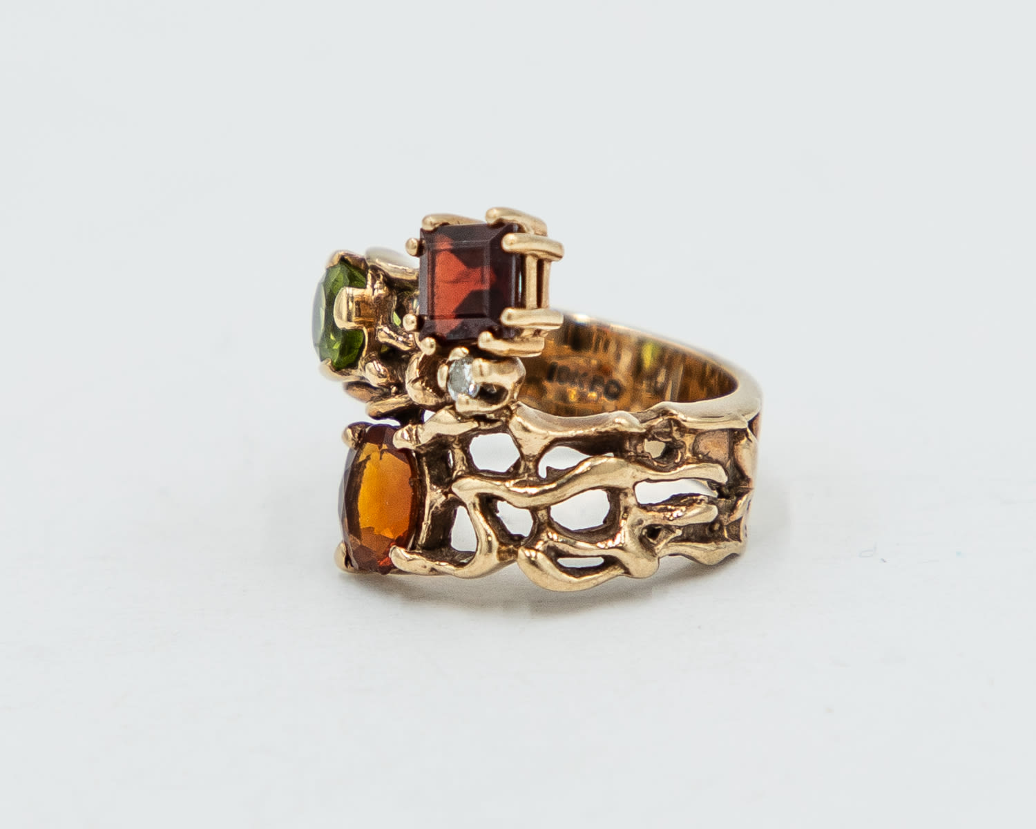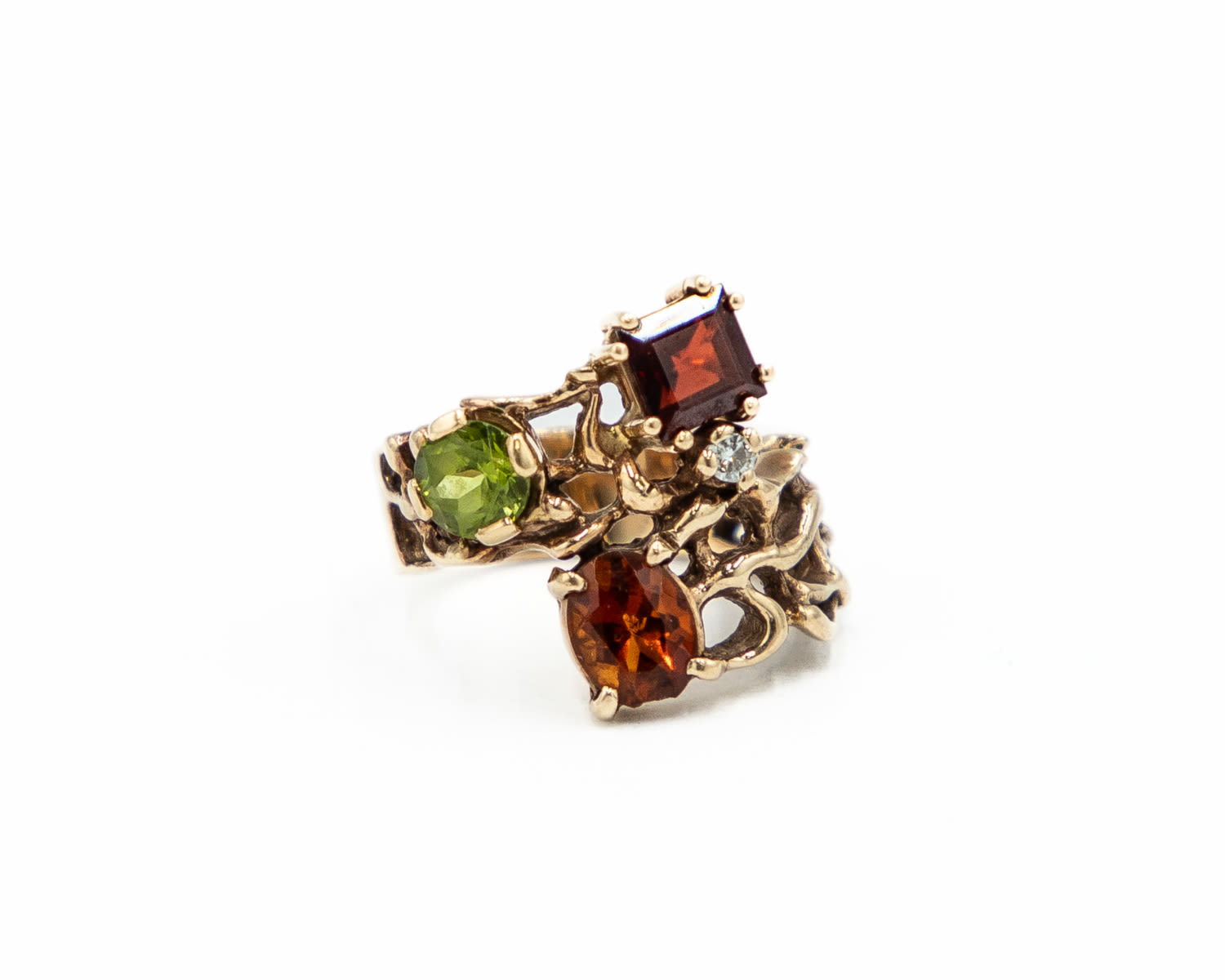 Signed PO Almandine Peridot Hessonite White Sapphire 10k Gold Cocktail Ring Sz. 6.5, 8.8g, As is- oval hessonite is slightly chipped and rough around the edge, as shown in photo. Please bid accordingly.