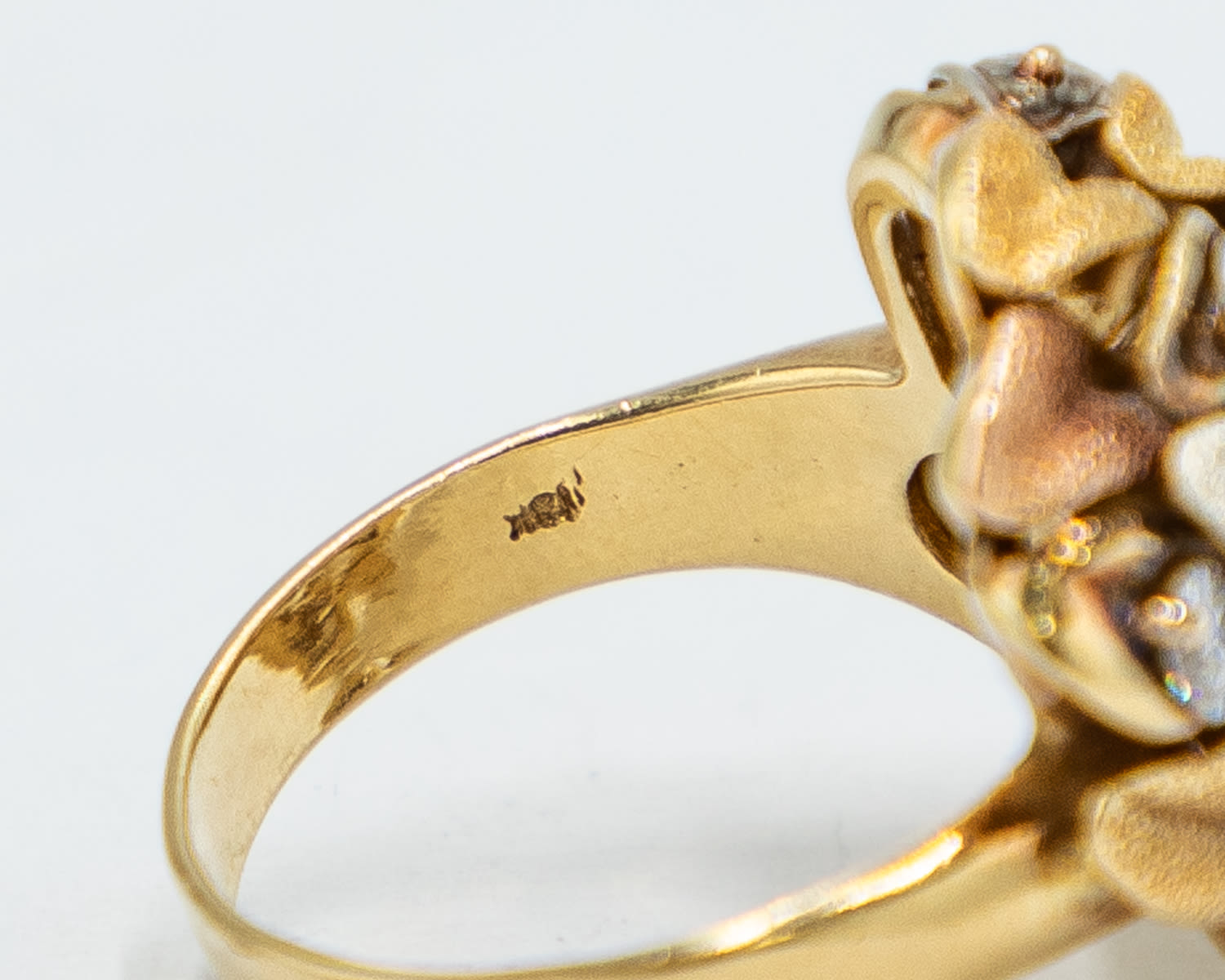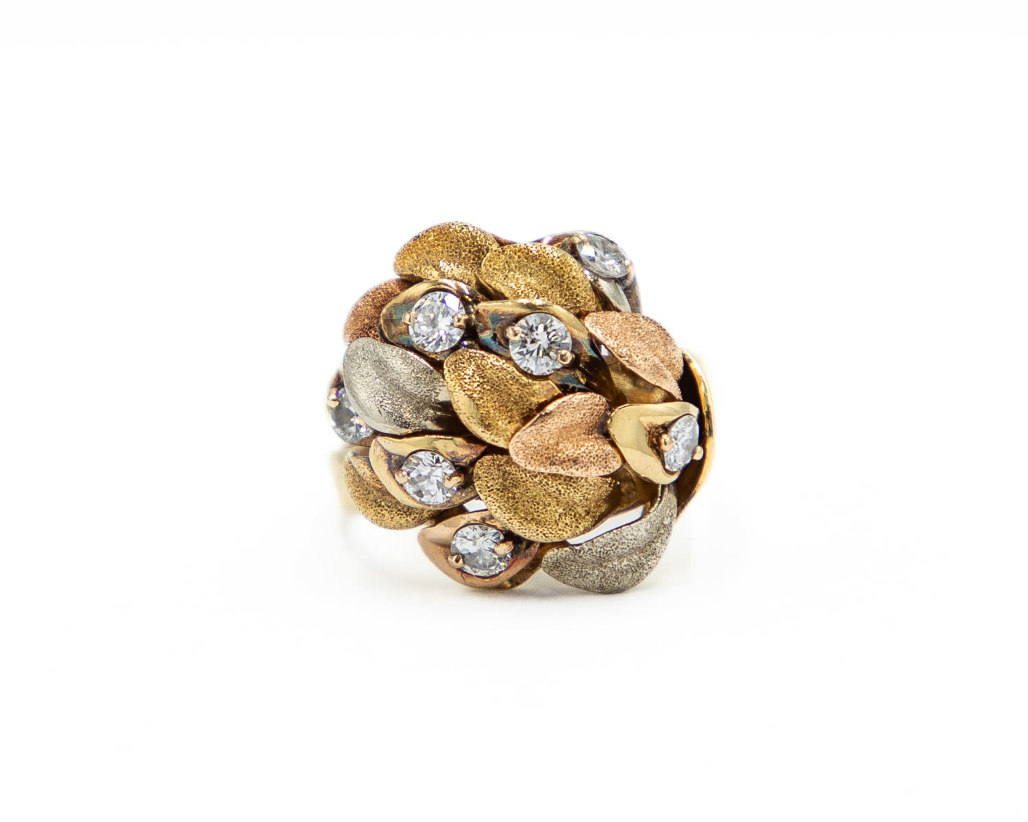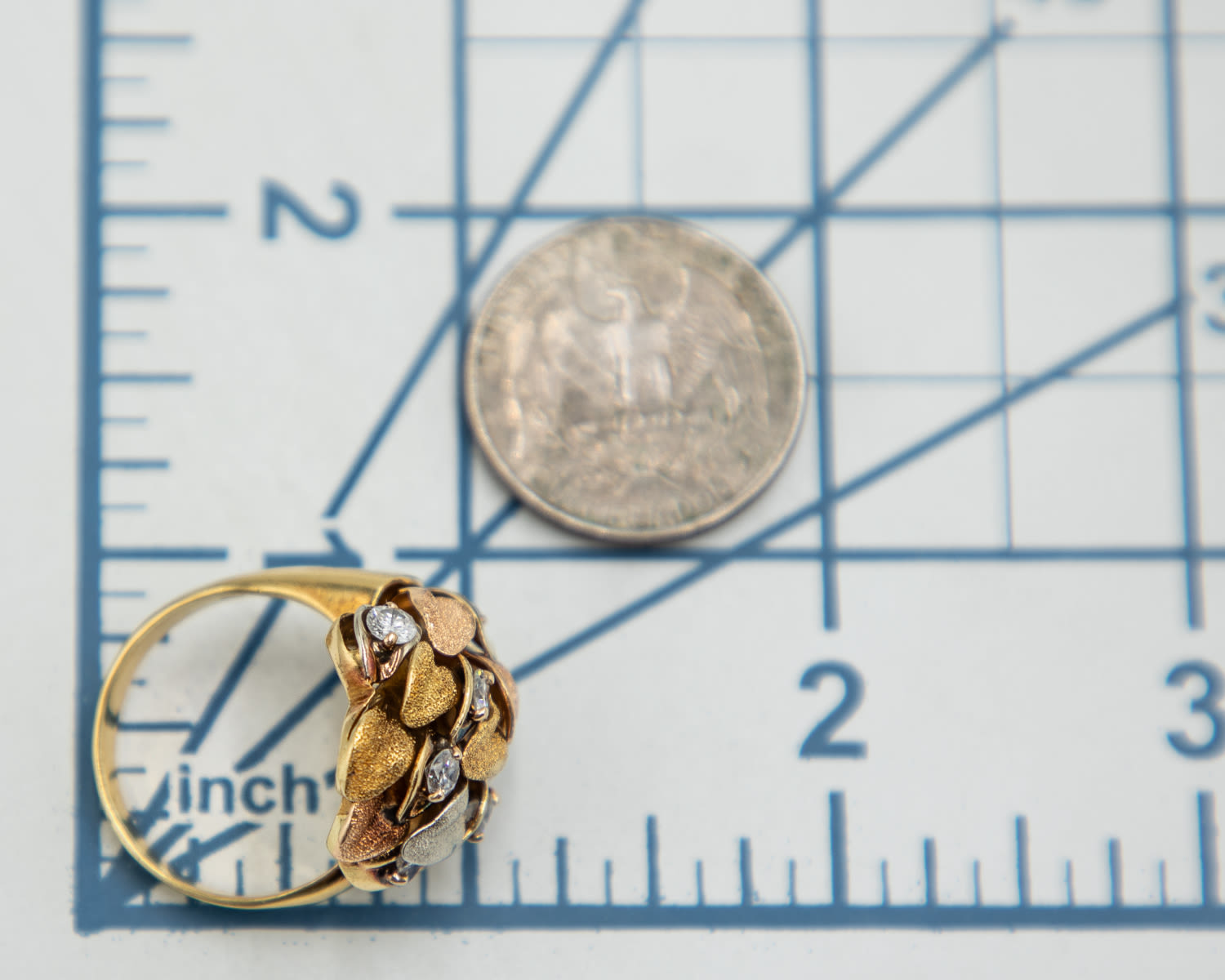 White Sapphire 18k Gold Textured Leaf Dome Cocktail Ring Sz. 10.25