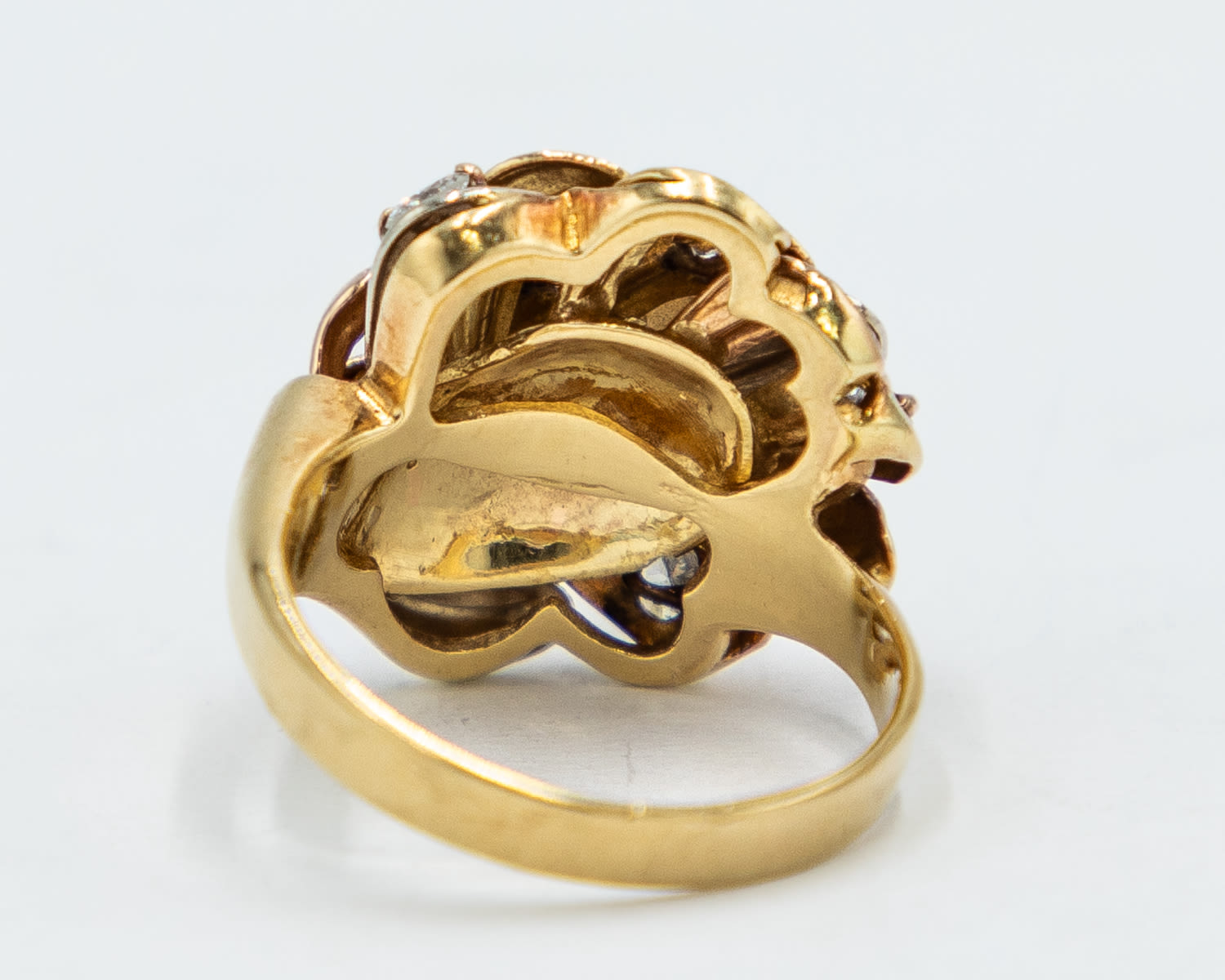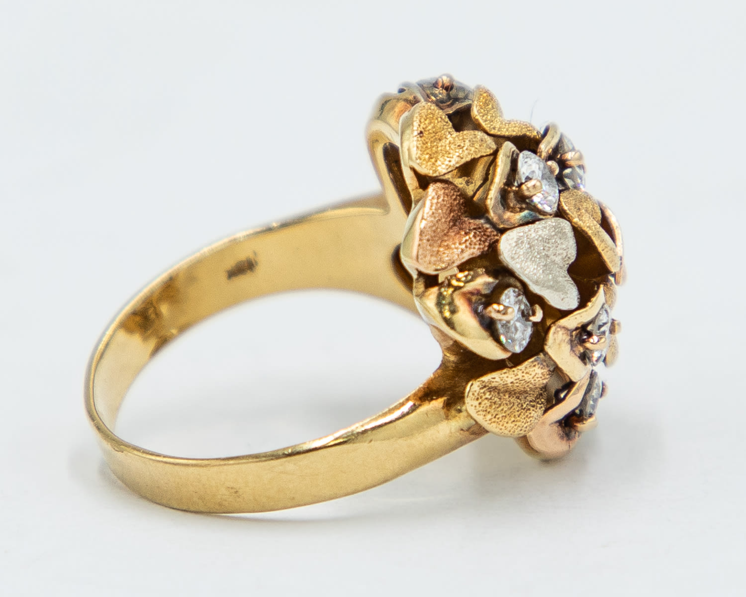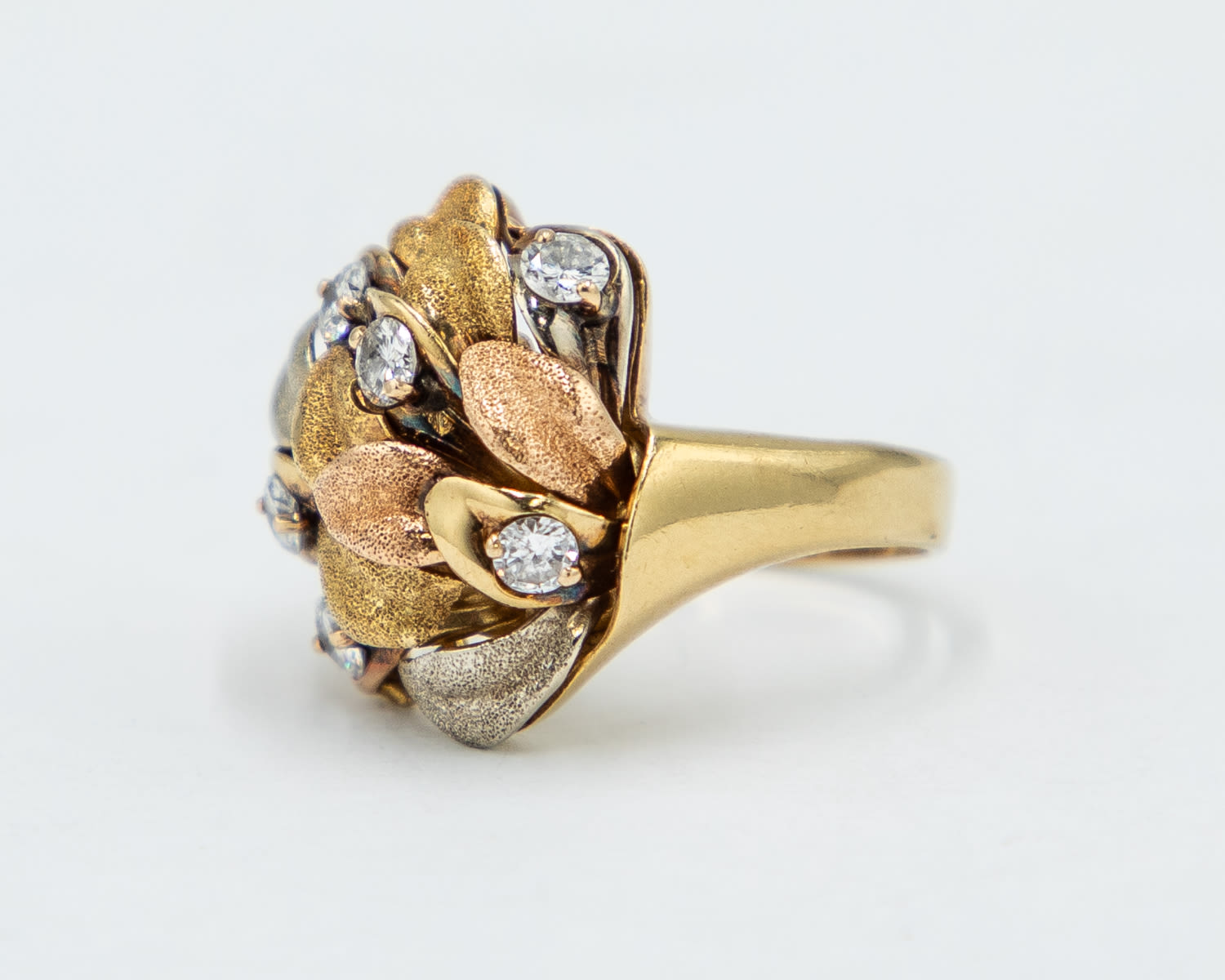 White Sapphire 18k Gold Textured Leaf Dome Cocktail Ring Sz. 10.25