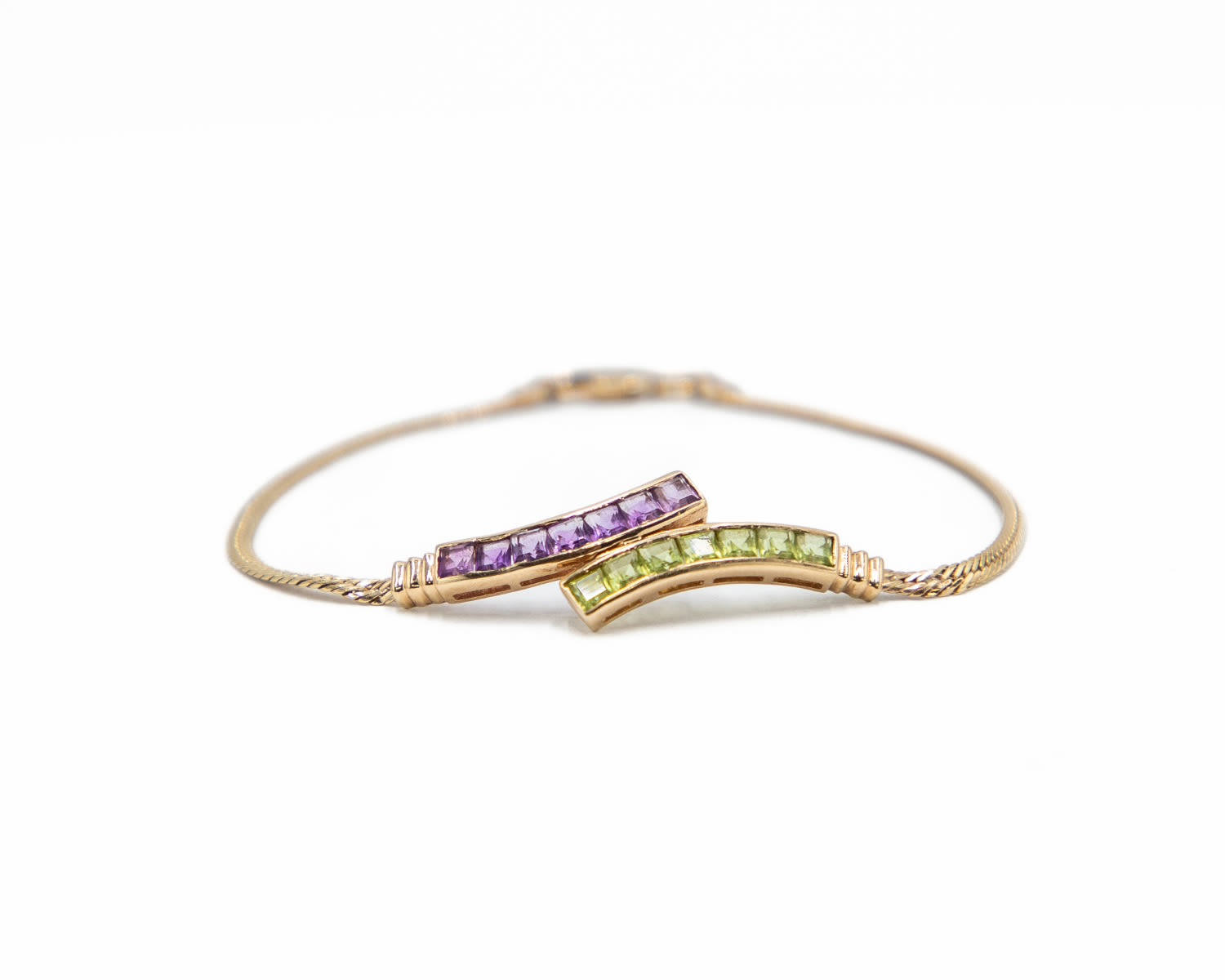 Amethyst Peridot 14k Gold Bracelet 5.1g