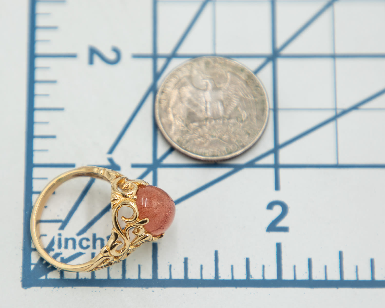 Strawberry Quartz 14k Gold Cocktail Ring Sz. 9.25, 6.9g