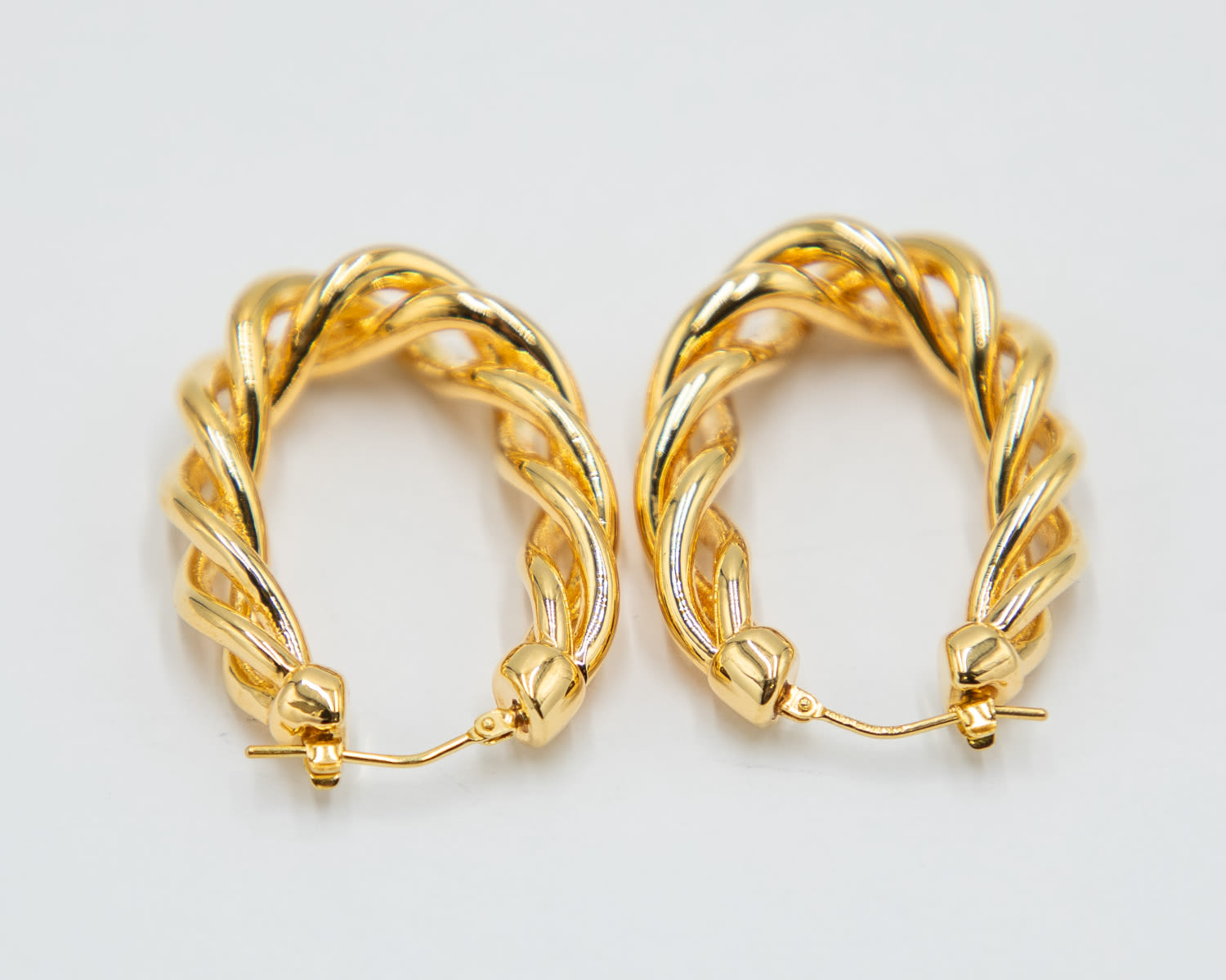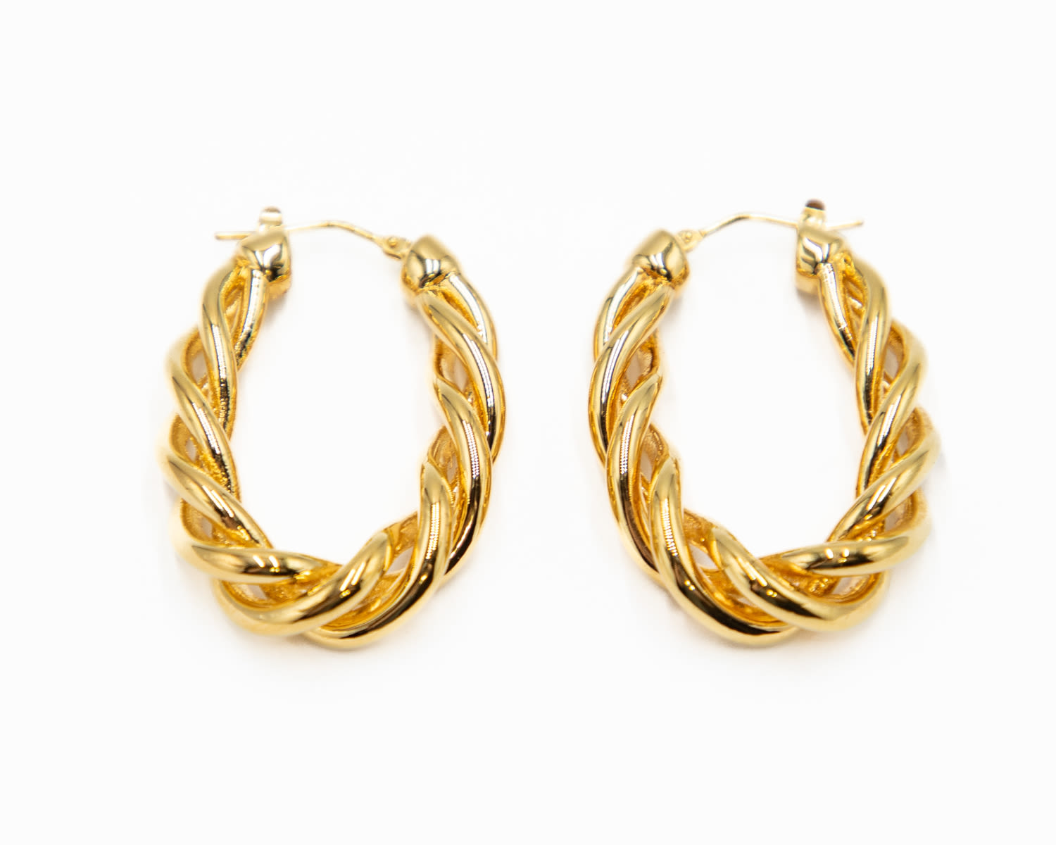 Italy OR 14k Gold Twist Hoop Earrings 8.7g