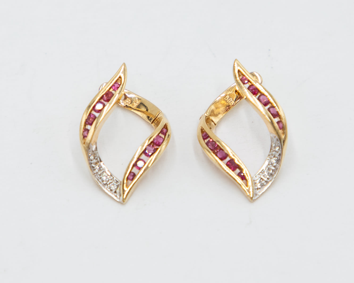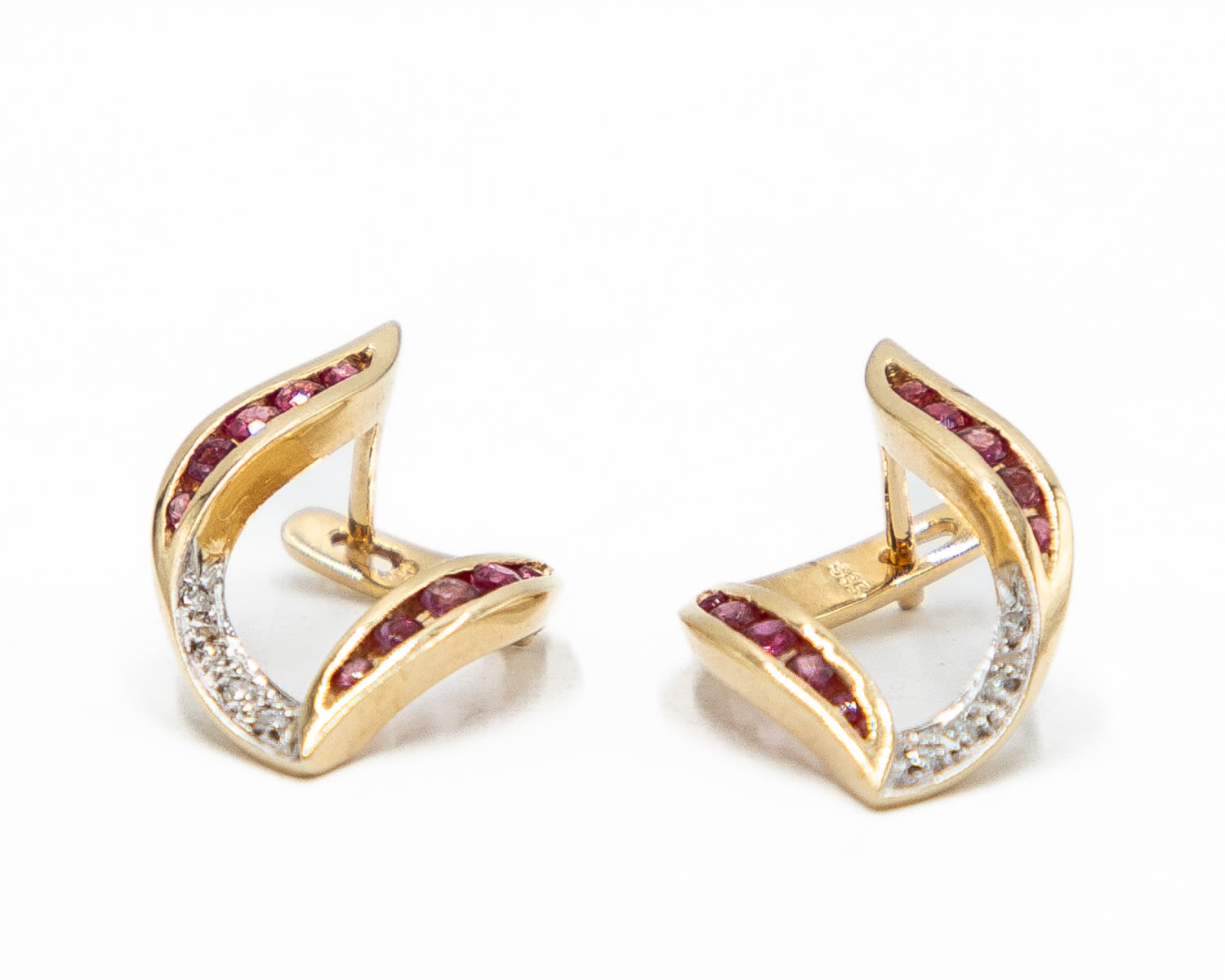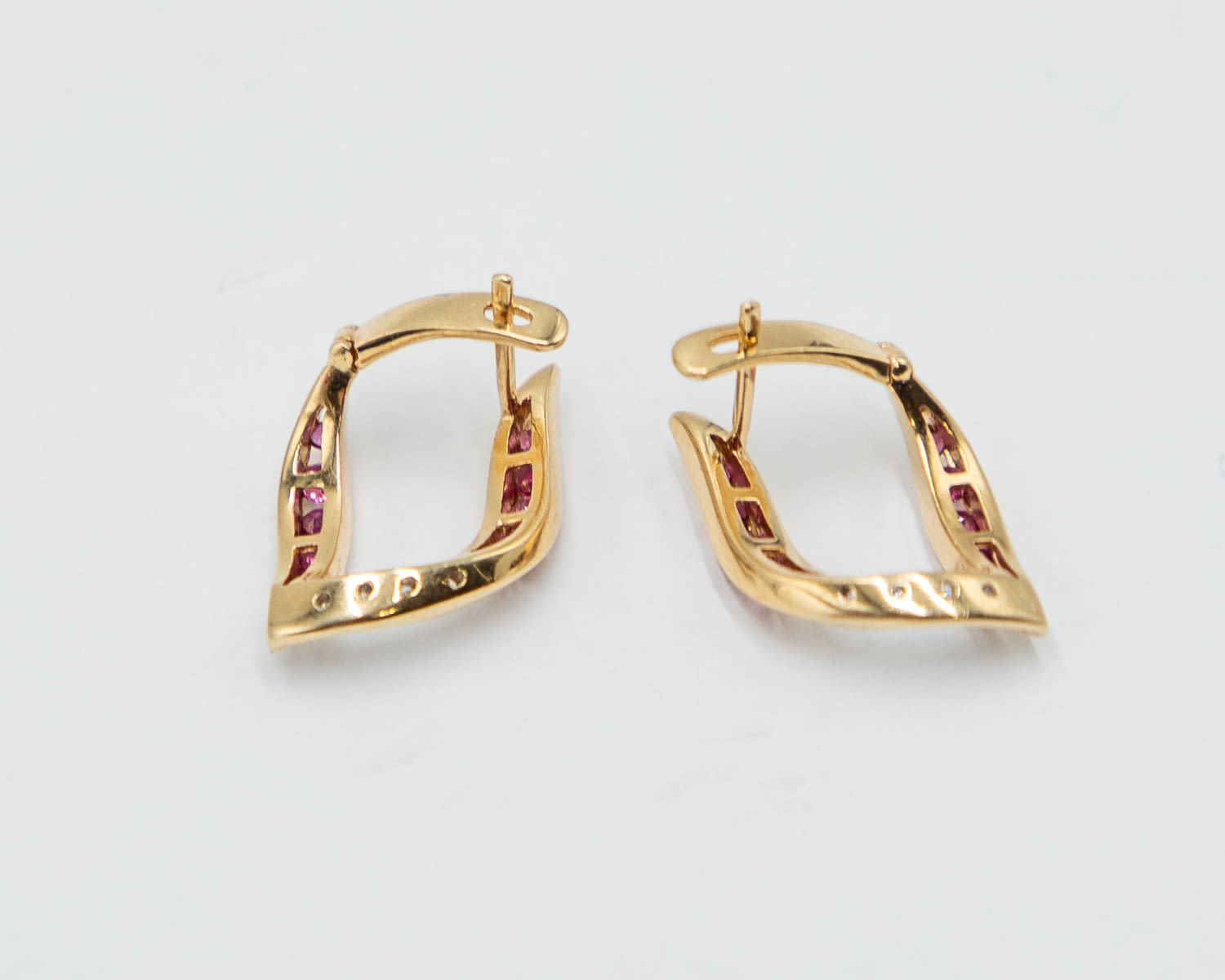 Diamond Chip Ruby 14k Gold Earrings 5.1g