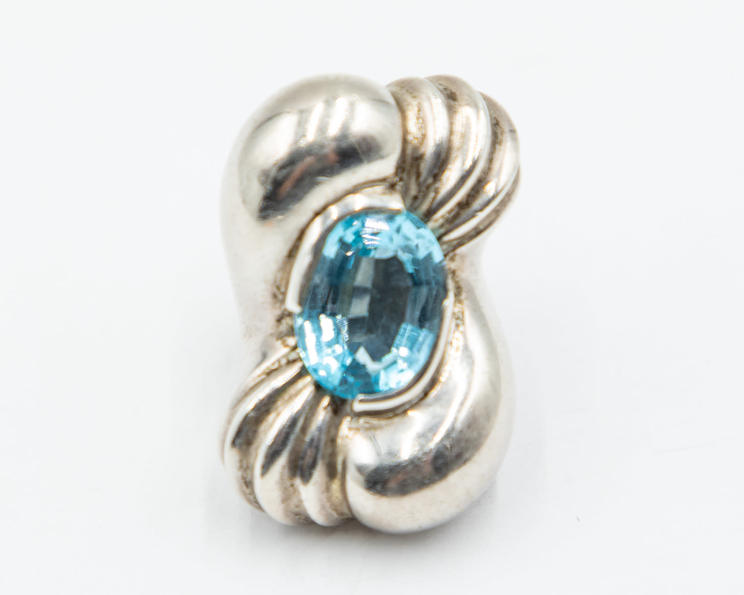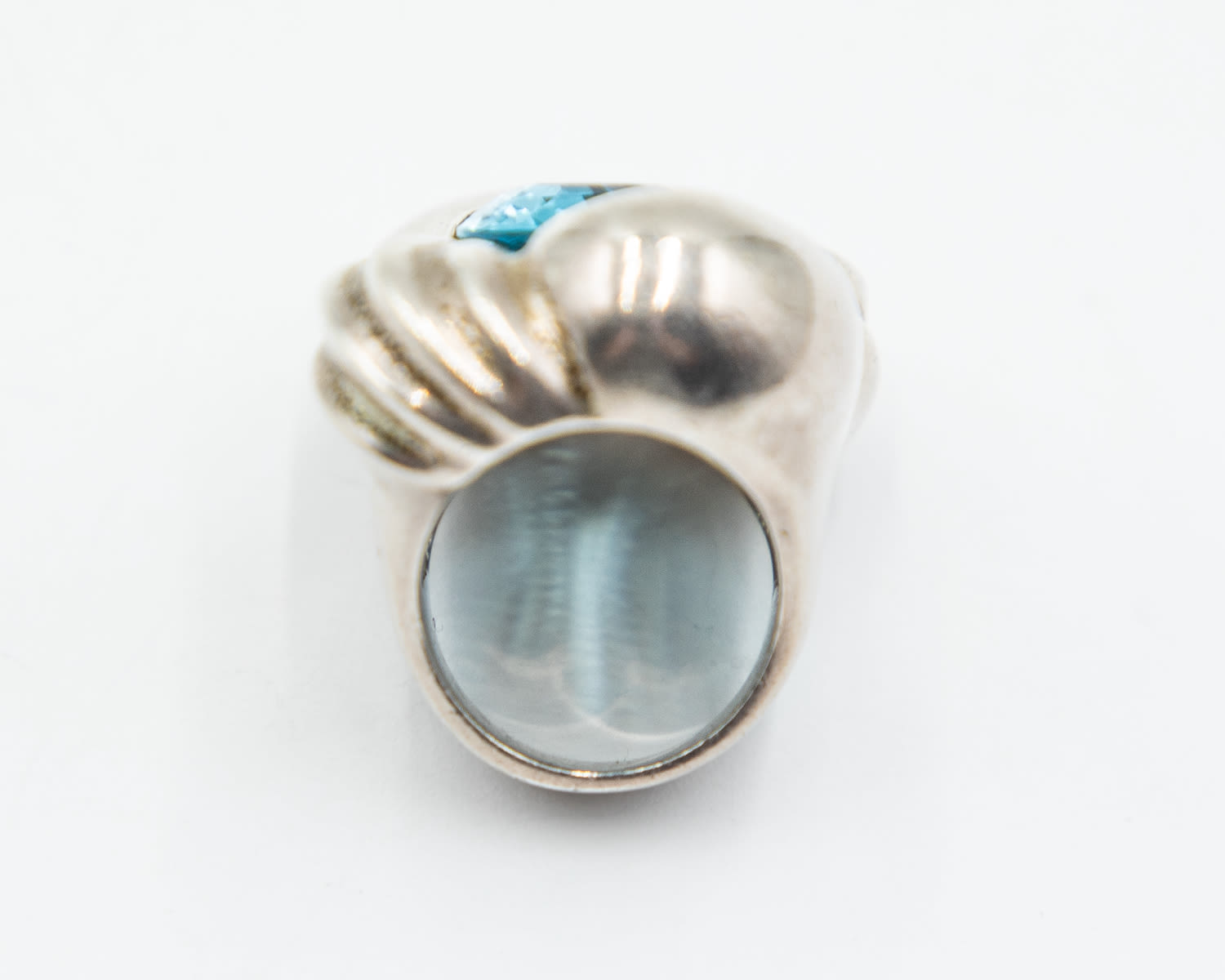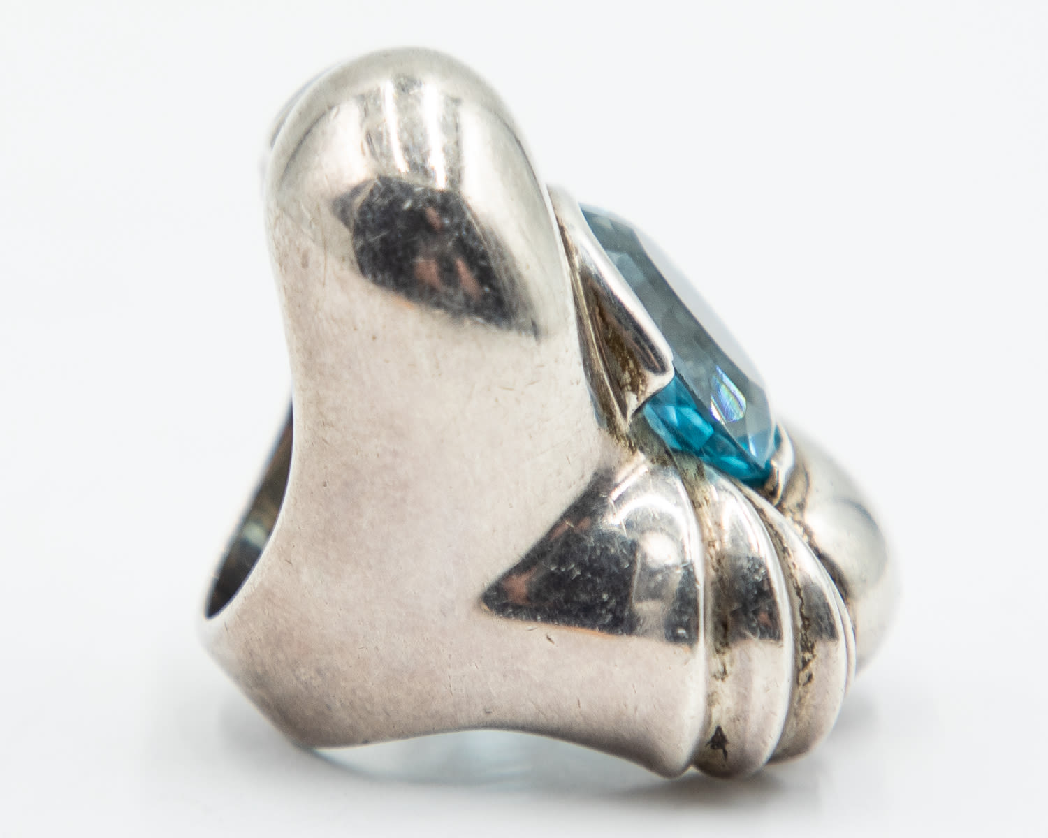 Holman Sterling Silver Ring W/ Blue Topaz Rhinestone Sz. 6, 25.4g