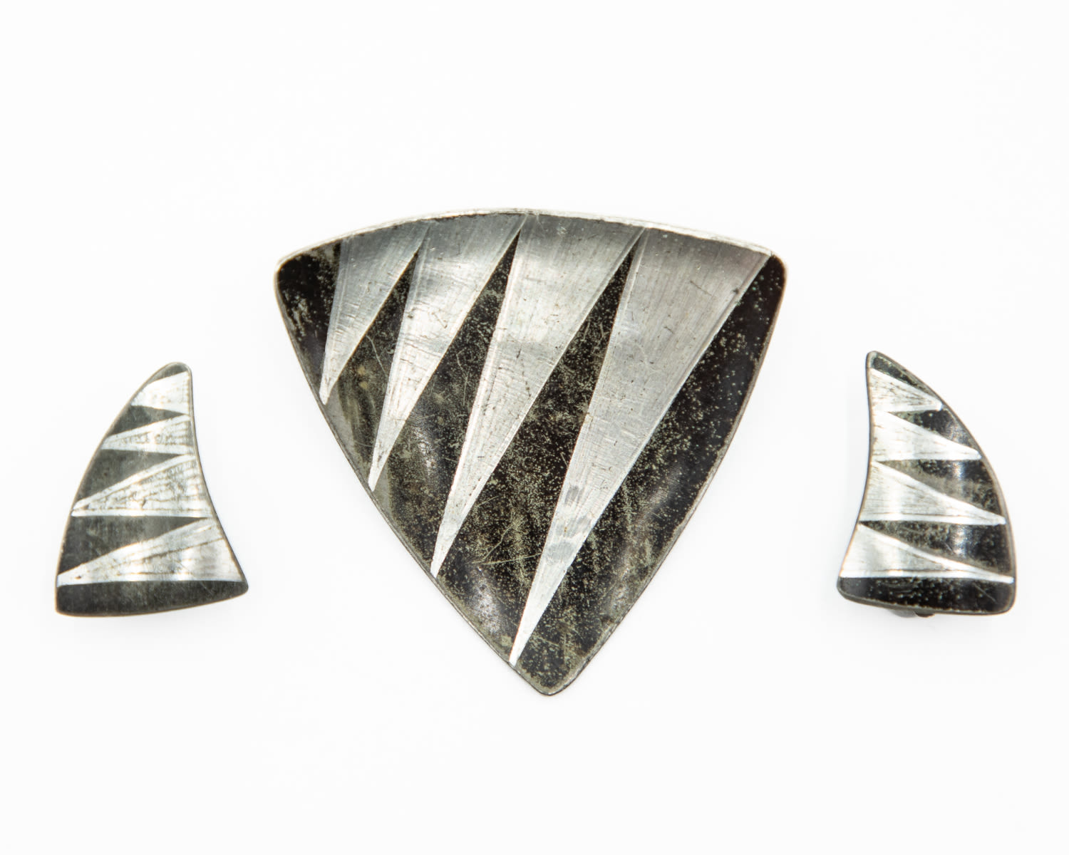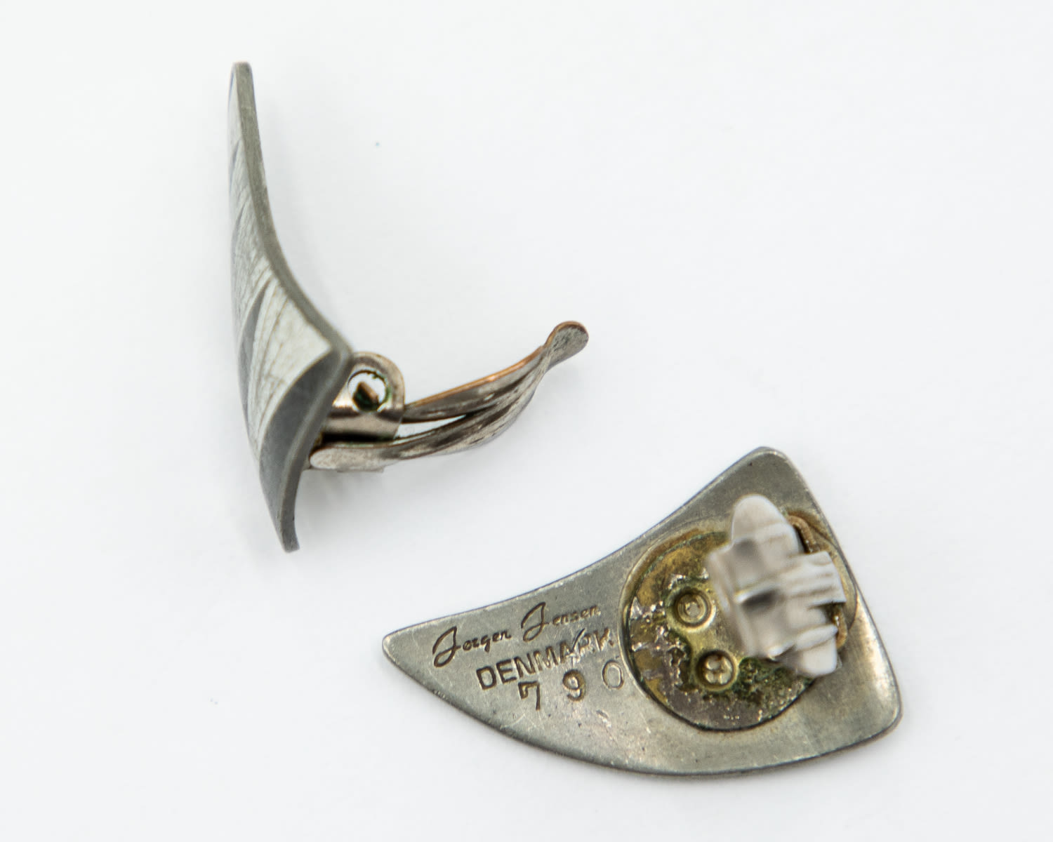 Vintage Jorgen Jensen Denmark Pewter Brooch Pin & Clip on Earring Set, 790 Stamp