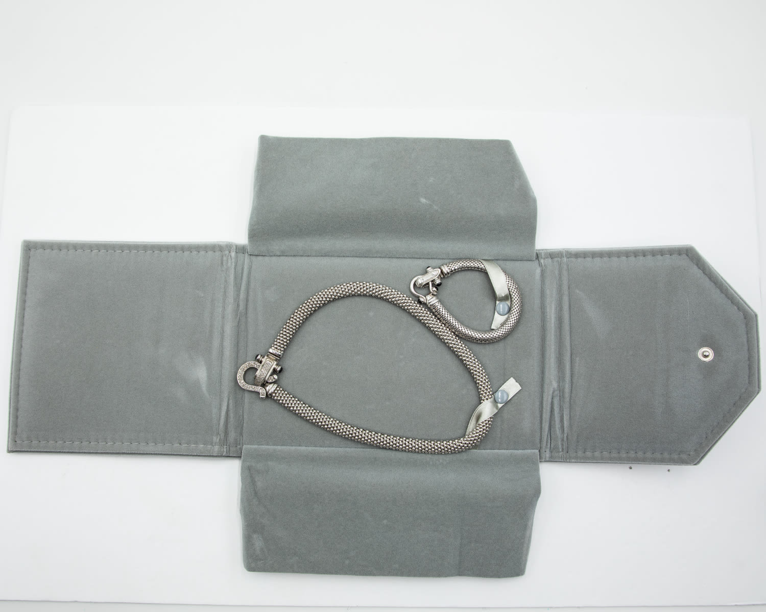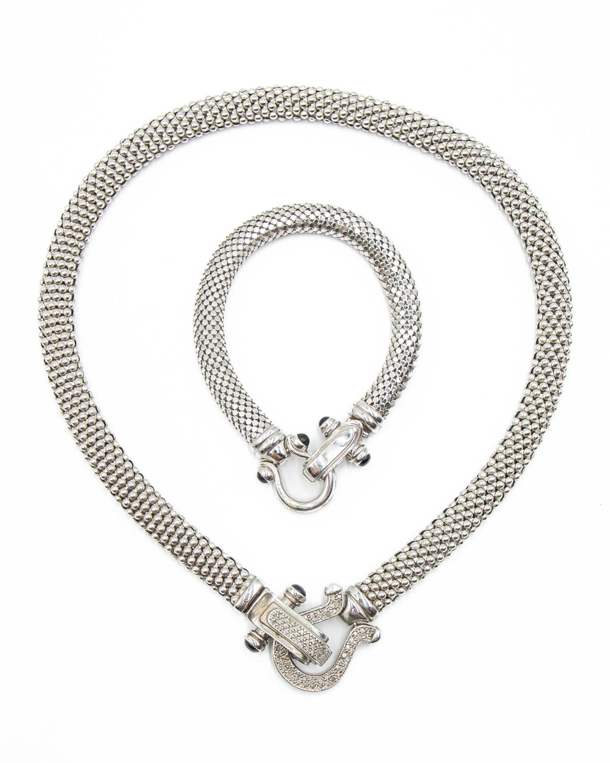 NIB Diamond 925 Horseshoe Mesh Necklace Bracelet Set 66.1g