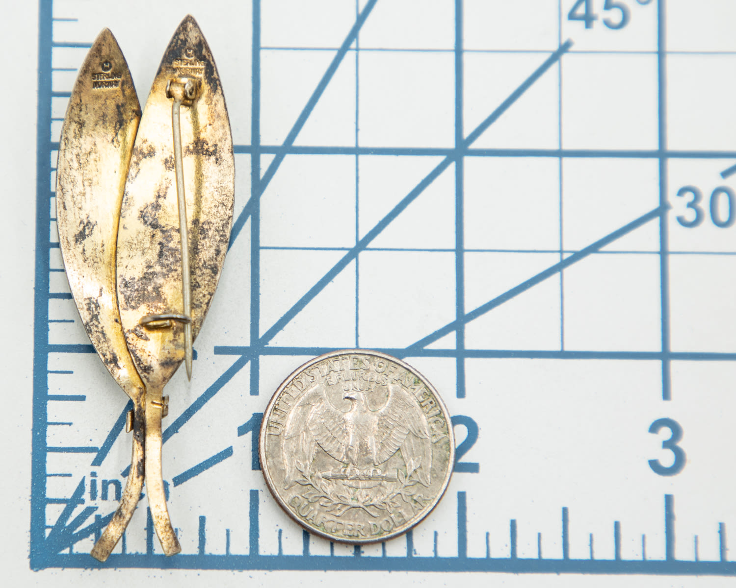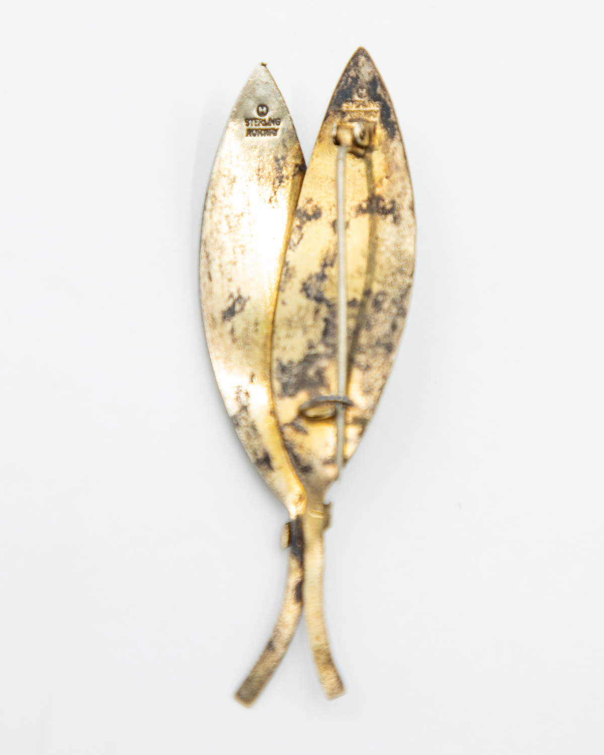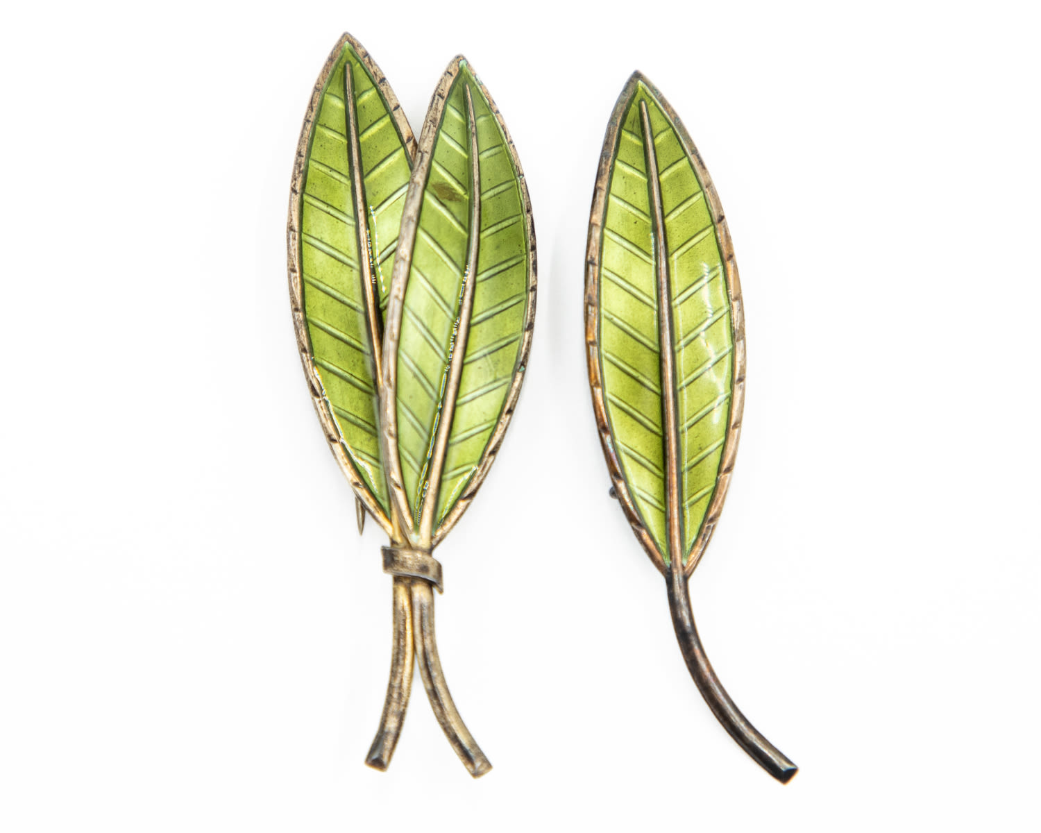 2 Ivar Holth Norway Sterling Enamel Green Leaf Brooches 12g